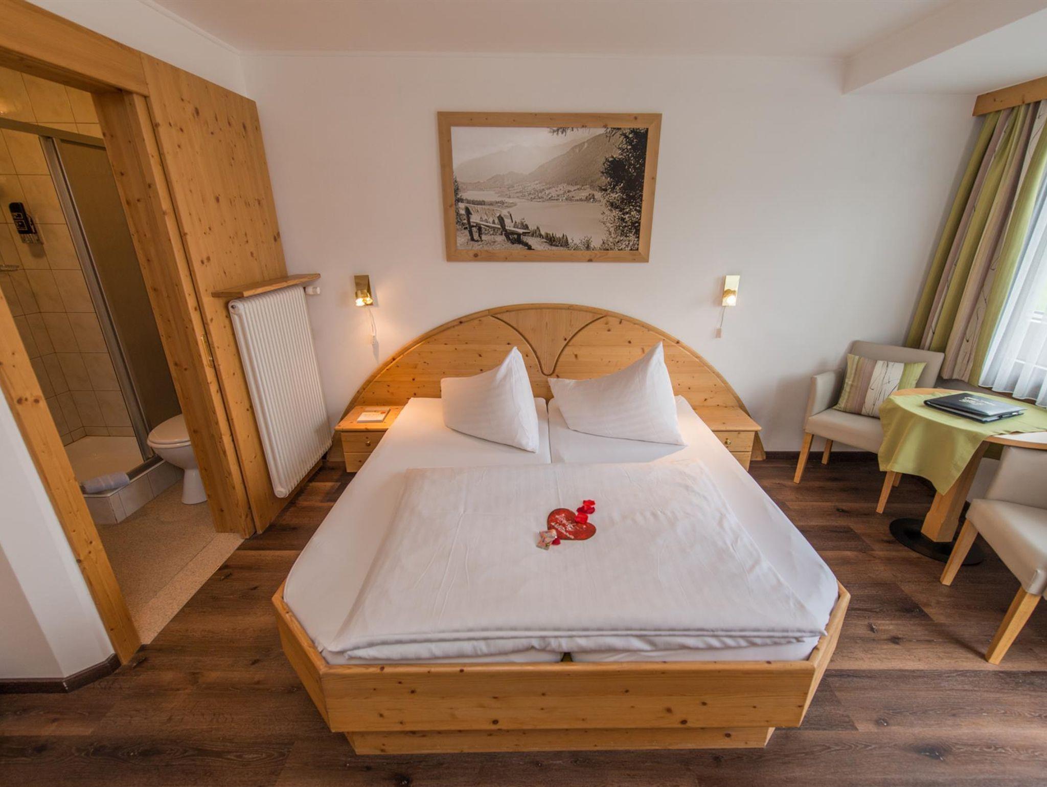 Schönes Doppelzimmer mit Frühstücksbuffet, Naturholzmöbel mit Liebe zum Detail, Balkon mit Seeblick, Dusche /WC, Föhn, Sat-TV, Radiowecker, Tresor.