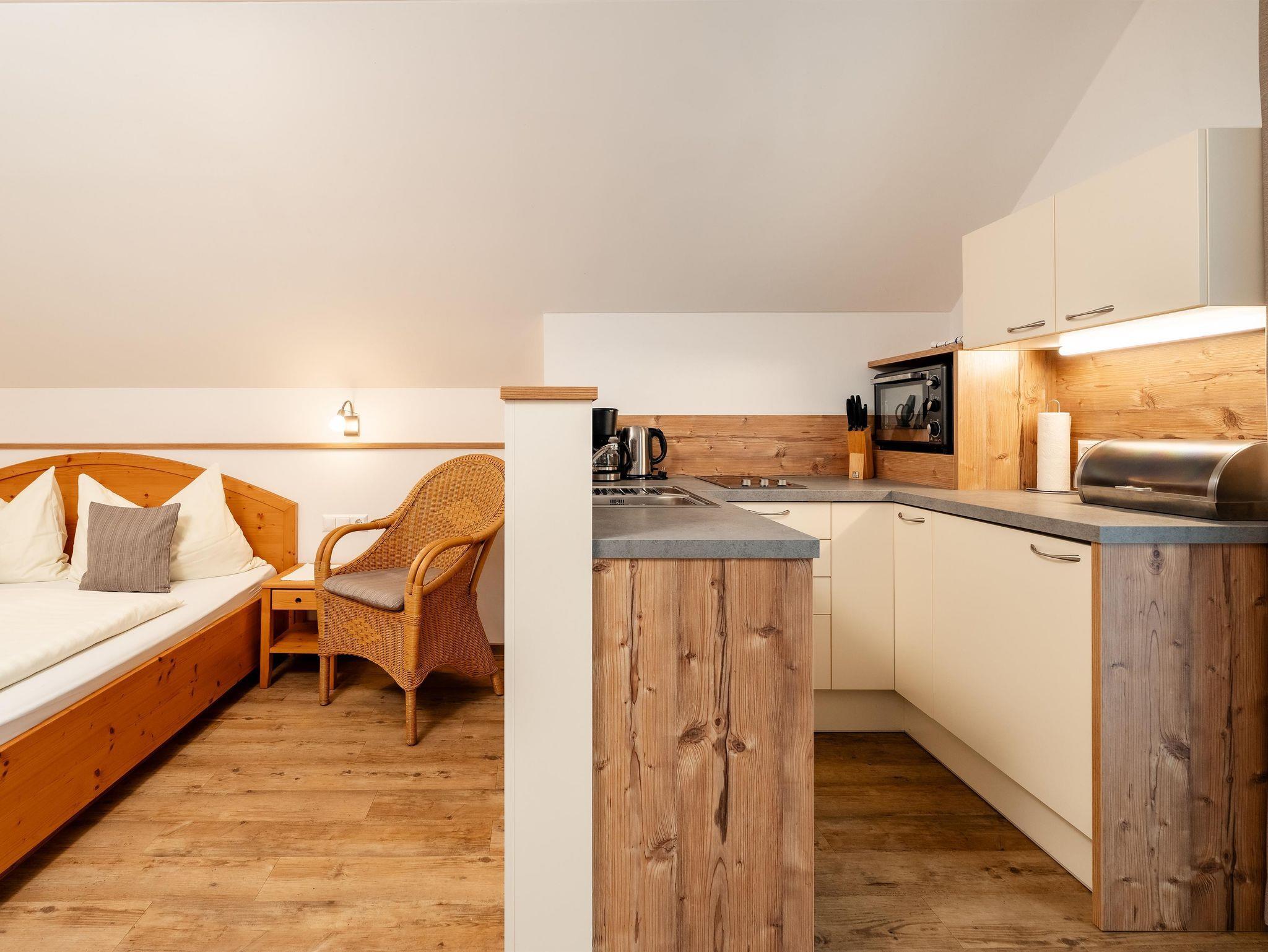 Die „Waldblick“ Ferienwohnung mit Balkon hat ca.28,4m² liegt im 2.Stock und ist für 2 Personen.