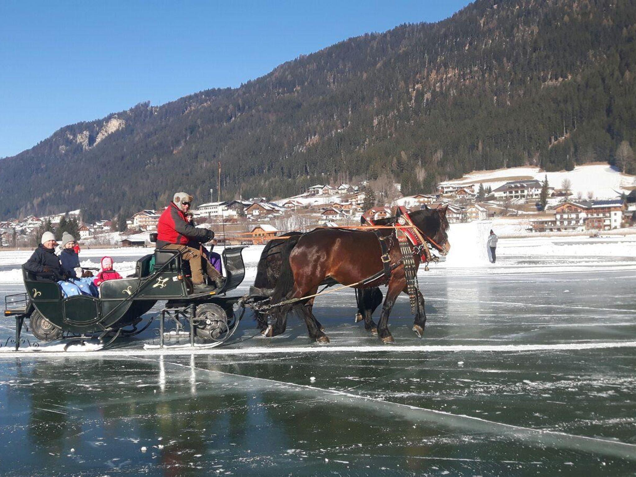 Wir bieten romantische Pferdeschlittenfahrten, wenn möglich am zugefrorenen Weissensee. Für Gäste in unserem Haus mit Ermäßigung!