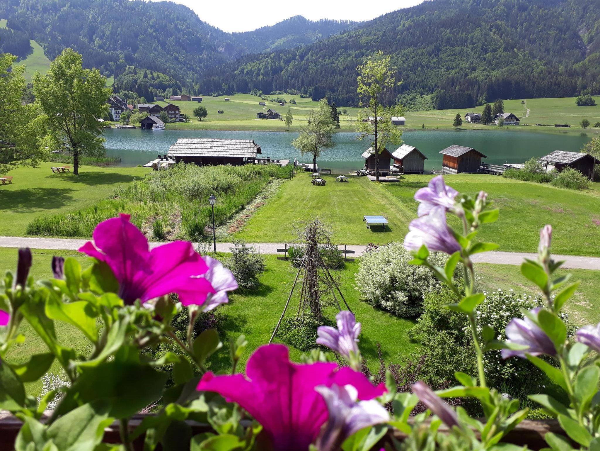 Auf unserer sonnigen Liegewiese mit flachem Kiesstrand, Steg und Strandhütte stehen Ihnen Liegestühle, Sonnenschirme, Ruderboote und Tischtennis kostenlos zur Verfügung.
