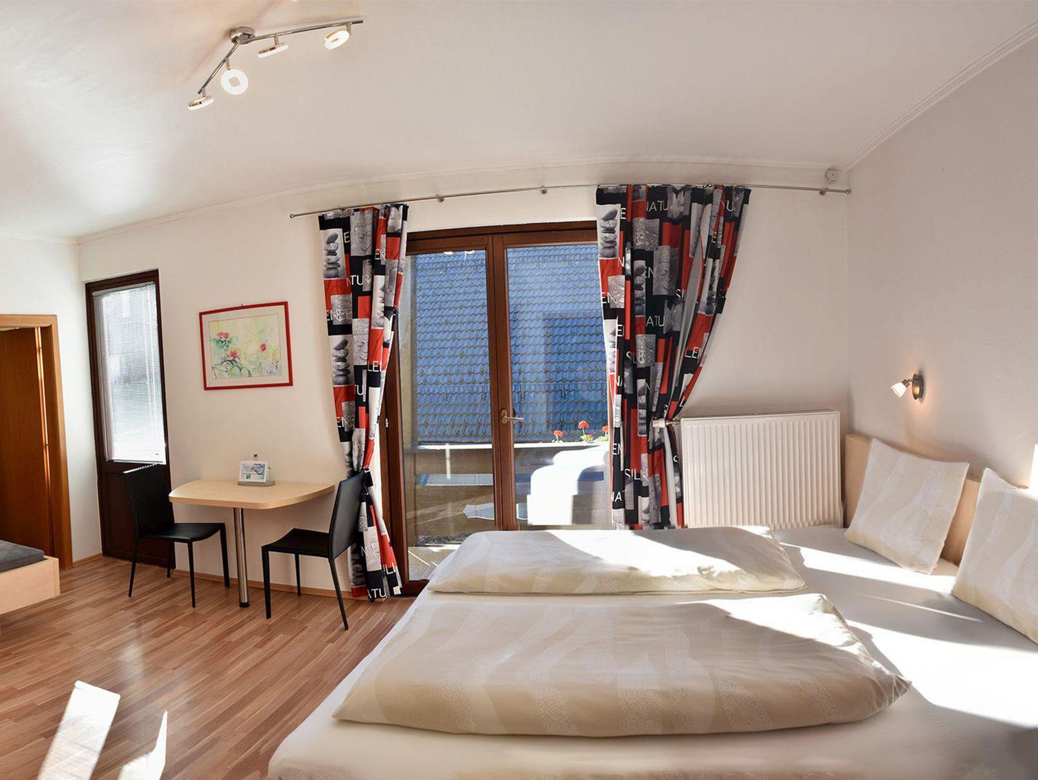 Doppelzimmer mit Bad/WC,Safe,Sat-TV,Fön,Balkon,W-Lan und seitlicher Seeblick.