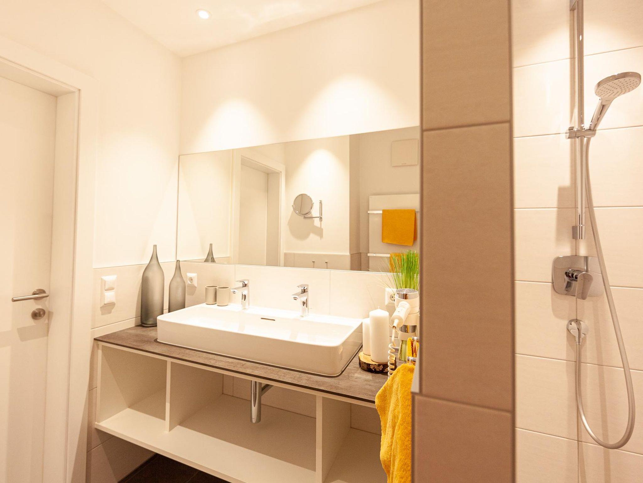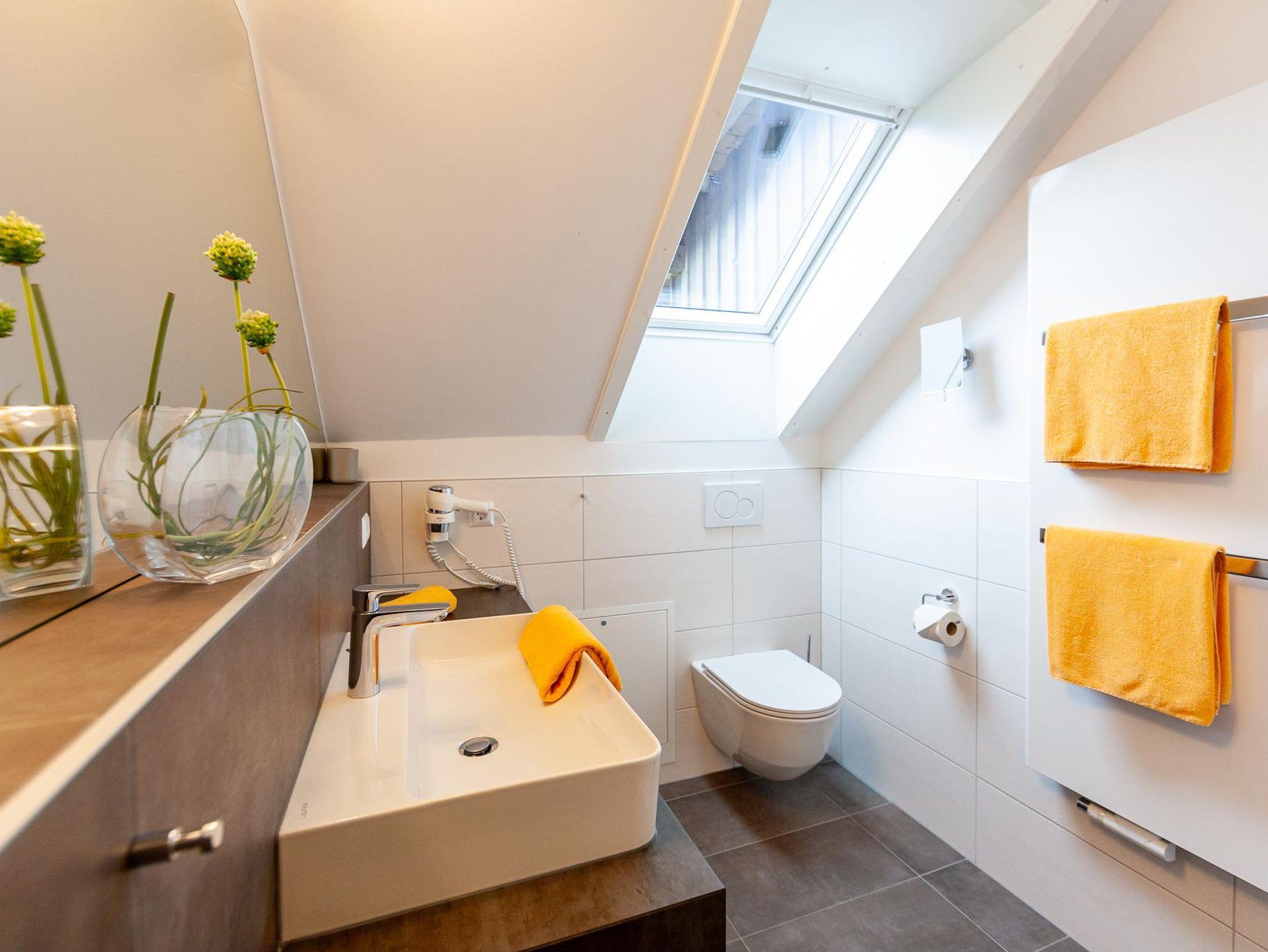 Bad und WC sind getrennt voneinander vom Vorraum aus begehbar.