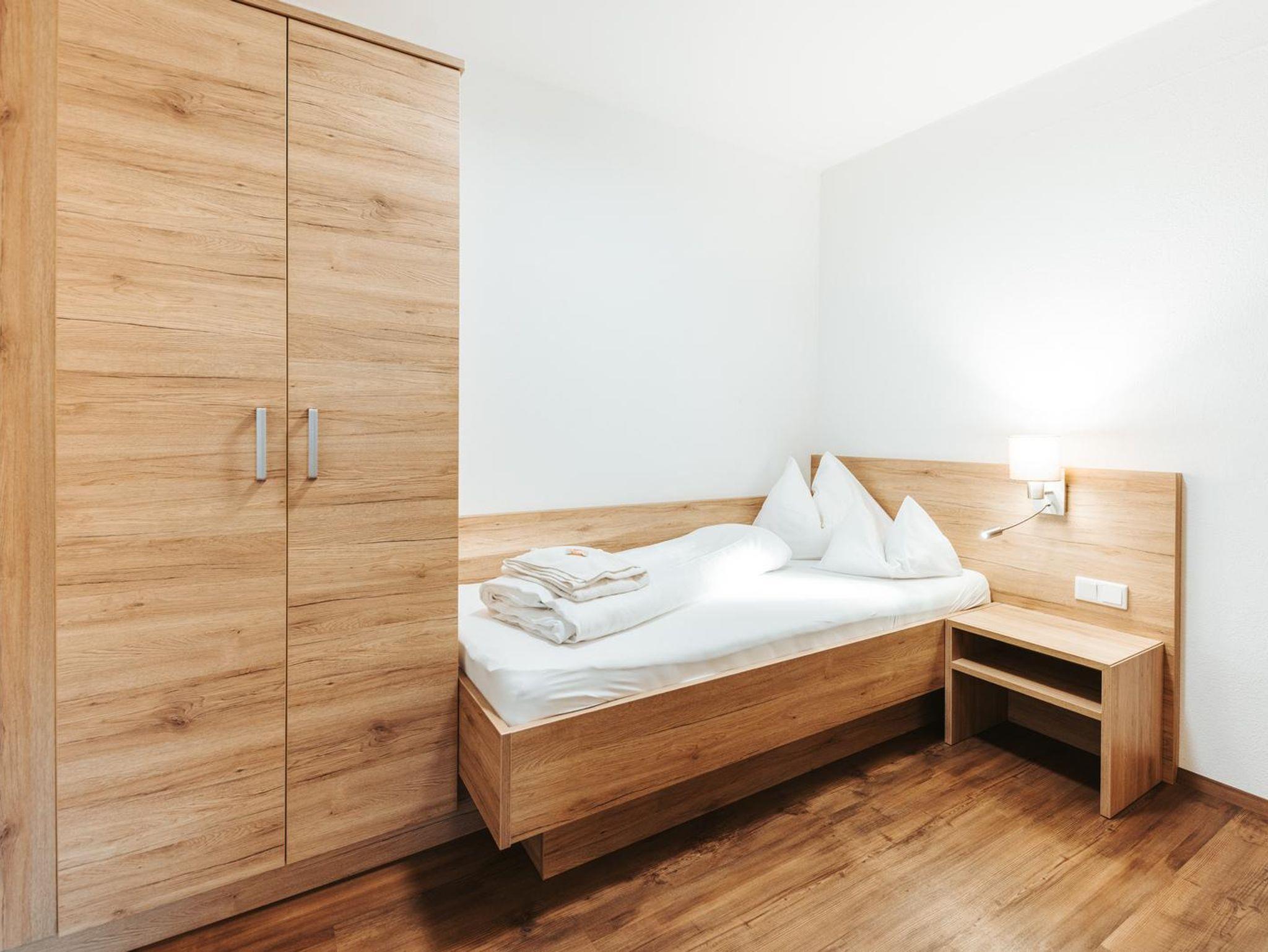 • 1 gemütliche Schlafzimmer mit Doppelbett und Einzelbett (optisch getrennt)