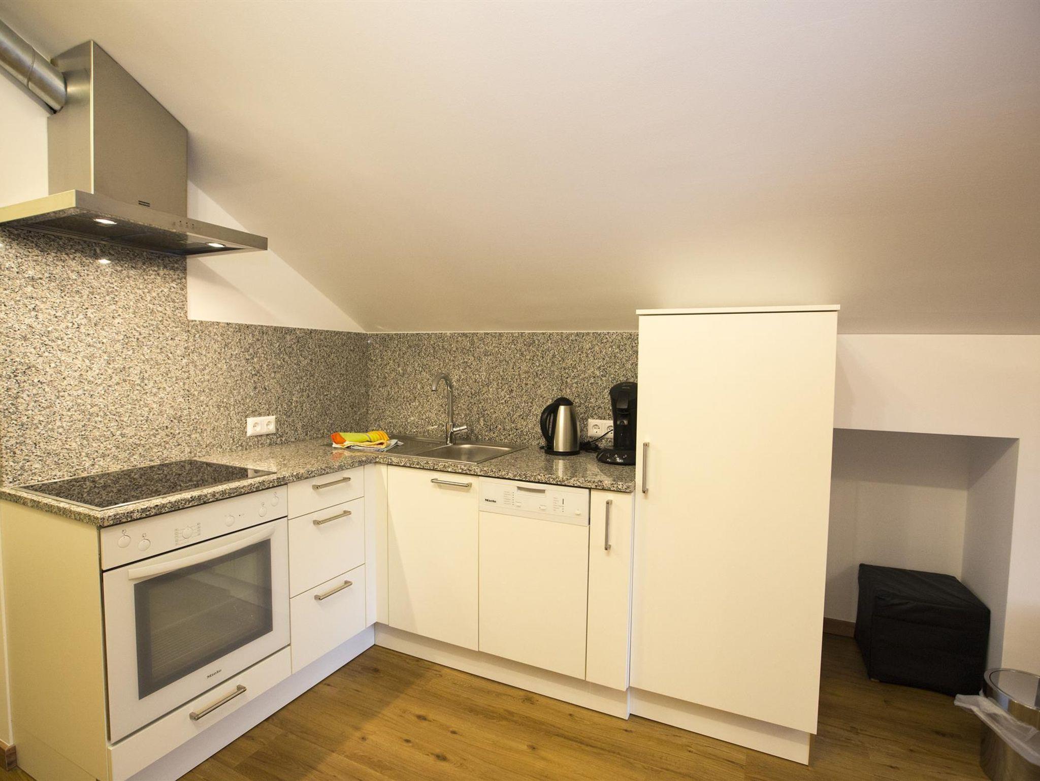 • Küche voll ausgestattet (2-Platten-Herd, Kühlschrank, Kaffeemaschine, Wasserkocher, Geschirrspüler, Töpfe, Geschirr)