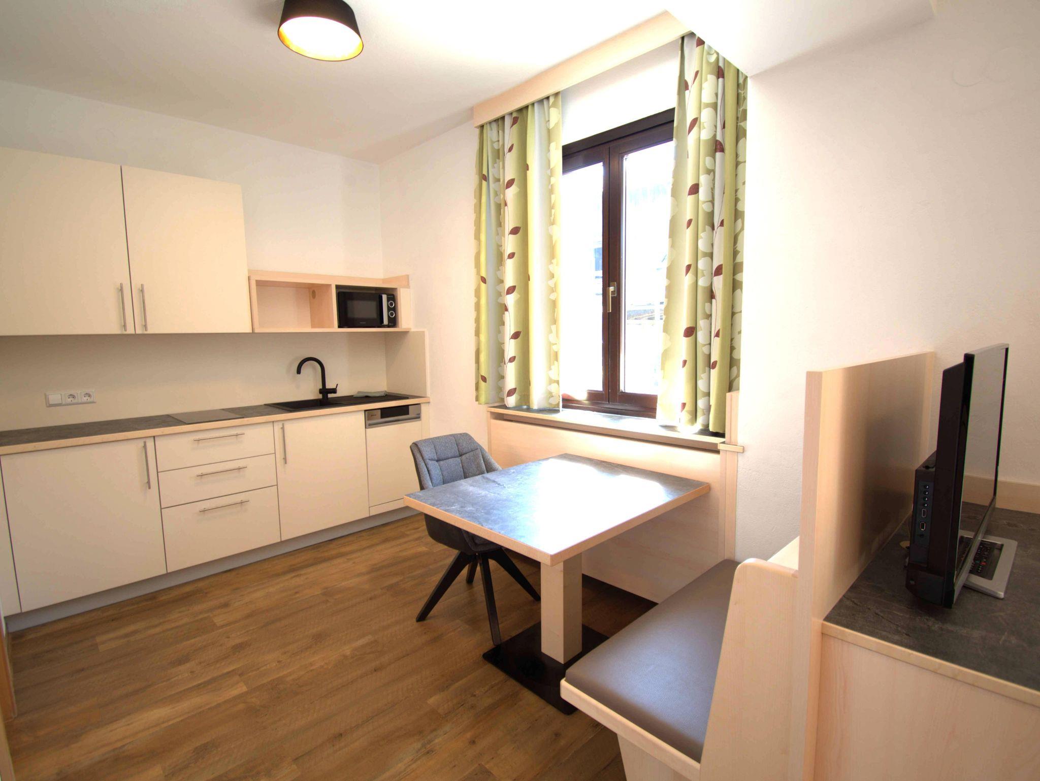 Ferienwohungen mit ca. 48 m² Wohnfläche für 1 bis 4 Personen. Jeweils 1 Schlafzimmer, Wohn-/Schlafraum mit Ausziehbetten, Kochnische, Essecke, Kochgeschirr, Mikrowelle, Wasserkocher, Balkon mit Seeblick, Bad oder Dusche/WC, Radio, Sat-TV, Safe und Fön.