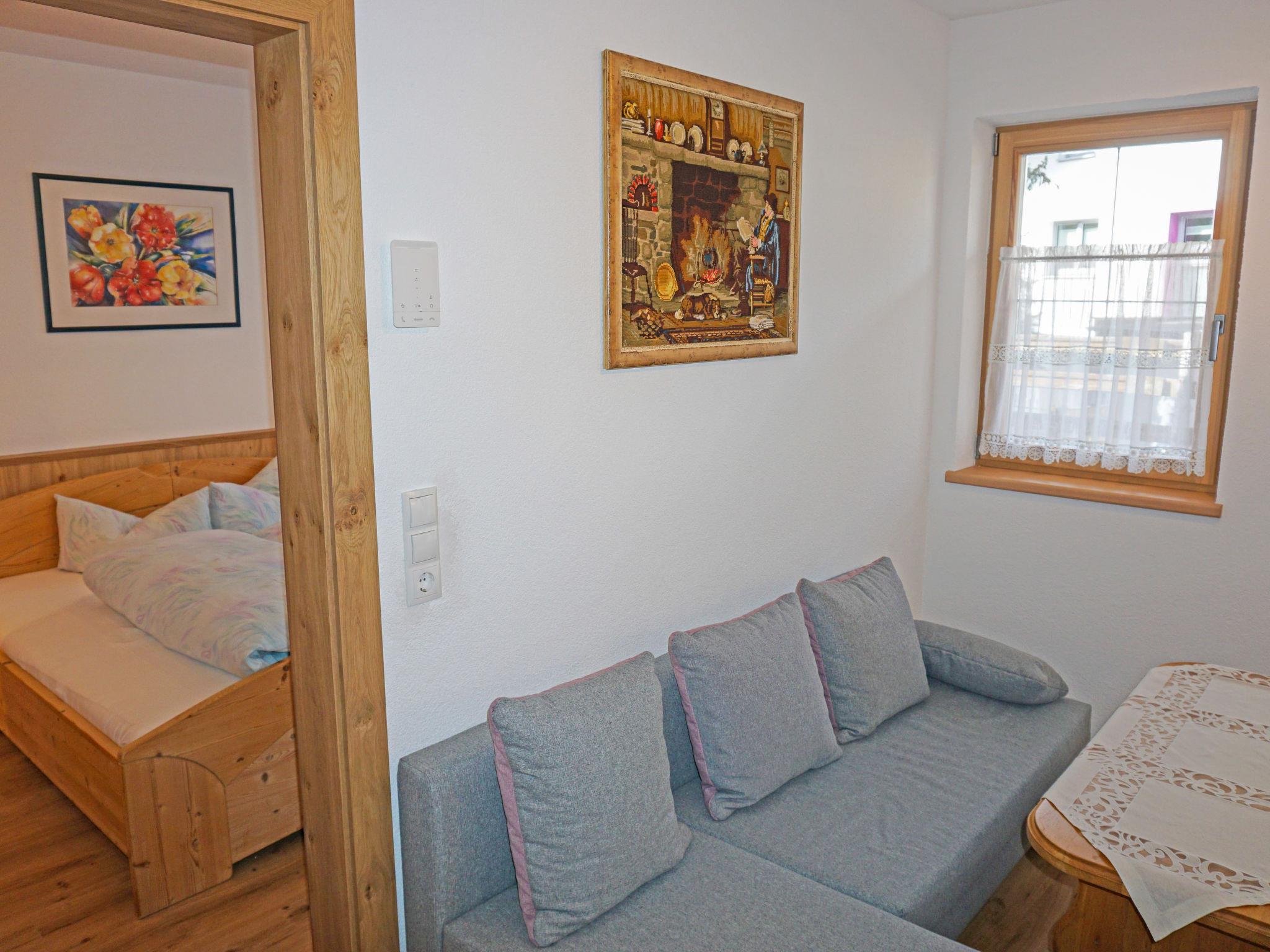 "Tschirgant", 3-room apartment 55 m2, lower ground floor. Beautiful and modern furnishings: 1 double bedroom. 1 double bedroom with satellite TV (flat screen). Kitchen-/living room (2 ceramic glass hob hotplates, toaster, kettle, microwave, electric coffee machine) with 1 sofabed (90 cm, length 170 cm), dining nook, satellite TV and flat screen. Exit to the terrace, north facing position. Shower/WC. Heating. Parquet floors. Large terrace. Terrace furniture. Very beautiful view of the mountains. Facilities: Internet (WiFi). Parking (2 cars). Please note: apartment courtyard side. Non-smokers only. No dishwasher available!