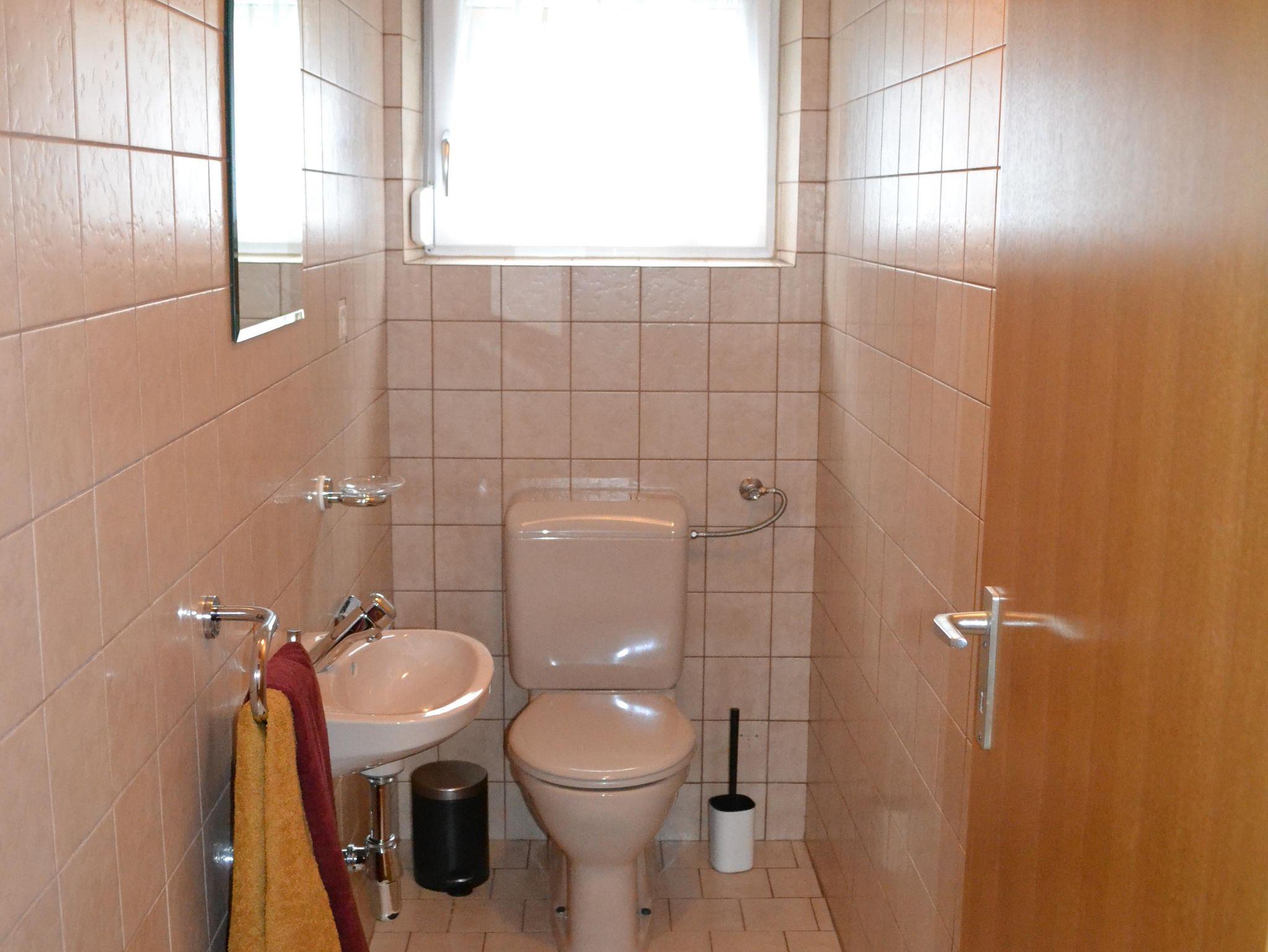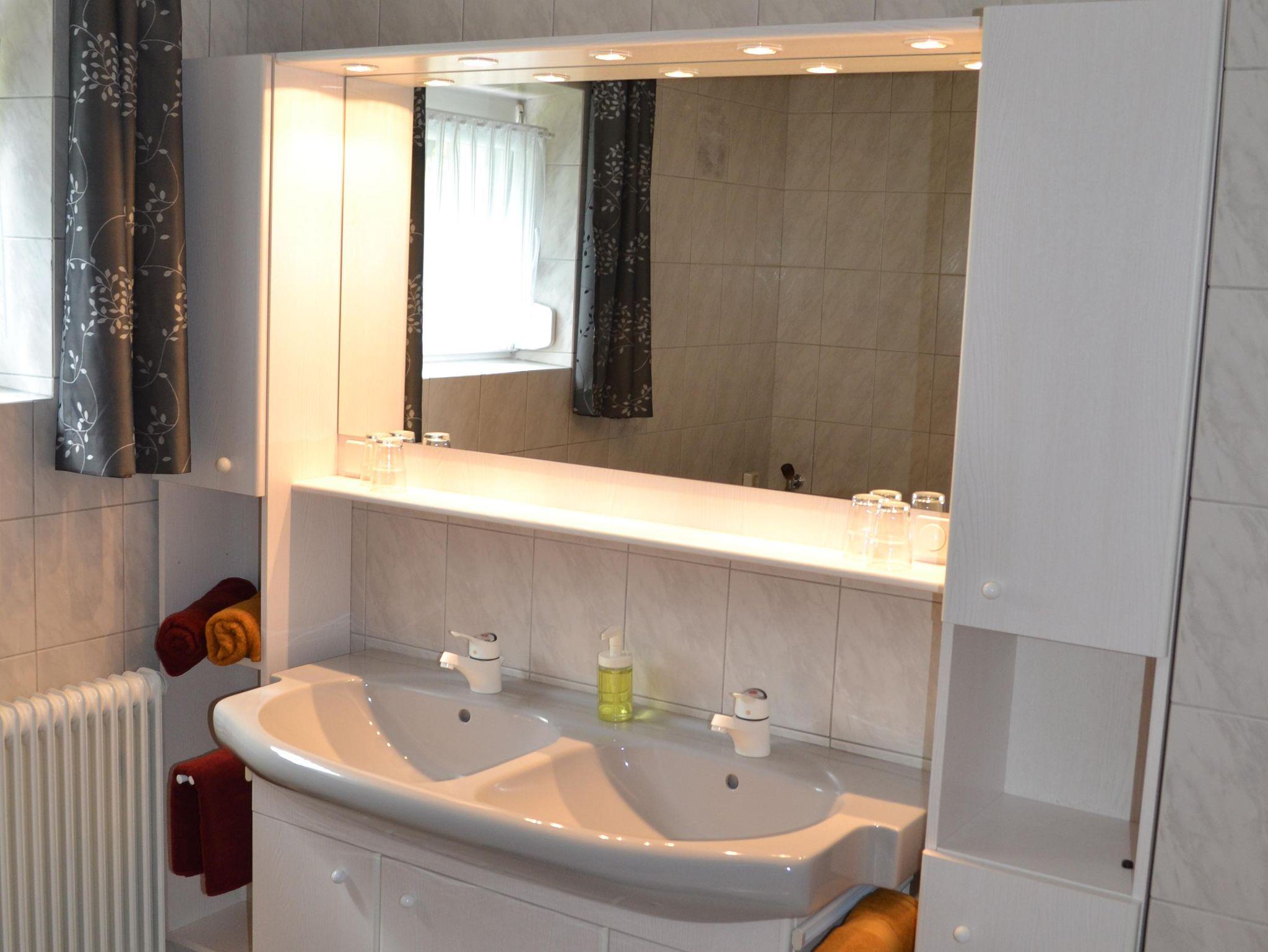 Ein Bad/WC und ein Bad mit separatem WC. Die Küche ist ausgestattet mit Elektroherd, Backofen, Kühlschrank, Geschirrspüler, Kaffeemaschine und Teekocher.