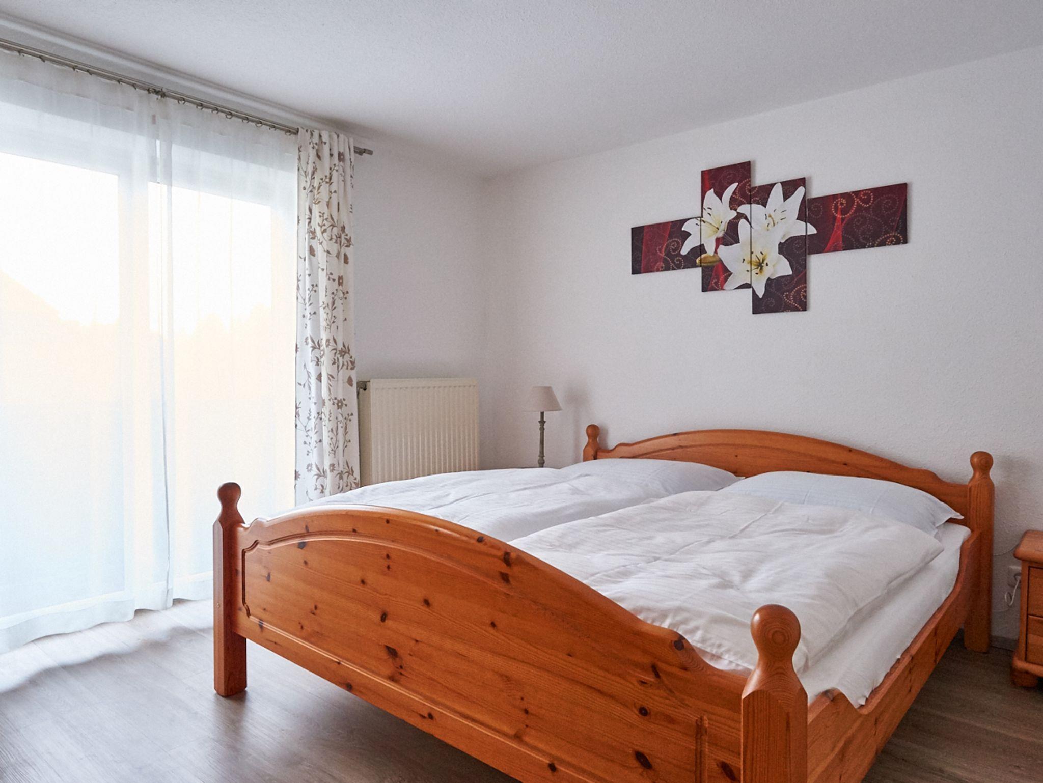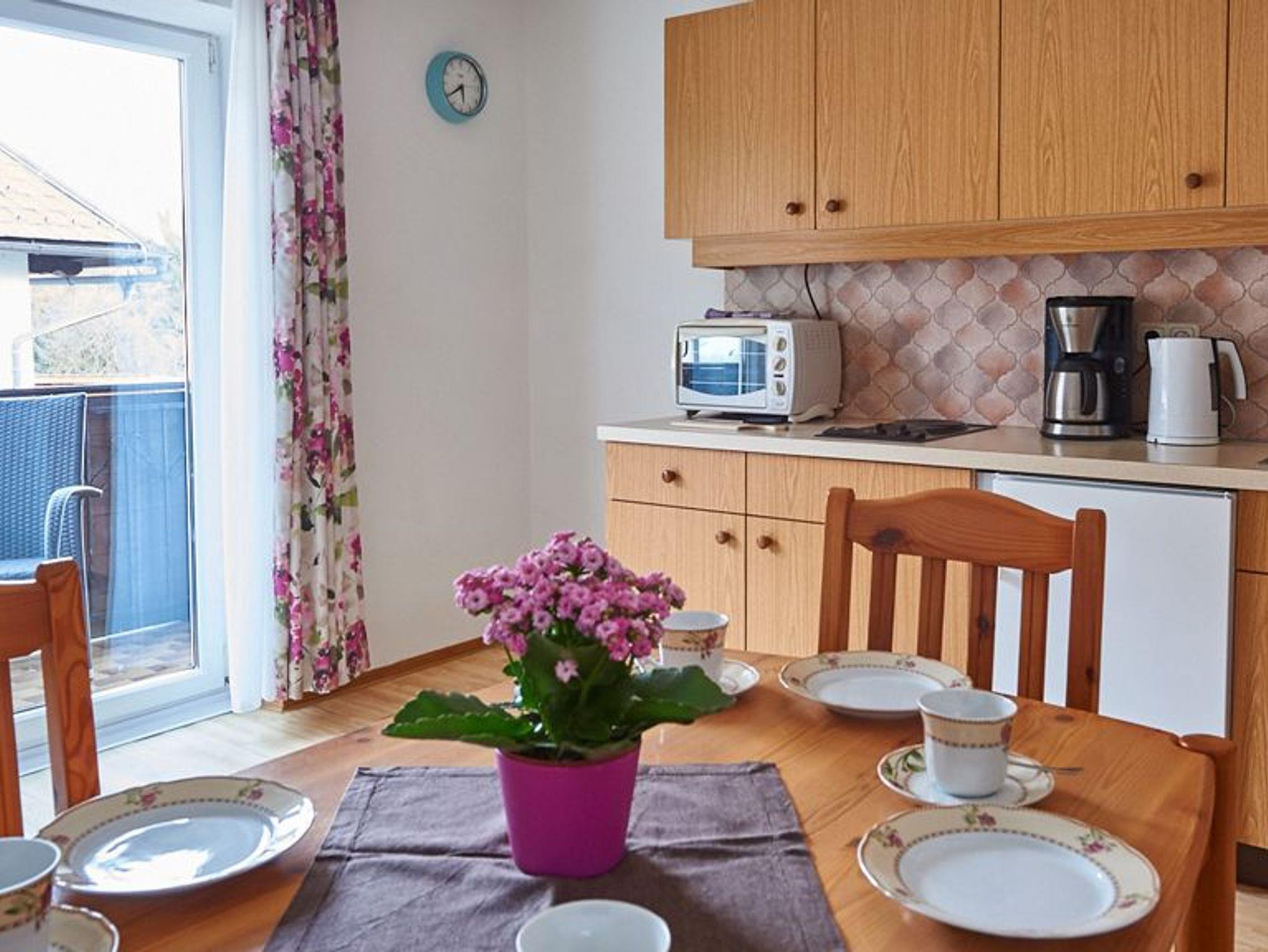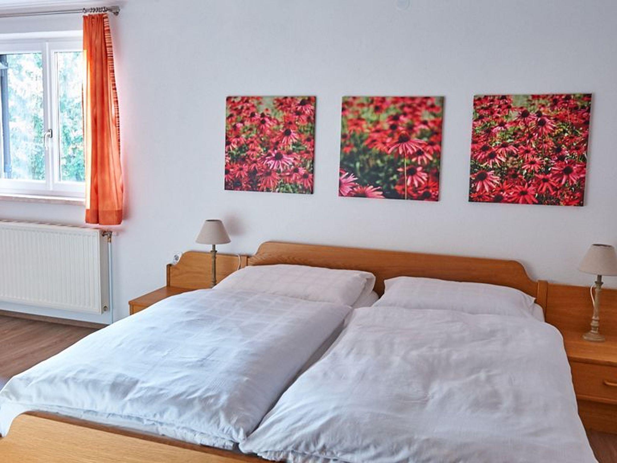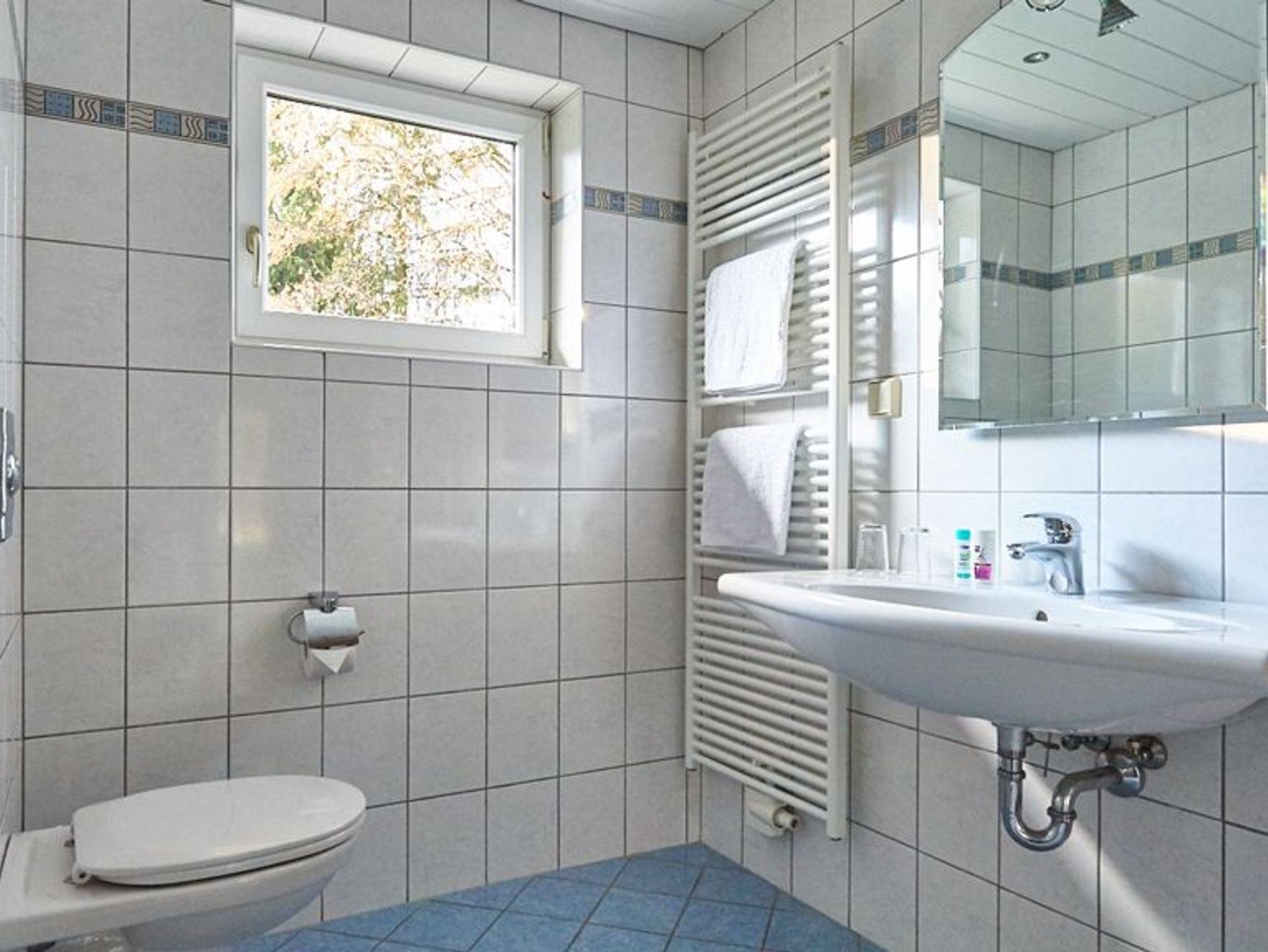 Modern eingerichtete Ferienwohnung liegt nord-östlich im 1. Stock vom Gästehaus. Zwei getrennte Schlafzimmer jeweils mit Doppelbett. Ein Zustellbett kann zusätzlich aufgestellt werden. Modernes Bad mit Dusche und WC. Die Wohnküche ist komplett ausgestattet mit Zugang zum Balkon. Genießen Sie Ihr Frühstück am Balkon in der Morgensonne.