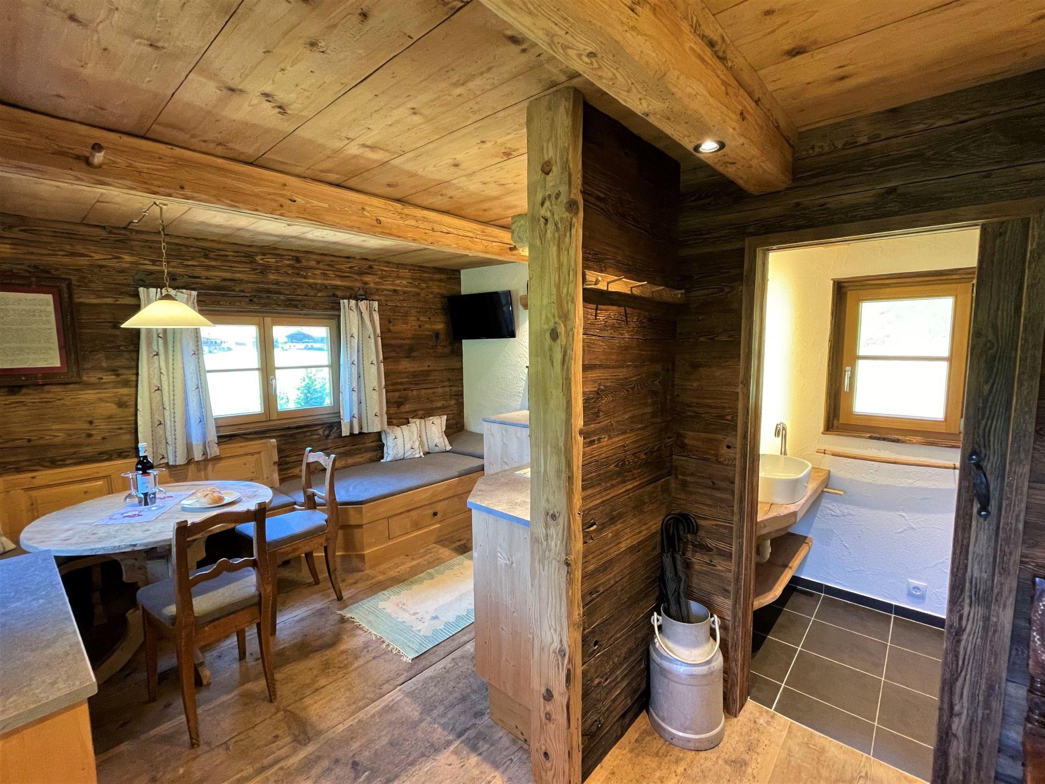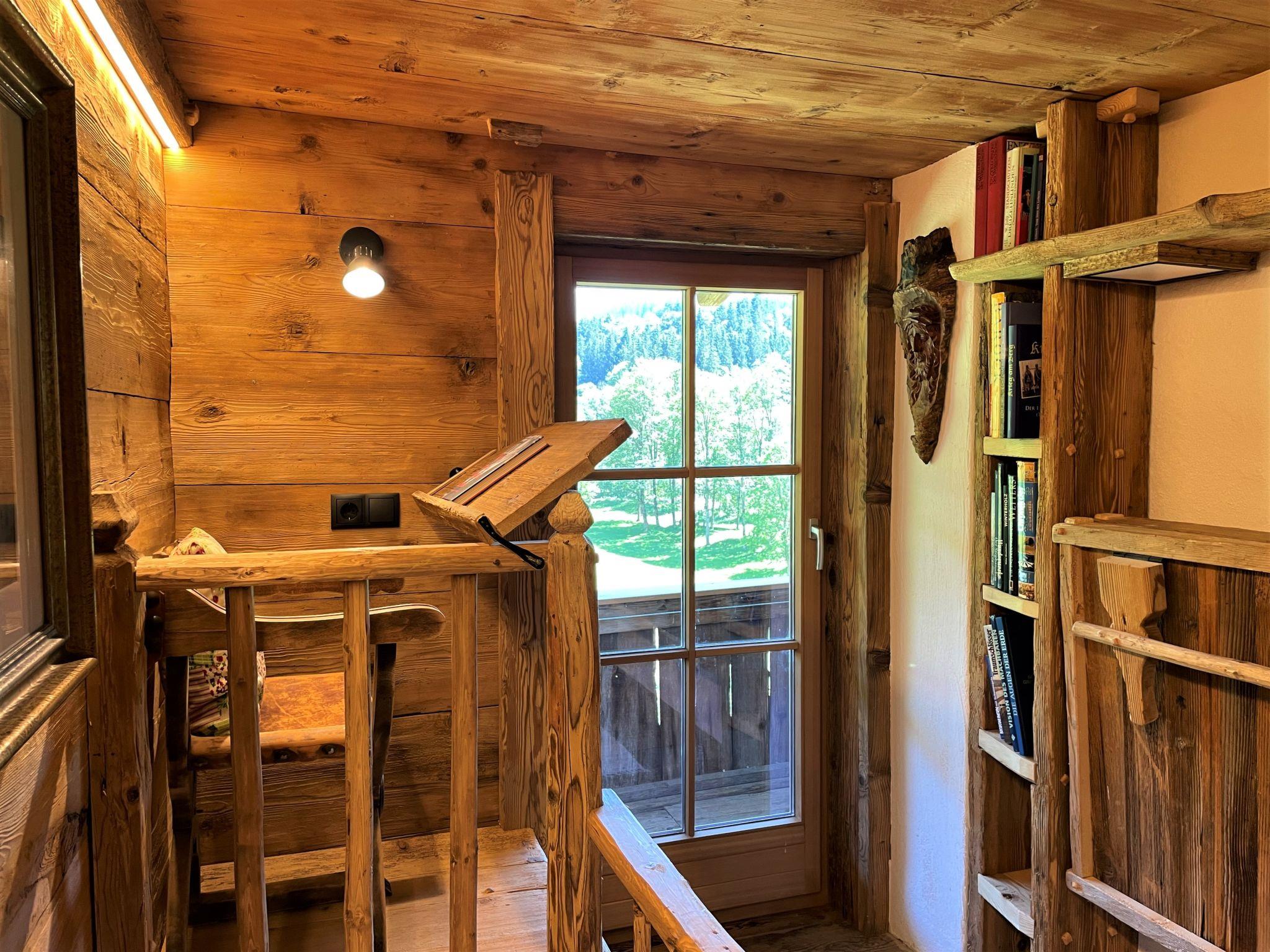 "Troadkasten", 2-room house 45 m2 on 2 levels. Bright, fully renovated in 2022, very tasteful and cosy furnishings: entrance hall. Kitchen-/living room (oven, dishwasher, 4 ceramic glass hob hotplates, kettle, electric coffee machine) with dining nook and satellite TV (flat screen). Exit to the loggia. Bath/shower. Heating. Upper floor: 1 double bedroom with 1 double bed. Gallery with library. Exit to the balcony. Sep. WC. Heating. Wooden floors. Balcony. Covered balcony, sitting area. Very beautiful view of the mountains, the valley and the countryside. Facilities: Internet (WiFi, free). Please note: non-smoking house. Smoke alarm, fire extinguisher.