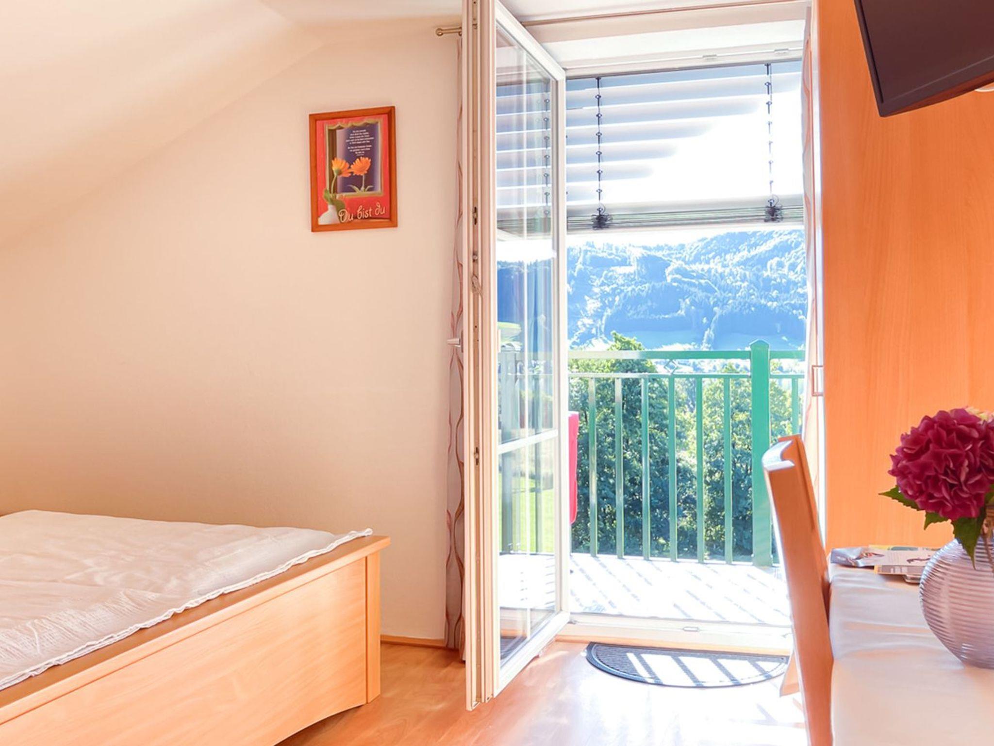 Die Doppelzimmer sind mit TV, Balkon und Dusche/WC ausgestattet. Sie genießen einen fantastischen Blick zum Irrsee.