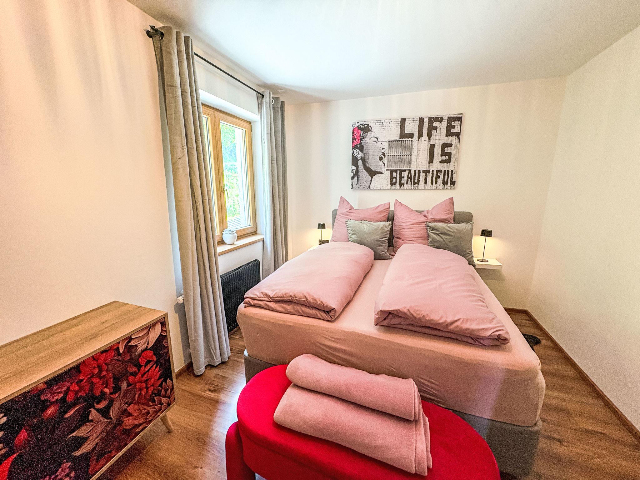 "Anny 1", 2-room apartment 40 m2 on 1st floor. Comfortable and modern furnishings: living/sleeping room with 1 sofabed, dining table and satellite TV (flat screen). 1 double bedroom. Open kitchen (2 ceramic glass hob hotplates, kettle, electric coffee machine). Shower/WC. Electric heating. Balcony terrace. Terrace furniture. Side view of the lake. Facilities: Internet (WiFi, free). Please note: 1 pet/ dog allowed. Smoke alarm. 50628-001695-2025