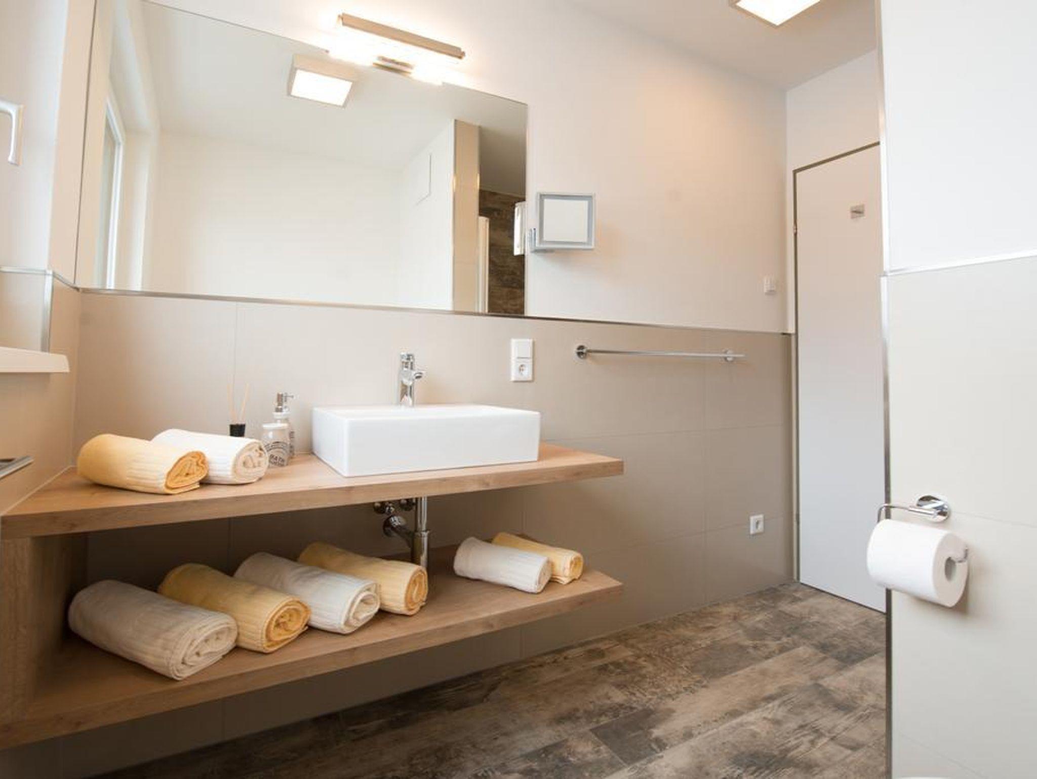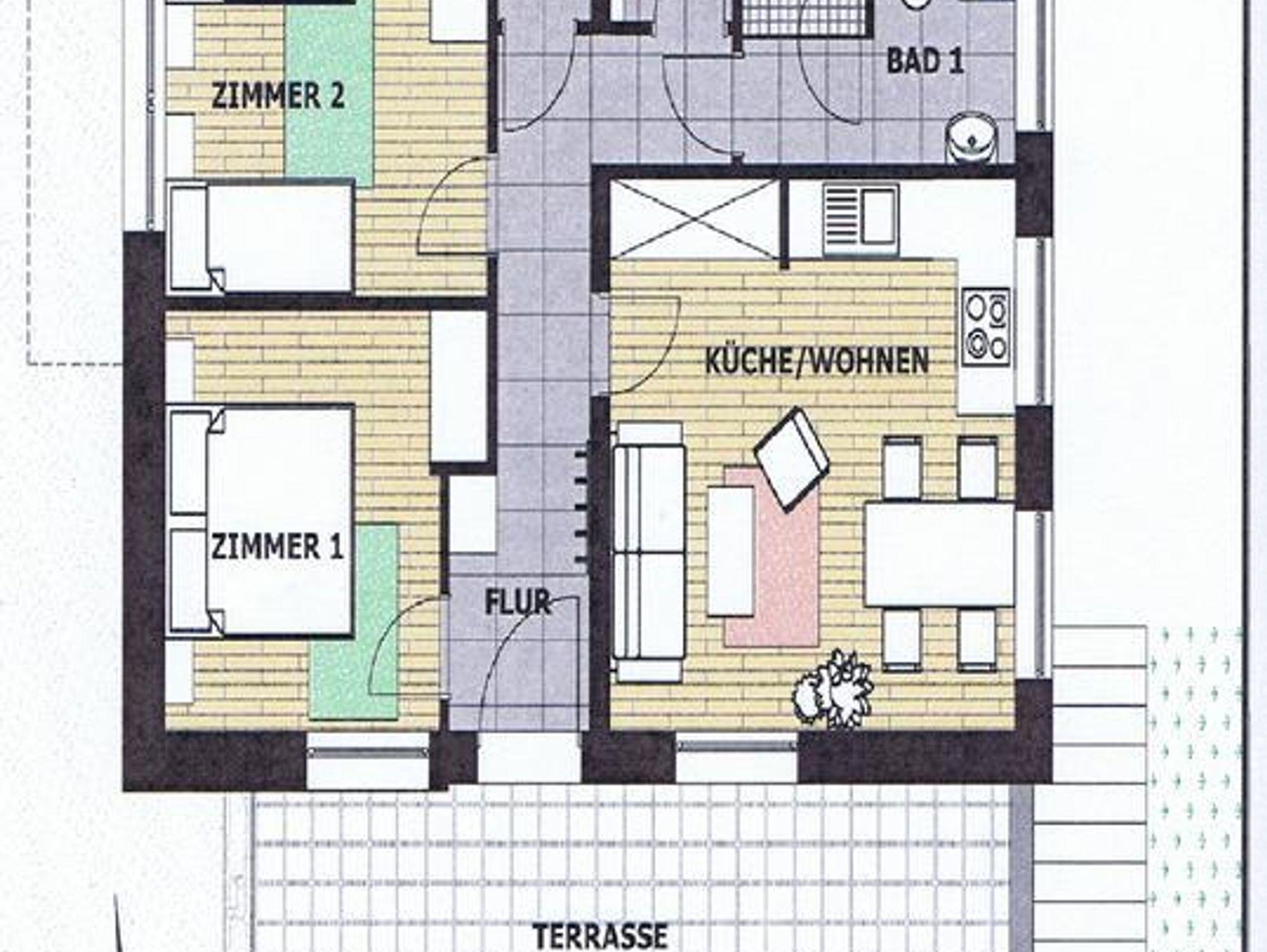 Liebevolles Ambiente und familienfreundliche Ausstattung des Appartements sind neben der Lage ein Garant für einen schönen Urlaub. Das modern-rustikal eingerichtete Appartement besteht aus 2 Schlafzimmer (je Doppelbetten oder 2 Einzelbetten), 2 Bäder mit Dusche und WC, großer Wohn- und Kochbereich mit einer ausziehbaren Schlafcouch, die mit einem Handgriff in ein vollwertiges Doppelbett für 2 Personen umfunktioniert werden kann, Abstellraum mit Waschmaschine und Wäschetrockner (kostenlose Benützung) und Flur. Die Küche ist voll ausgestattet. Ein Flachbild-TV sorgt für Unterhaltung.