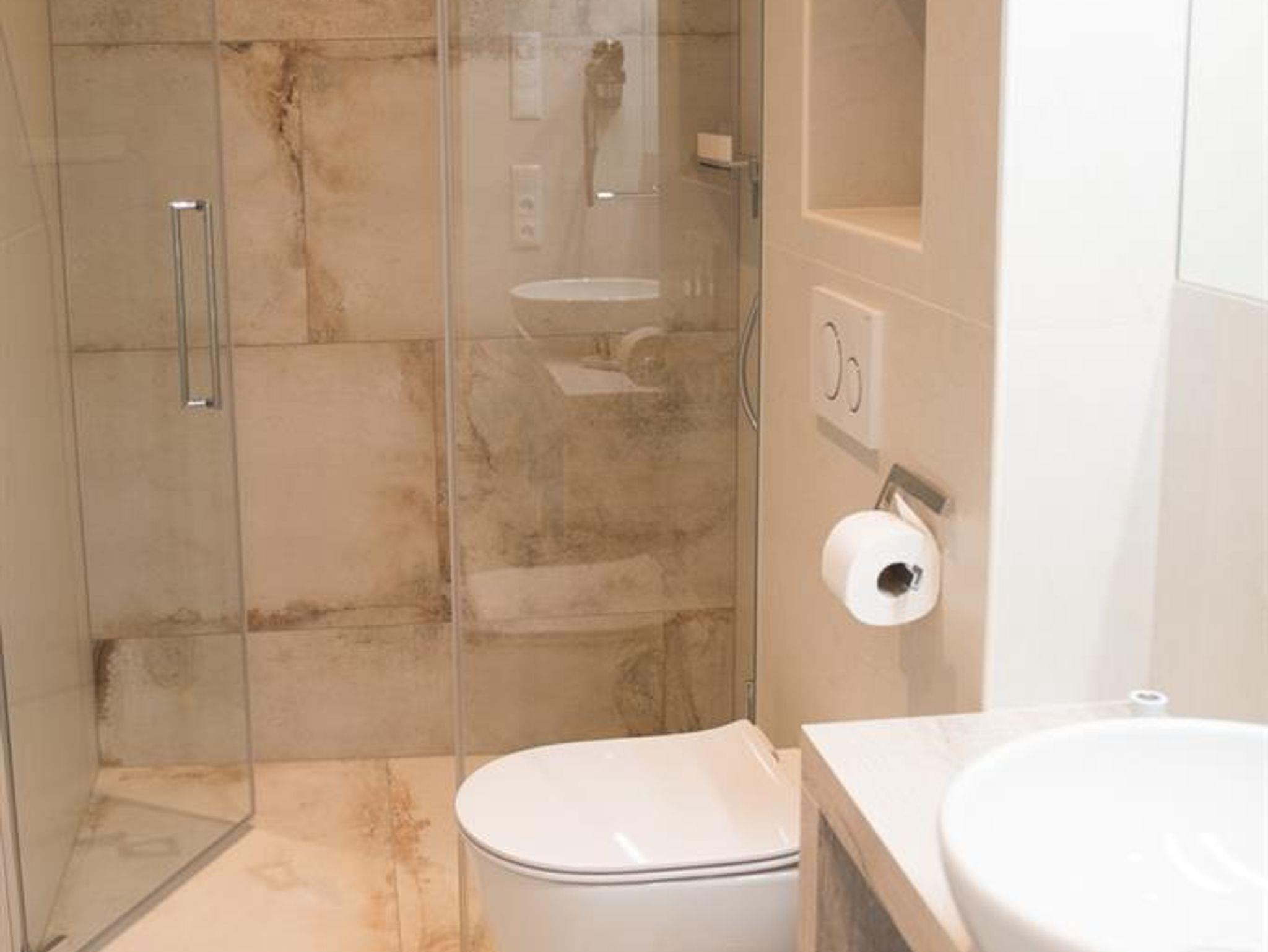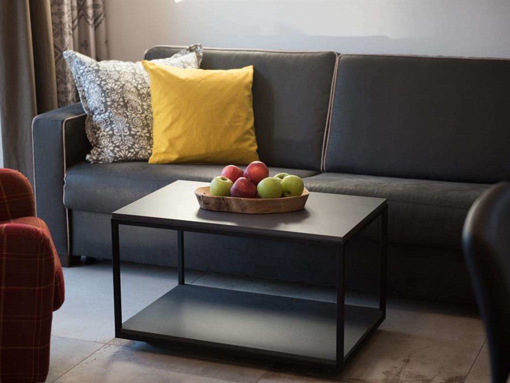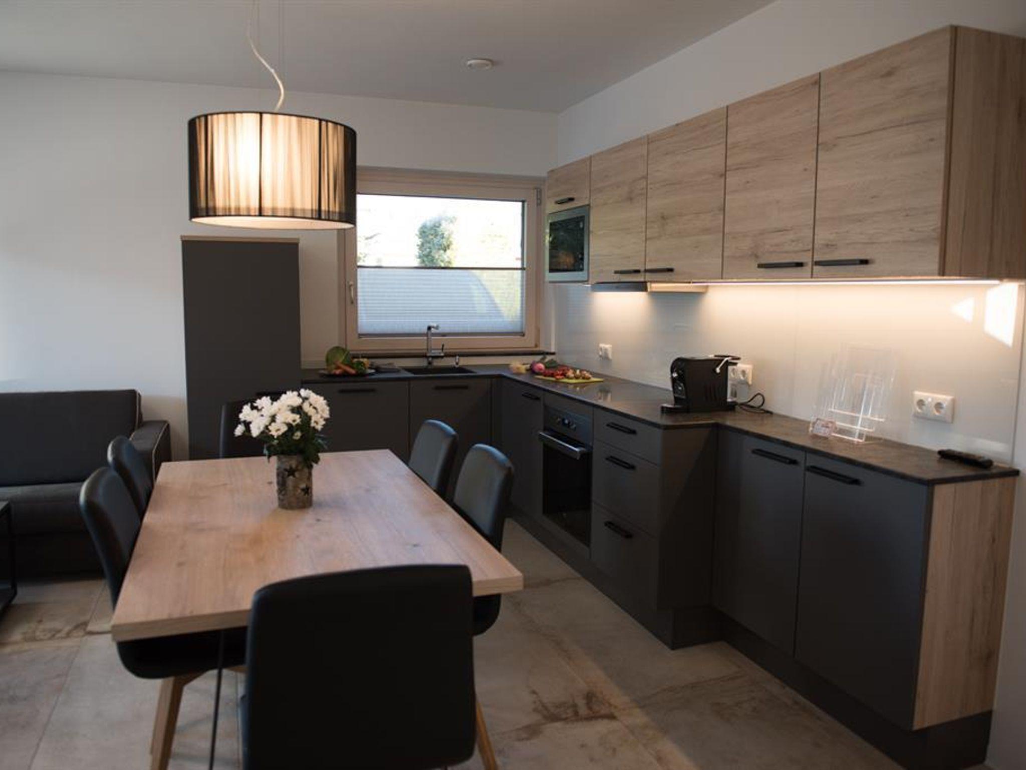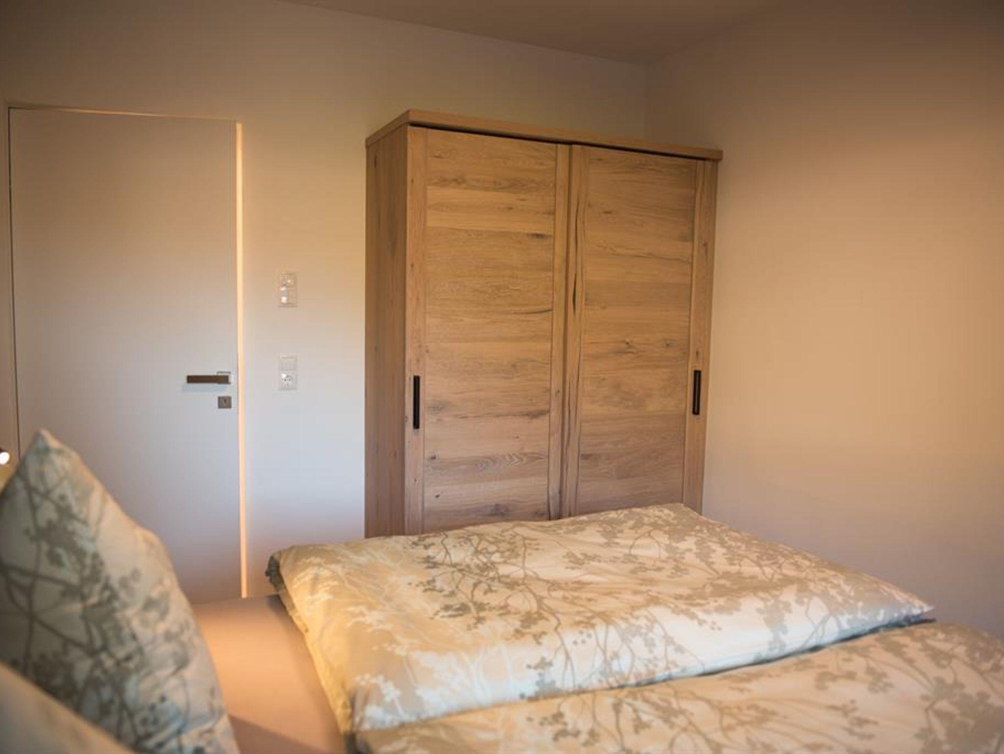 Das modern-rustikal eingerichtete Appartement besteht aus 2 Schlafzimmer (1 x Doppelbett / 1 x Dreibettzimmer mit hochwertigem Stockbett), 2 Bäder mit Dusche und WC, großer Wohn- und Kochbereich mit einer ausziehbaren Schlafcouch, die mit einem Handgriff in ein vollwertiges Doppelbett für 2 Personen umfunktioniert werden kann, Abstellraum und Flur.
