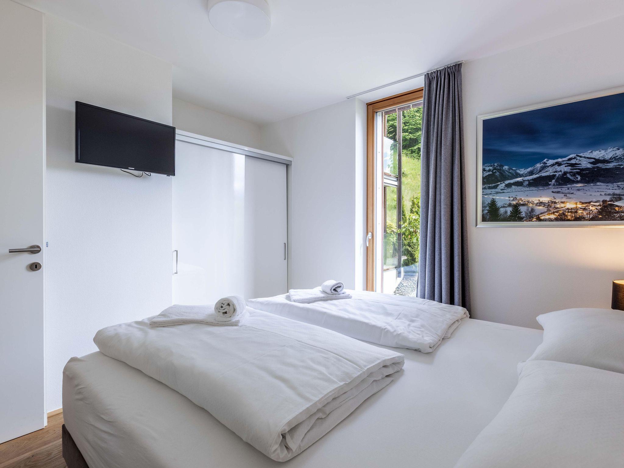 Willkommen im Bellevue Residences Top 2.3 Appartement mit herrlichem Seeblick! Auf 65m² bietet es Platz für bis zu 6 Personen. Es erwarten dich zwei Schlafzimmer mit Doppelbett, ein Wohnzimmer mit Doppelschlafcouch und offener Designerküche, sowie ein Badezimmer mit Badewanne/Dusche und WC. Zusätzlich gibt es ein weiteres separates WC. Vom Wohnzimmer aus gelangst du auf den Balkon, von dem aus du einen atemberaubenden Blick auf den Zeller See genießen kannst.
