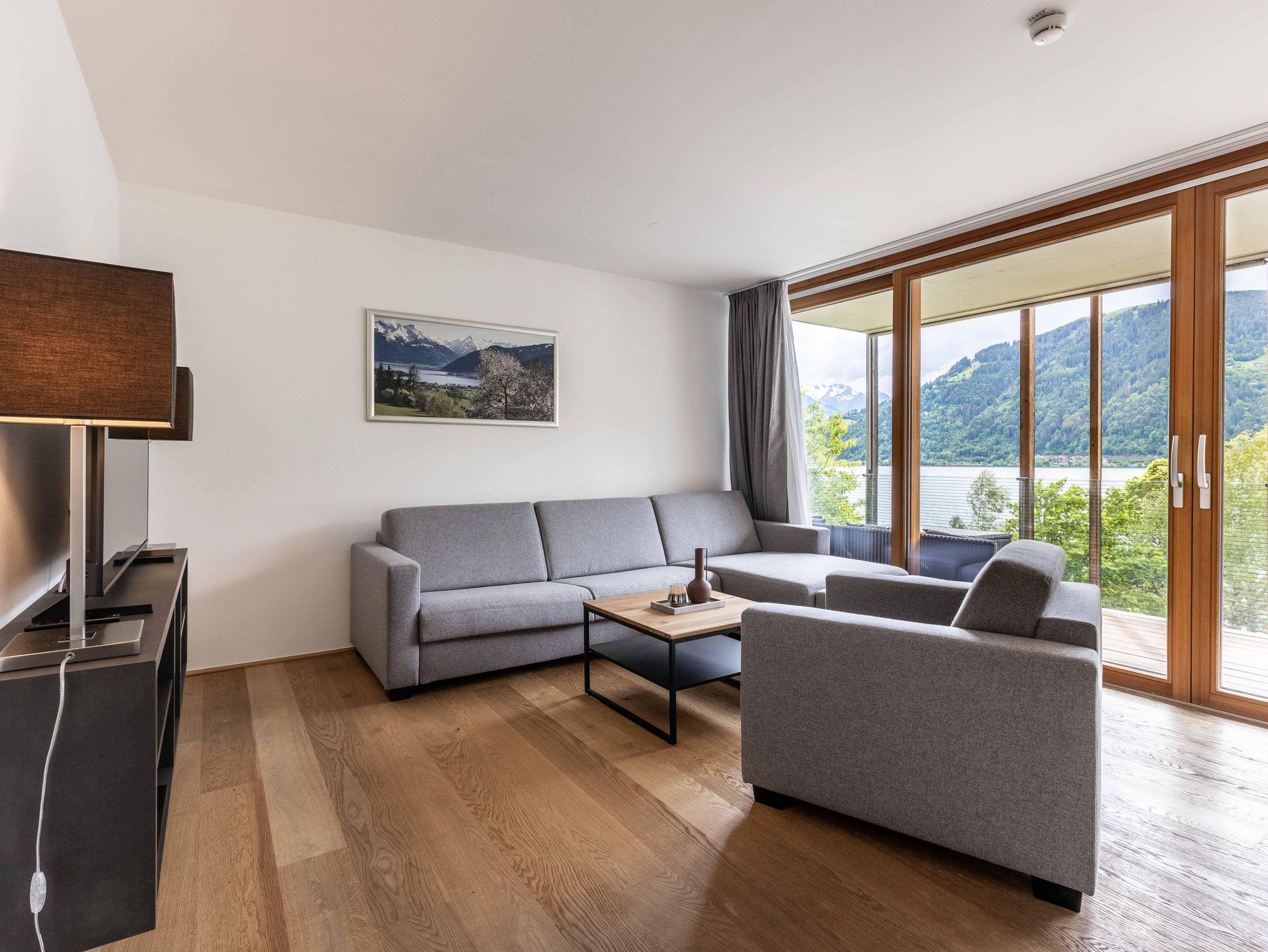 Willkommen im Bellevue Residences Top 3.3 Appartement mit herrlichem Seeblick! Auf 65m² bietet es Platz für bis zu 6 Personen. Es erwarten dich zwei Schlafzimmer mit Doppelbett, ein Wohnzimmer mit Doppelschlafcouch und offener Designerküche, sowie ein Badezimmer mit Badewanne/Dusche und WC. Zusätzlich gibt es ein weiteres separates WC. Vom Wohnzimmer aus gelangst du auf den Balkon, von dem aus du einen atemberaubenden Blick auf den Zeller See genießen kannst.