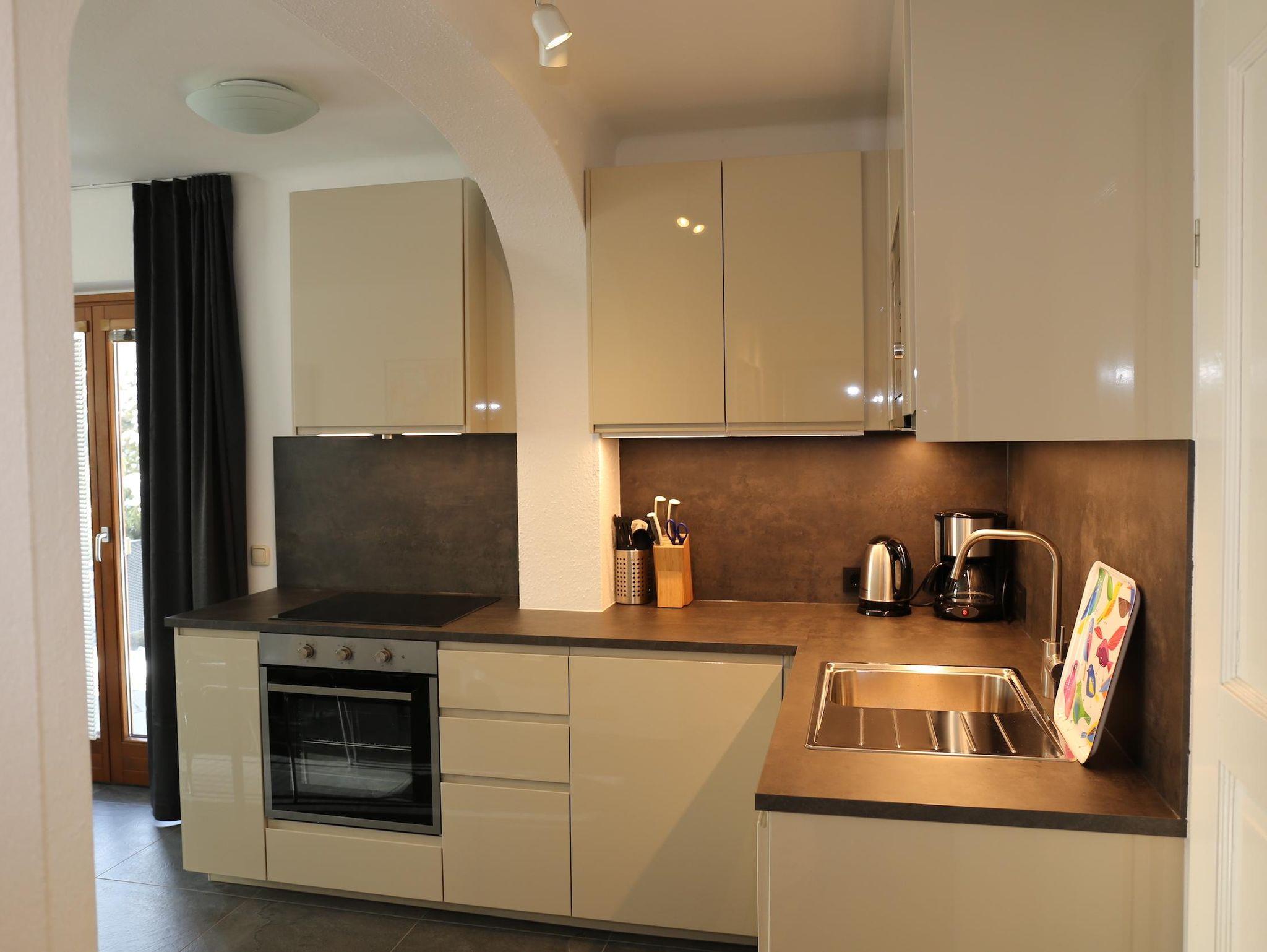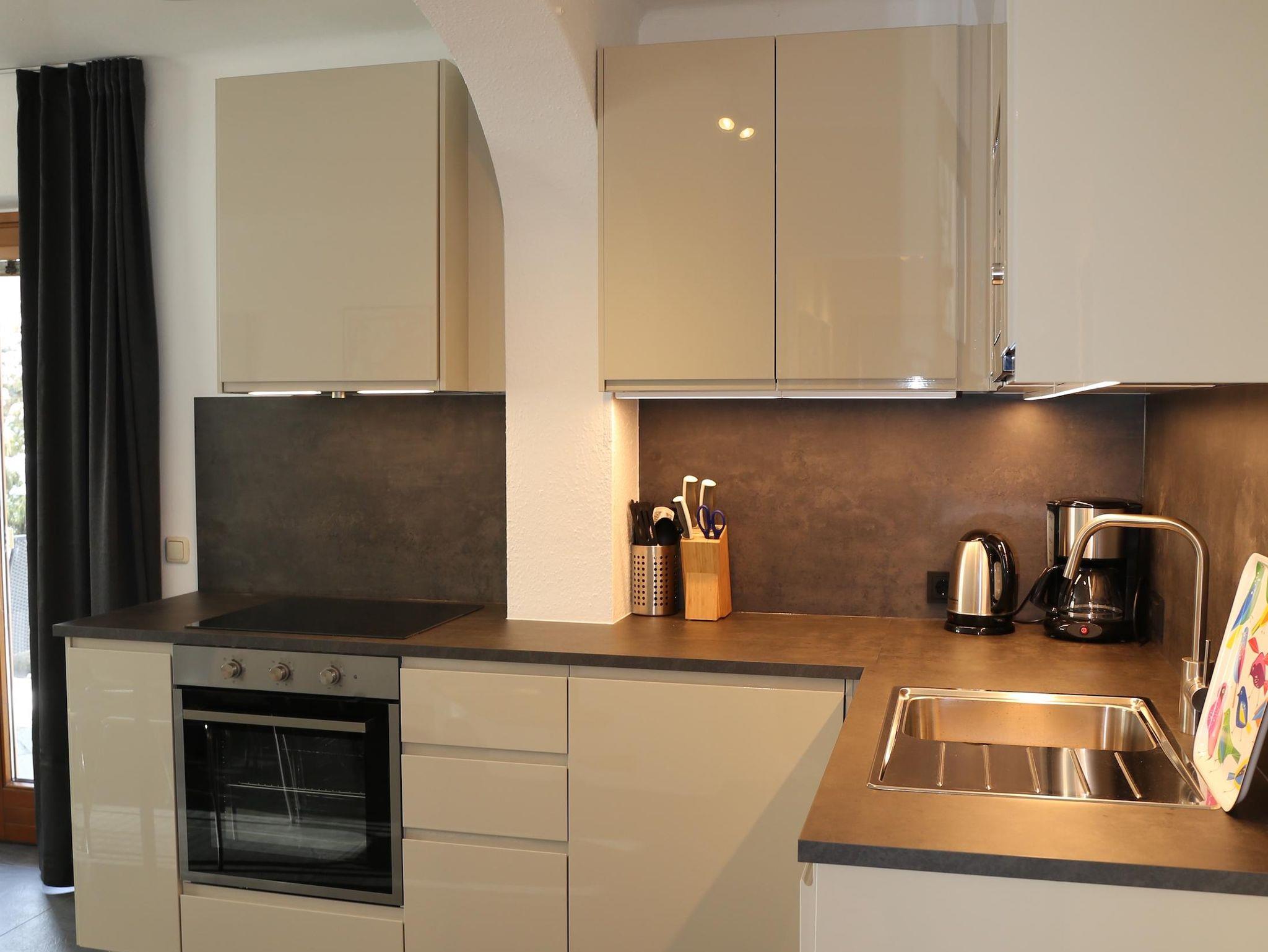 Das Badezimmer ist mit einem WC, einer Dusche und einer separaten Badewanne ausgestattet. Ebenso befindet sich ein Flat Screen mit Kabel-TV im Appartement. Internetzugang wird ebenso angeboten. In diesem Appartement gibt es eine Küche (renoviert 2022) mit Kochplatten, Ofen, Geschirrspüler und einer Mikrowelle.