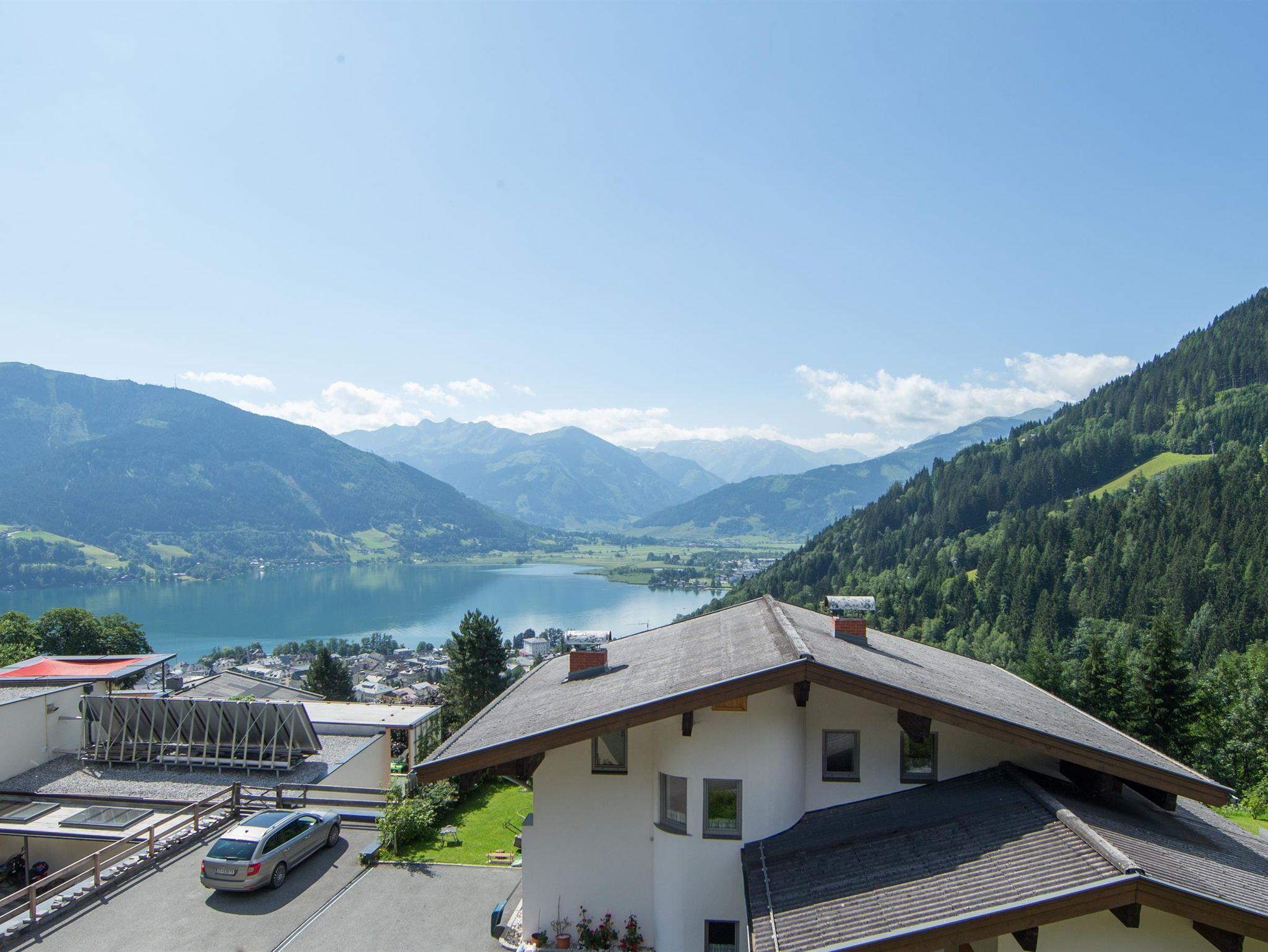 Das Haus selbst liegt etwa 100 Höhenmeter oberhalb des Zeller Sees: Diese Lage verschafft dir einen beeindruckenden Panoramablick auf das Wasser und die umliegenden Gipfel. Ins Ortszentrum von Zell am See führt dich ein 20-minütiger Spaziergang.