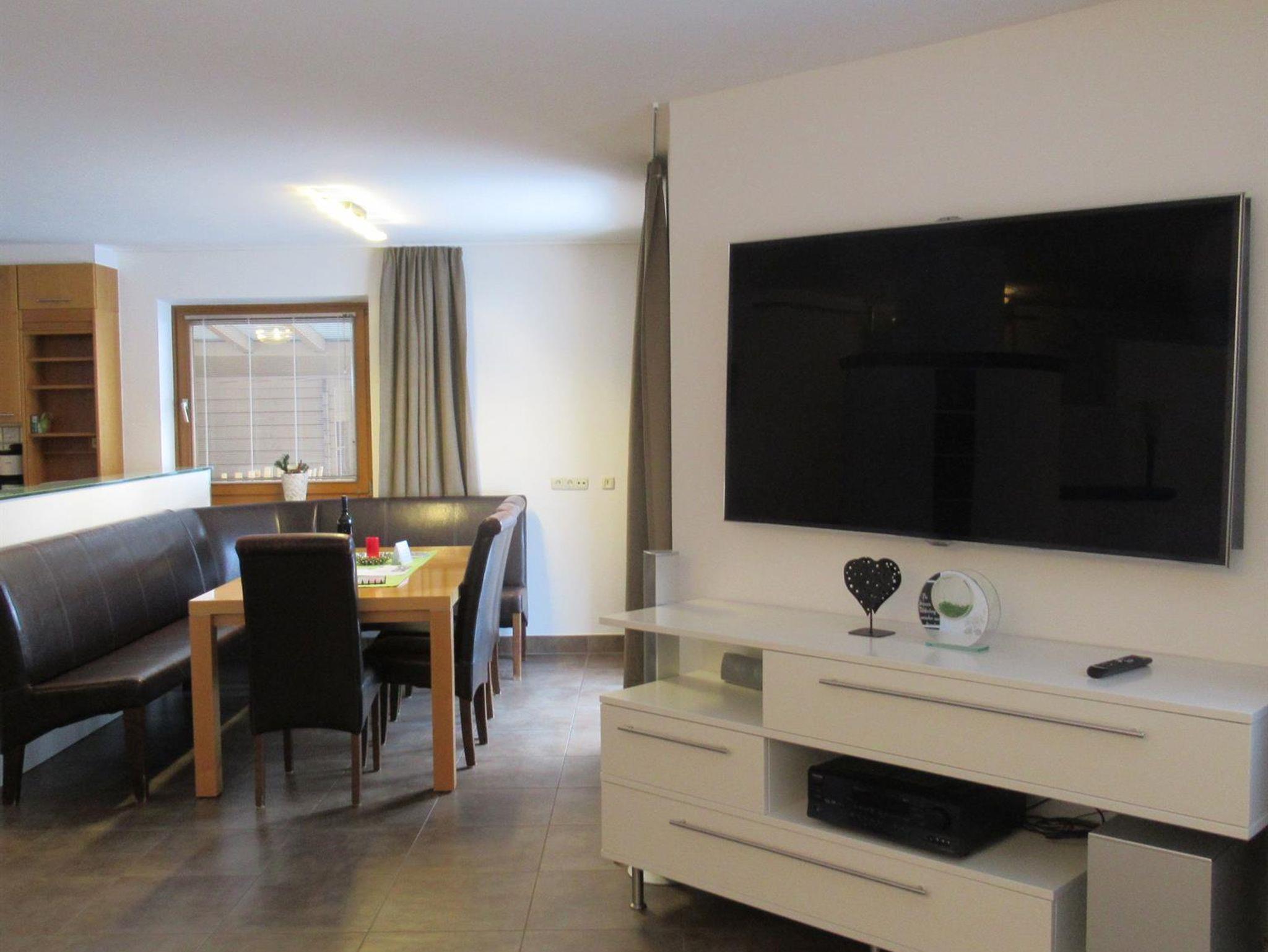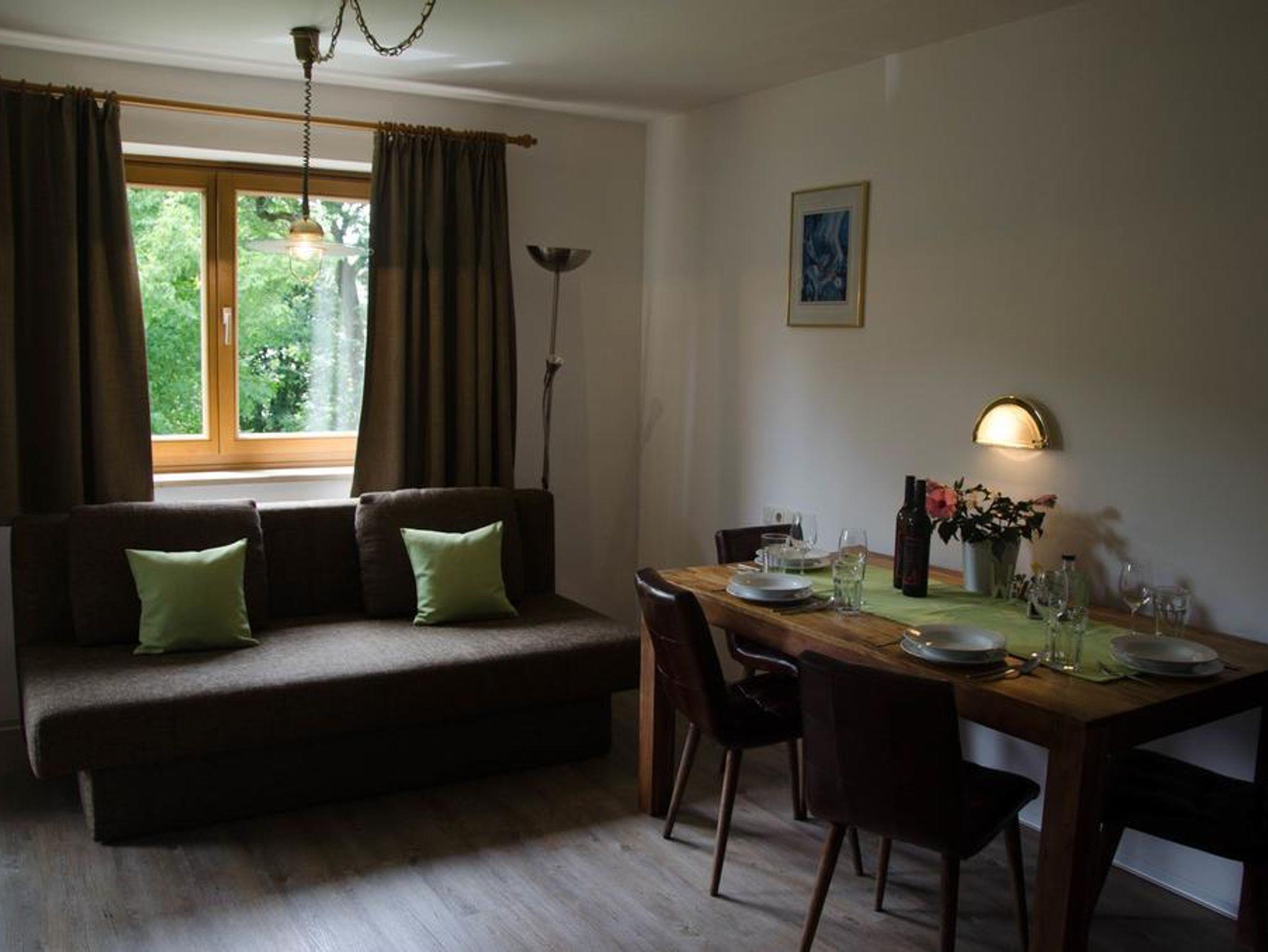 * Wohnraum mit gemütlicher Essecke und Schlafcouch (2 Personen), Flat-TV (Kabel-TV)
