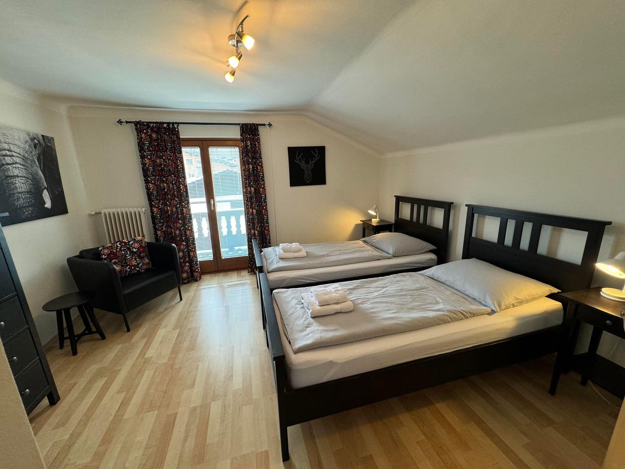 Appartement Norrland mit helle Räumlichkeiten und Balkon. Im ersten Schlafzimmer befindet sich ein Doppelbett, im zweiten Schlafzimmer zwei Einzelbetten.