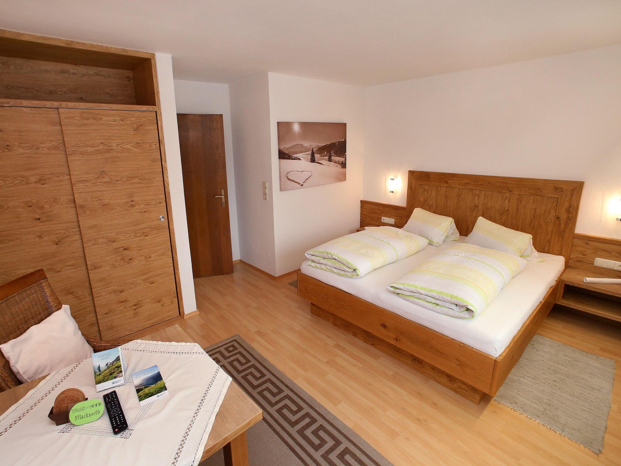 Ein Wohnschlafraum, mit normalem Doppelbett und Sitzbereich, 1 EXTRA Küche mit Essecke, Vorraum, Dusche WC sehr großer Balkon mit Sitzecke und unverbauten Bergblick