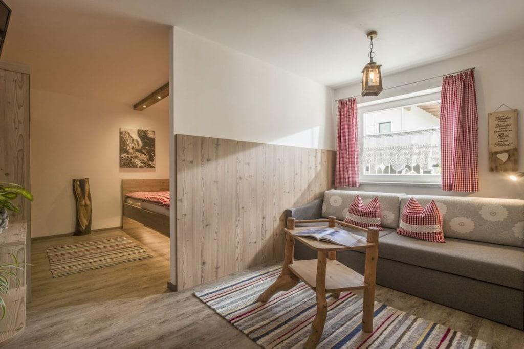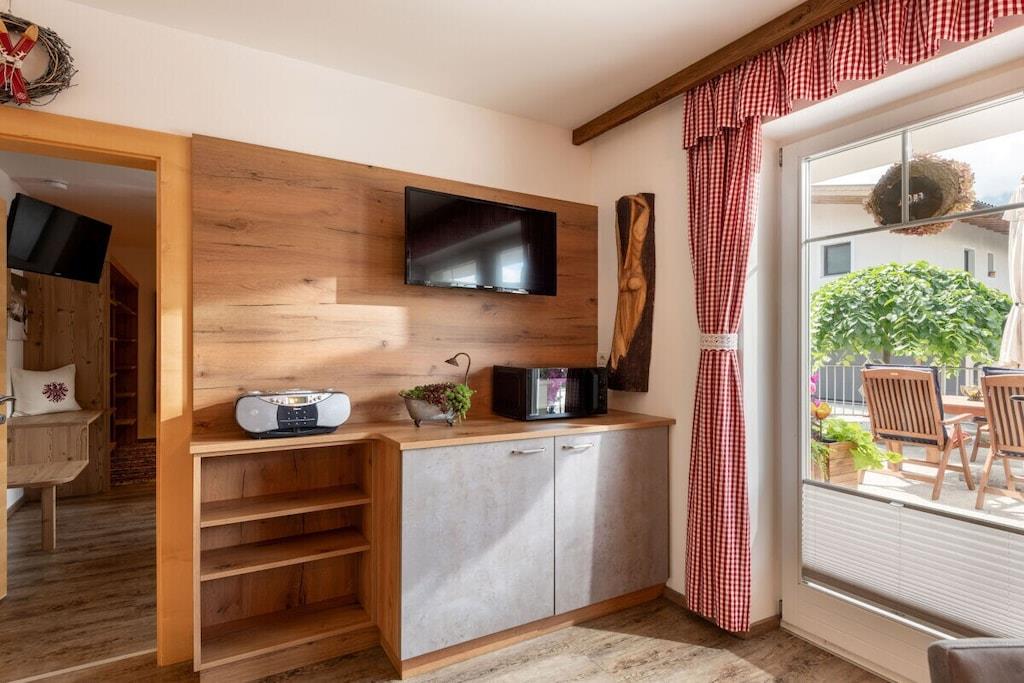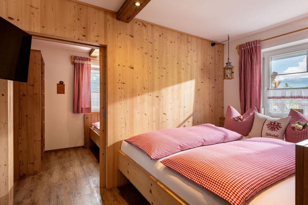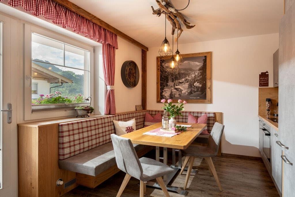 Vår ferieleilighet er på 85 m² og har plass til 2–6 personer. Den består av to soverom (ett med en ekstra stor trippelseng og en dør som forbinder en sovesofa som kan gjøres om til en dobbelt- eller enkeltseng om nødvendig), og et andre soverom med dobbeltseng; et romslig kjøkken med en stor hjørnebenk i skinn, kjøleskap, komfyr med fire kokeplater, brødrister, Nespresso-maskin, mikrobølgeovn, vannkoker, tre TV-er med satellitttilkobling, et utvalg av spill, et bad med gulvvarme, dusj og toalett, et tørkerom for våte skiklær og skistøvler, og en herlig solterrasse med komfortable hagemøbler (nye). Det er også en stor parkeringsplass med carport. Leiligheten er møblert med stor oppmerksomhet på detaljer i tradisjonell tyrolsk stil av en snekker.