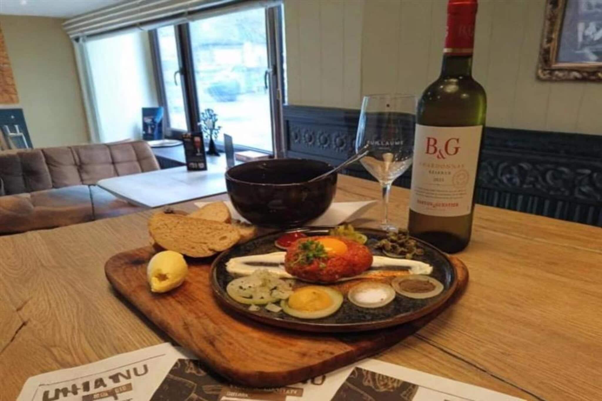 Au Coeur d’Alle ligger i den fredelige landsbyen Alle, og er et sjarmerende hotell som tilbyr en avslappende ferie i de belgiske Ardennene. Dette hotellet i de belgiske Ardennene er ideelt for par og naturelskere, og byr på varm gjestfrihet, koselig interiør og enkel tilgang til naturskjønne attraksjoner. Romfasiliteter – Dobbeltrom med stor dobbeltseng (ca. 20,5 m²) 1. Romslig rom med en stor, komfortabel dobbeltseng 2. Eget bad med dusj, hårføner og gratis toalettartikler 3. Flatskjerm-TV med kabelkanaler 4. Gratis Wi-Fi, egnet for arbeid eller fritid 5. Sittegruppe og garderobe 6. Oppvarming for komfort året rundt 7. Moderne innredning og røykfritt miljø 8. Kjæledyrvennlig rom 9. Praktisk stikkontakt ved nattbordet Hotellfasiliteter - 1. Restaurant på stedet som serverer belgisk og fransk mat 2. Frokostbuffé tilgjengelig 3. Innbydende bar og loungeområde 4. Romservice for ekstra komfort 5. Gratis parkering på stedet 6. Gratis Wi-Fi over hele eiendommen 7. Familierom tilgjengelig 8. Brannslukningsapparater, røykvarslere og sikkerhetsalarmer 9. Videoovervåkning i fellesområder og utendørs 10. Nøkkeladgangssystem 11. Flerspråklig personale snakker engelsk, fransk og nederlandsk 12. Døgnåpen resepsjon Attraksjoner i nærheten - 1. Château de Bouillon: historisk landemerke i nærheten av hotellet 2. Abbaye de Sept Fontaines golfbane 3. Turstier og sykkelstier i Semois-dalen 4. Skøytebane i nærheten for vintermoro 5. Sjarmerende landsbyer og naturskjønne utsiktspunkter Slik kommer du deg til Au Coeur d’Alle - 1. Lett tilgjengelig via motorveien E411 2. Tog til Libramont eller Bertrix, deretter taxi eller lokalbuss 3. Alle Centre bussholdeplass ligger i gangavstand 4. Brussel Sør-Charleroi lufthavn: ca. 1 t 20 min med bil Dette dobbeltrommet på Au Coeur d’Alle tilbyr komfort, bekvemmelighet og en utmerket beliggenhet for å utforske Sør-Belgia. Bestill oppholdet ditt i dag og oppdag skjønnheten og sjarmen til Ardennene!