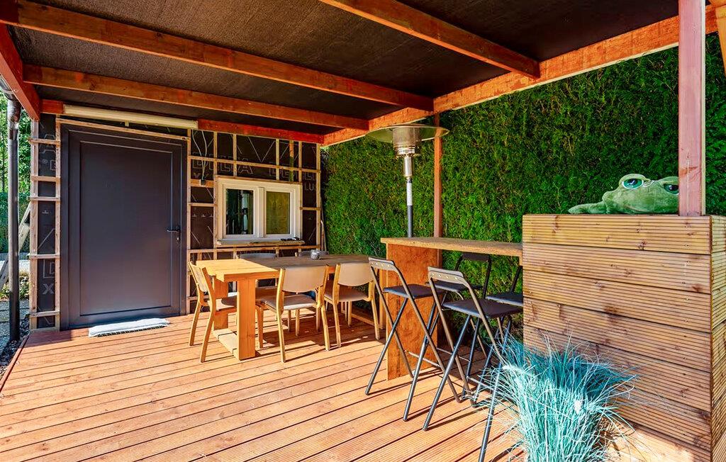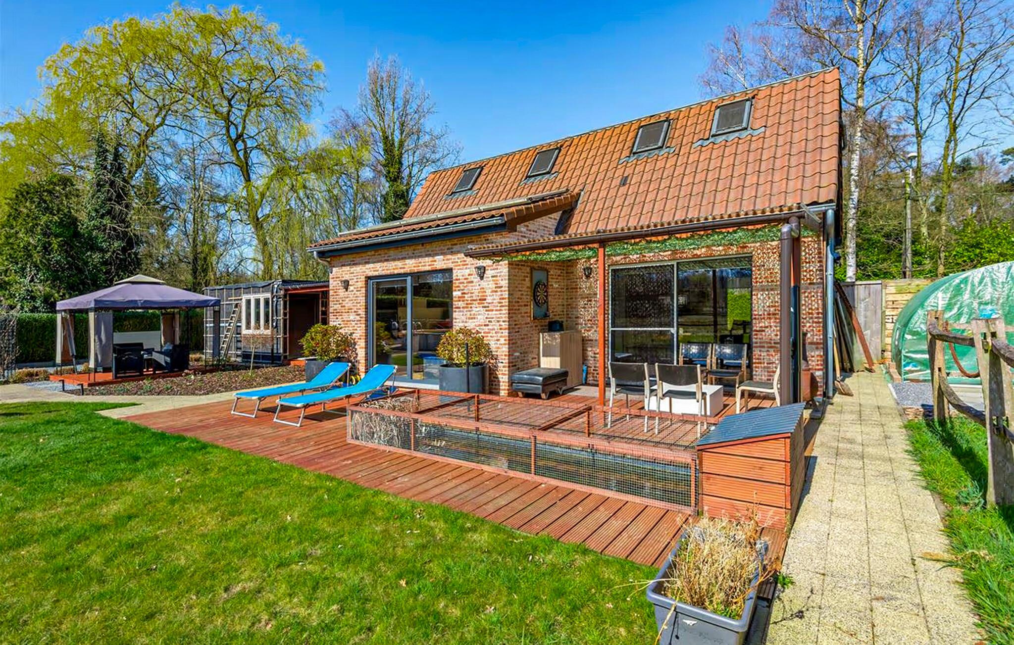 Gå ut i det kjærlig anlagte uteområdet med stor gressplen og flere terrasseområder. Nyt solfylte ettermiddager på solsengene eller ta en dukkert i det lille utendørsbassenget. Bli værende under den overbygde terrassen med sittegruppe, som er ideell for lange kvelder. I mellomtiden kan du la barna leke på lekeplassens lekeapparater eller på trampolinen.