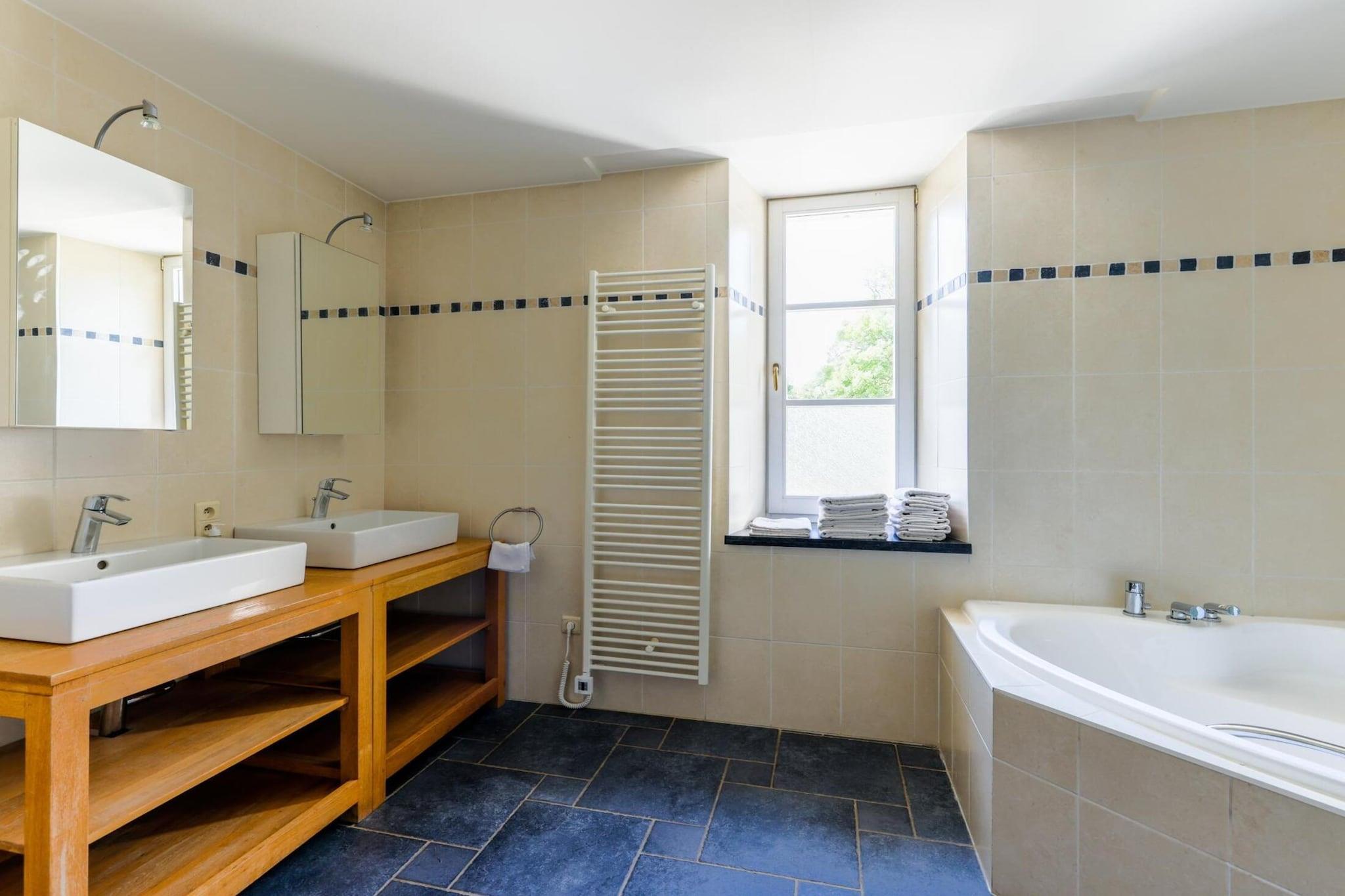 Dette unike tårnhuset ligger i et slott fra 1500-tallet ved elven Amblève, omgitt av natur, men likevel nær sentrum av Aywaille (500 m). Det hyggelige oppholdet på Domaine Château de Dieupart har 3 soverom og har plass til opptil 8 personer. Ideell for en familieferie.Det er mye å gjøre i nærheten av slottet, for eksempel et besøk til de vakre grottene i Remouchamps, delvis til fots og delvis med båt. Den sportsentusiasten kommer heller ikke til å kjede seg her; det finnes ulike gang- og sykkelruter i umiddelbar nærhet av slottet. Dessuten tilbyr både YOUROUT og Newlife en rekke utendørsaktiviteter; fra klatring og rappellering til kajakkpadling, grotting, fotturer og terrengsykling. Skjem bort deg selv med en matbit og en drink på den felles terrassen mens barna har det gøy med (også felles) lekeutstyr. I tillegg er det en kafé/restaurant på stedet som du kan benytte om ønskelig. Det er også en campingplass på domenet.