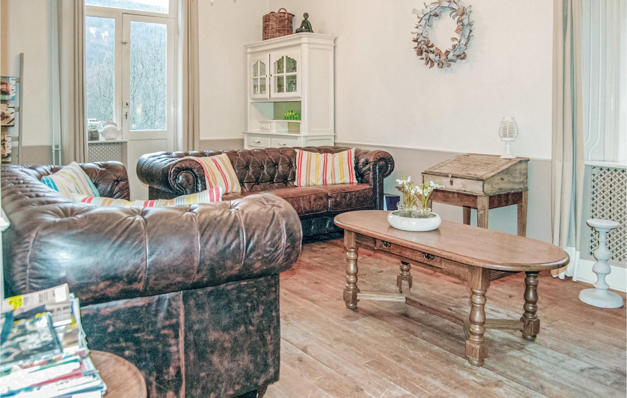 Feriehuset ligger i en idyllisk dal, 25 km sør for Dinant og rett ved den franske grensen. Det står på en skogkledd tomt på 25 000 m2. Den grunne bekken La Houle renner i den inngjerdede hagen. Du finner også noen lekeapparater og noen benker. Barna kan leke av hjertens lyst i skogen eller på de store plenene. På terrassen på forsiden av huset kan du nyte middagssolen i den koselige sittegruppen. Den andre terrassen med gassgrill ligger foran kjøkkenet på et lavere nivå. I sommermånedene kan du nyte måltidene utendørs sammen ved de store hagebordene. Hvis været ikke vil samarbeide, er det bare å gjøre det komfortabelt sammen på kjøkkenet. Kveldene er alltid for korte ved peisen i den koselige stuen. Det store bordet i den elegante spisestuen ved siden av er også flott for å spille brettspill. Soverommene i første og andre etasje har alle eget bad. TV-en kan bare brukes til DVD-er. Feriehuset er en ideell feriebolig hvor du vil tilbringe et avslappende og avslappende opphold. Dette huset er hovedsakelig beregnet på familier. Andre grupper kan imidlertid aksepteres med eierens samtykke og med en mulig økning i depositumet. Grupper av personer under 30 år er generelt ikke tillatt.