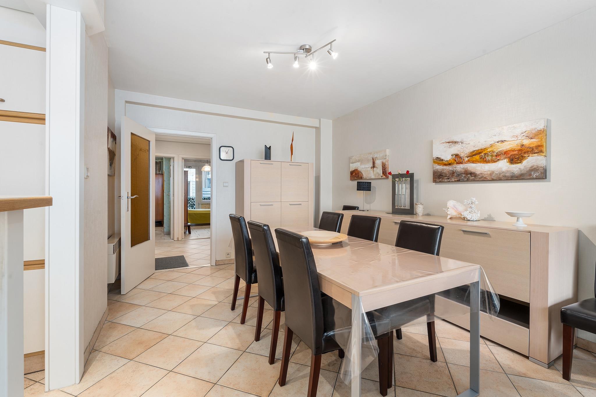 Denne solrike og koselige leiligheten ligger kun en 2-minutters spasertur fra Nordsjøstranden og Casino Blankenberge, og tilbyr den perfekte setting for en avslappende ferie ved kysten. Den ligger i første etasje, og har en romslig stue, et separat kjøkken og en privat terrasse – ideell for å nyte morgenkaffen eller kveldssolnedganger. Leiligheten har komfortabel plass til opptil 6 gjester med to soverom - ett med dobbeltseng og et annet med dobbeltseng og køyeseng - pluss en dobbel sovesofa i stuen. Et komplett bad med badekar, separat gjestetoalett og bekvemmeligheter som Wi-Fi, TV og heis sørger for et praktisk og komfortabelt opphold. Gjestene vil sette pris på den inkluderte garasjen rett overfor leiligheten, mens butikker, restauranter og offentlig transport er innen gangavstand. Med Blankenberge-senteret bare 100 m unna, Brugge 12 km og Sea Life Blankenberge 1 km, er dette tilfluktsstedet perfekt plassert for både moro ved havet og kulturell utforskning.