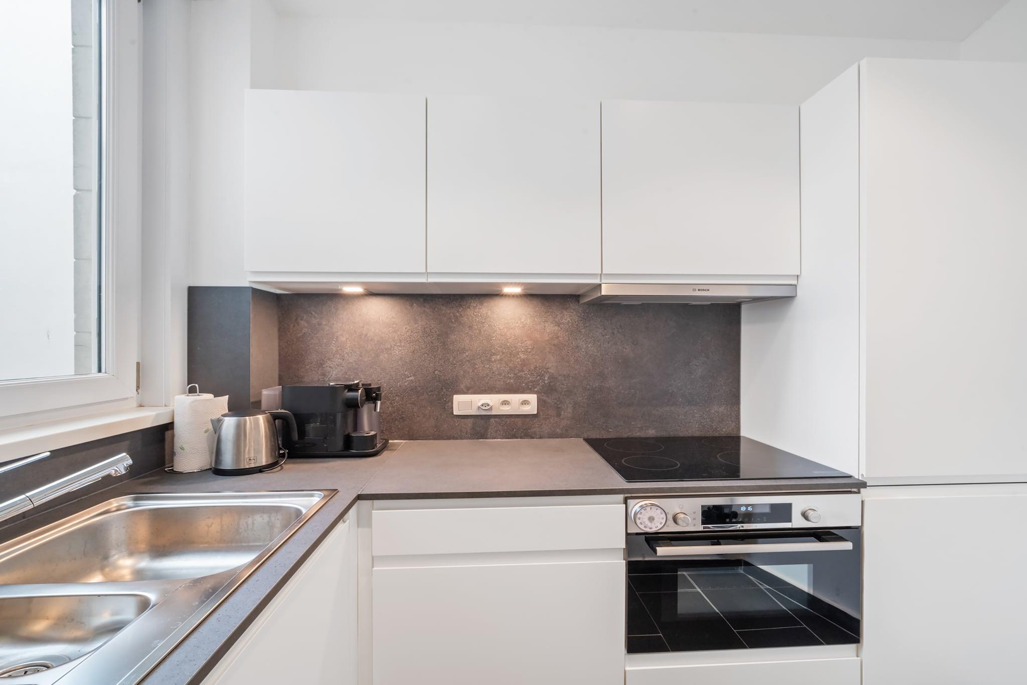 Denne vakkert renoverte 1-romsleiligheten på Koninginlaan 29 ligger kun 350 meter fra stranden og en kort spasertur fra Blankenberges livlige handlegate, og er perfekt for en avslappende ferie ved kysten. Soverommet har en komfortabel dobbeltseng, og et sammenleggbart sete i stuen gjør at leiligheten har plass til opptil 4 gjester. Det fullt utstyrte kjøkkenet har alle moderne bekvemmeligheter, noe som gjør det enkelt å tilberede måltider hjemme. Det stilige badet har en italiensk dusjkabinett, og gjestene har også tilgang til en vaskemaskin, ideell for lengre opphold eller stranddager. Leilighetens lyse og moderne design skaper en innbydende atmosfære for par, familier eller venner. Med sin førsteklasses beliggenhet nær sjøen, butikker og restauranter, tilbyr denne leiligheten både komfort og bekvemmelighet. Enten du planlegger en strandferie eller en helgetur, er det en ideell base for å nyte alt som Blankenberge har å tilby.