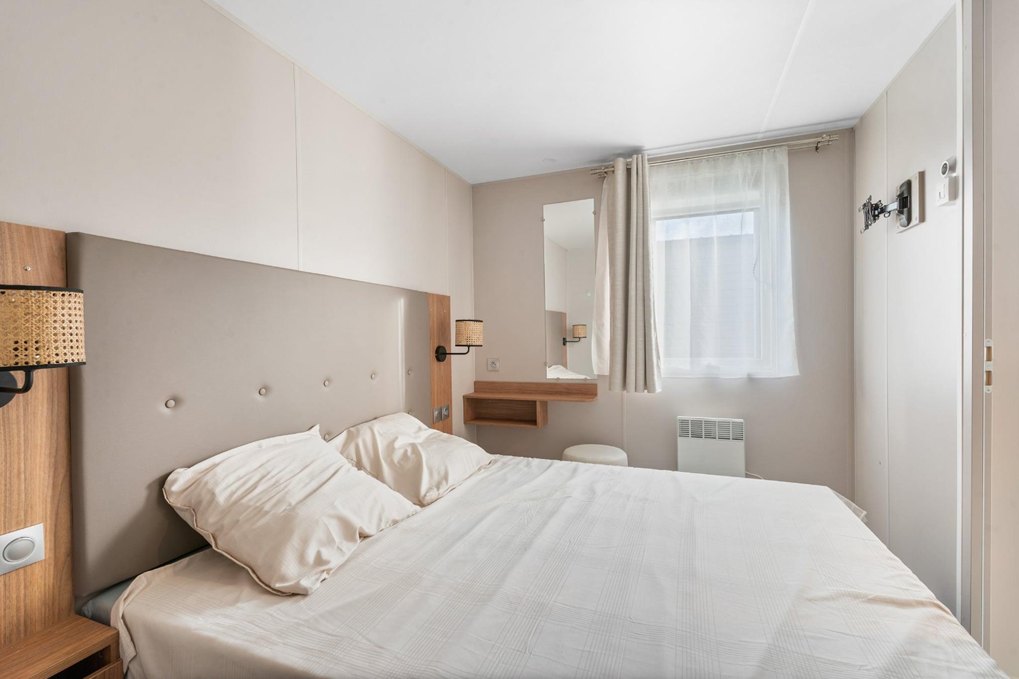 Gå inn på Summer Dream Beach, ditt rolige tilfluktssted ved den belgiske kysten. Denne lyse, moderne hytta er designet med komfort i tankene – fra den romslige sentrale sittegruppen med kabel-TV til det fullt utstyrte kjøkkenet med oppvaskmaskin, mikrobølgeovn og alt du trenger for uanstrengte feriemåltider. To koselige soverom med blendingsgardiner sørger for avslappende netter, og treterrassen med hagemøbler er perfekt for avslappede morgener eller solnedgangsdrinker. Hvert rom er utstyrt med elektrisk oppvarming, noe som gjør det til et helårs fristed. Hytta har en ideell beliggenhet bare noen øyeblikk fra sandstrendene i Blankenberge, og du får skritt unna den livlige strandpromenaden. Nyt naturskjønne spaserturer langs bryggen, besøk ikoniske Sea Life Blankenberge, eller hopp på kysttrikken for en dagstur til nærliggende perler som De Haan eller middelalderbyen Brugge. Både familier, par og alenereisende vil elske hvor tilgjengelig natur og kultur er fra dørstokken din. Tilfredsstill smaksløkene dine med lokale kulinariske herligheter rett rundt hjørnet. Unn deg fersk sjømat på Oesterput, nyt belgiske bistroklassikere på De Ouden Dijk, eller nyt snacks ved stranden på Brasserie Oosterstaketsel. Enten du har lyst på en romantisk middag eller en rask vaffel etter stranden, serverer Blankenberge noe deilig for enhver appetitt.