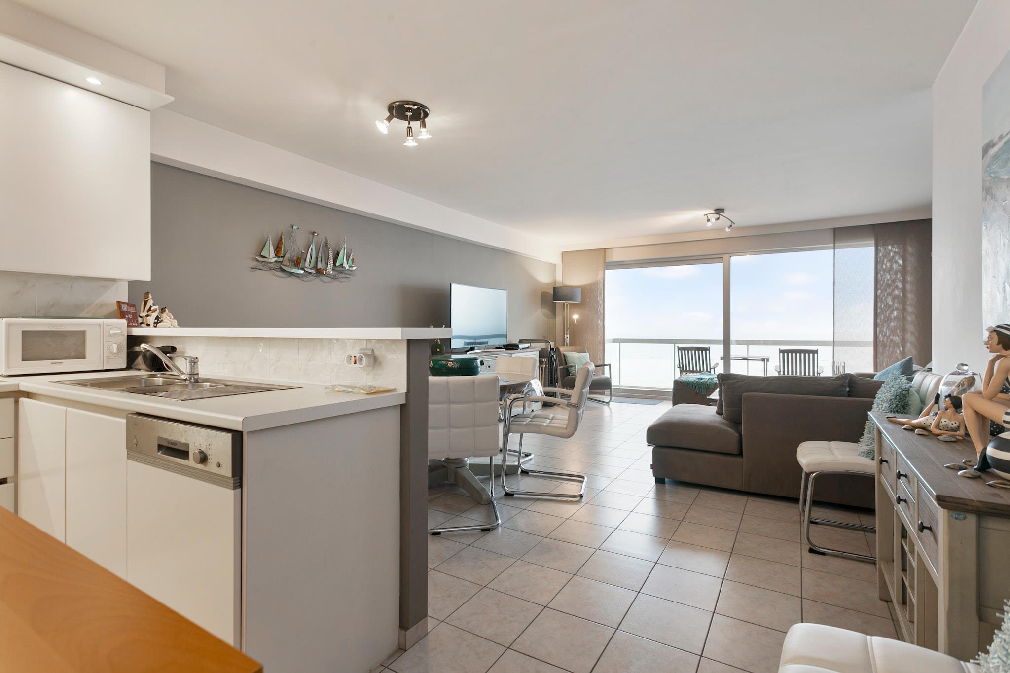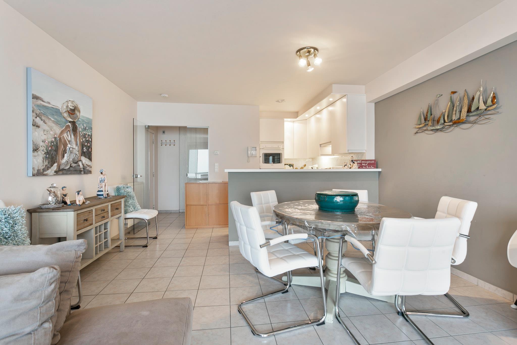 Denne luftige leiligheten i 4. etasje, som ligger ved strandpromenaden i Blankenberge, tilbyr et romslig og komfortabelt tilfluktssted med fantastisk utsikt. Det brede boarealet har et kjøkken med åpen planløsning og en hyggelig terrasse, perfekt for å nyte måltider eller slappe av utendørs. En hall med garderobe og lukket bod tilfører planløsningen bekvemmelighet. Badet har badekar, ideelt for å slappe av etter en dag med utforsking. Blankenberge er kjent for sin vakre strand og livlige strandpromenade, hvor du kan spasere, shoppe eller nyte de lokale kafeene og restaurantene. Den ikoniske Blankenberge-bryggen tilbyr fantastisk utsikt og en rekke aktiviteter, mens det nærliggende Sea Life-akvariet sørger for moro for familier. Med sykkelstier og naturreservater i nærheten, har du mange muligheter for utendørsopplevelser. Denne leiligheten er den perfekte basen for å nyte alt Blankenberge har å tilby. Leiligheten har to soverom - ett med dobbeltseng og det andre med køyeseng og uttrekkbar seng, noe som gjør den egnet for familier eller små grupper. Det andre soverommet har også et tilstøtende dusjrom for ekstra komfort. Eiendommen har både en bakre balkong og en terrasse foran, komplett med terrassestoler og et hagebord for utendørs nytelse.