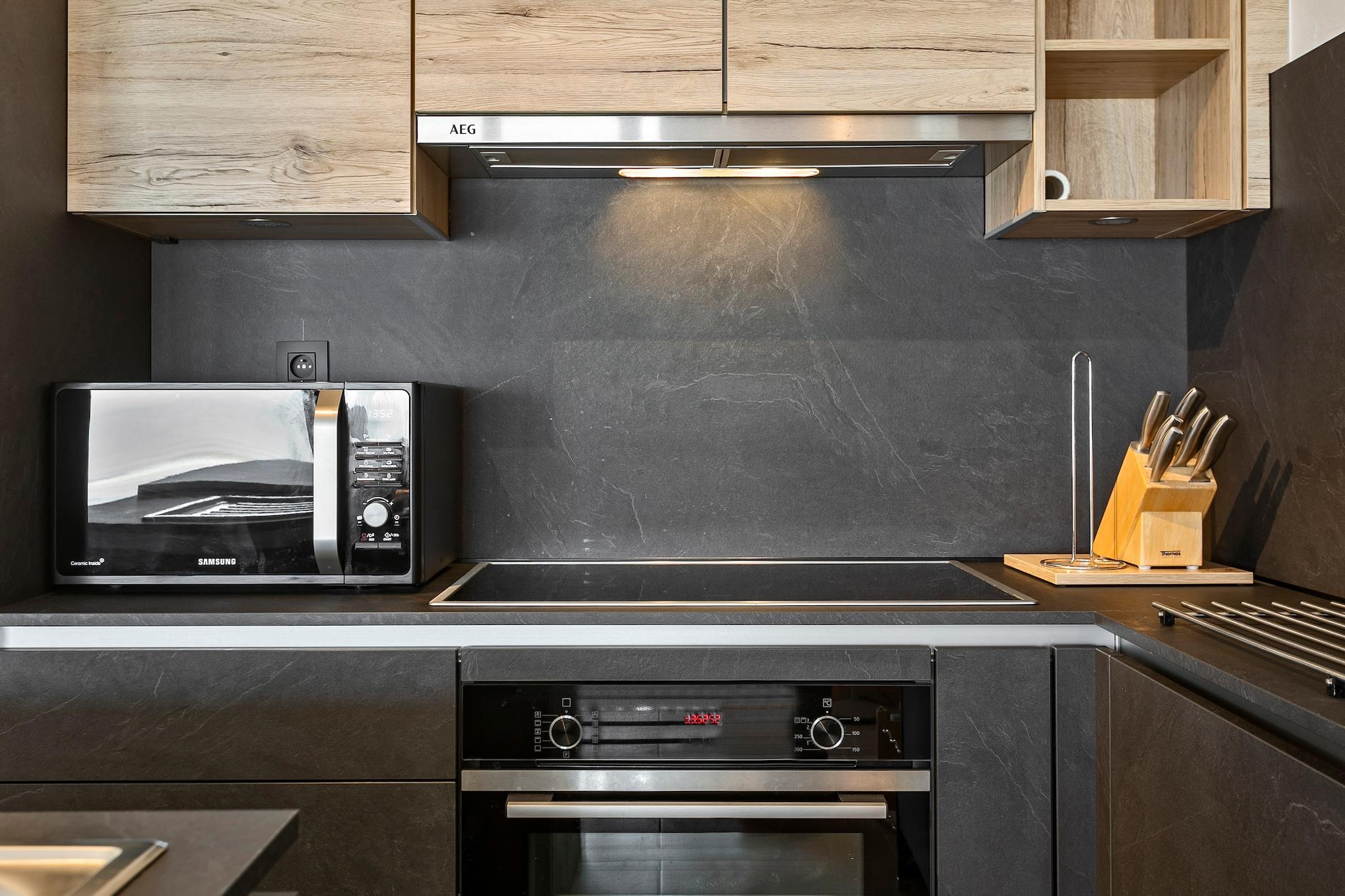 I 6. etasje: (Korridoren(toalett), Stue(dobbel sovesofa, TV, spisebord, sittehjørne, DVD-spiller), Kjøkken(komfyr med kokeplater(elektrisk), vannkoker, brødrister, kjøkkenvifte, kaffetrakter, stekovn, mikrobølgeovn, oppvaskmaskin, kjøleskap med fryser), soveværelse(dobbeltseng(180 x 200 cm), TV), soveværelse(dobbeltseng(160 x 200 cm)), bad(badekar, dusj, håndvask, håndvask, Hårtørker)) tørketrommel, vaskemaskin, balkong eller terrasse, oppvarming(gass), heis, strykebrett, strykejern