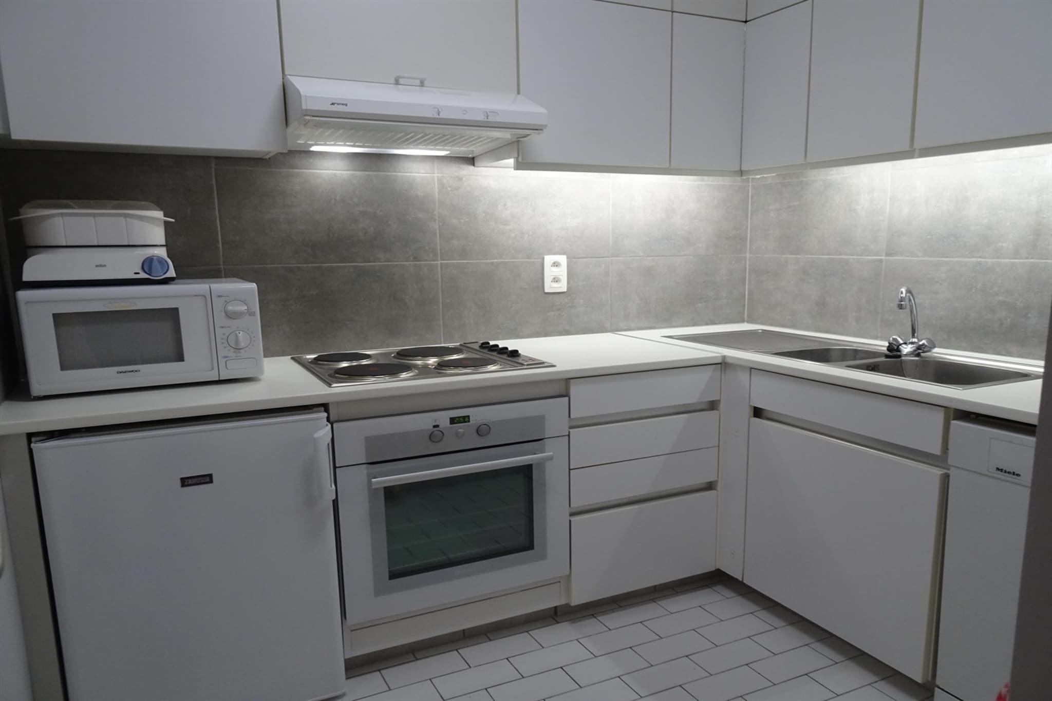 Denne veldig fine 1-roms leiligheten, som ligger ved strandpromenaden, tilbyr fantastisk havutsikt både fra stuen og soverommet, noe som gjør den til et perfekt tilfluktssted for de som elsker å våkne til lyden av havet. Sterkt anbefalt for alle som søker en fredelig flukt ved sjøen, denne leiligheten plasserer deg bare noen skritt fra stranden og promenaden, hvor du kan nyte kystvandringer eller sykkelturer. Det livlige sentrum av Blankenberge, med sine butikker, kafeer og restauranter, er innen rekkevidde, noe som gjør det til en ideell base for å utforske både kysten og lokale attraksjoner. Den moderne, komfortabelt møblerte stuen åpner ut mot en terrasse foran med terrassestoler og et hagebord, ideelt for å slappe av mens du nyter utsikten. Soverommet vender også mot havet og har en dobbeltseng for en god natts søvn. Badet har badekar og toalett, mens det fullt utstyrte, lukkede kjøkkenet tilbyr alle nødvendige bekvemmeligheter for et praktisk opphold.