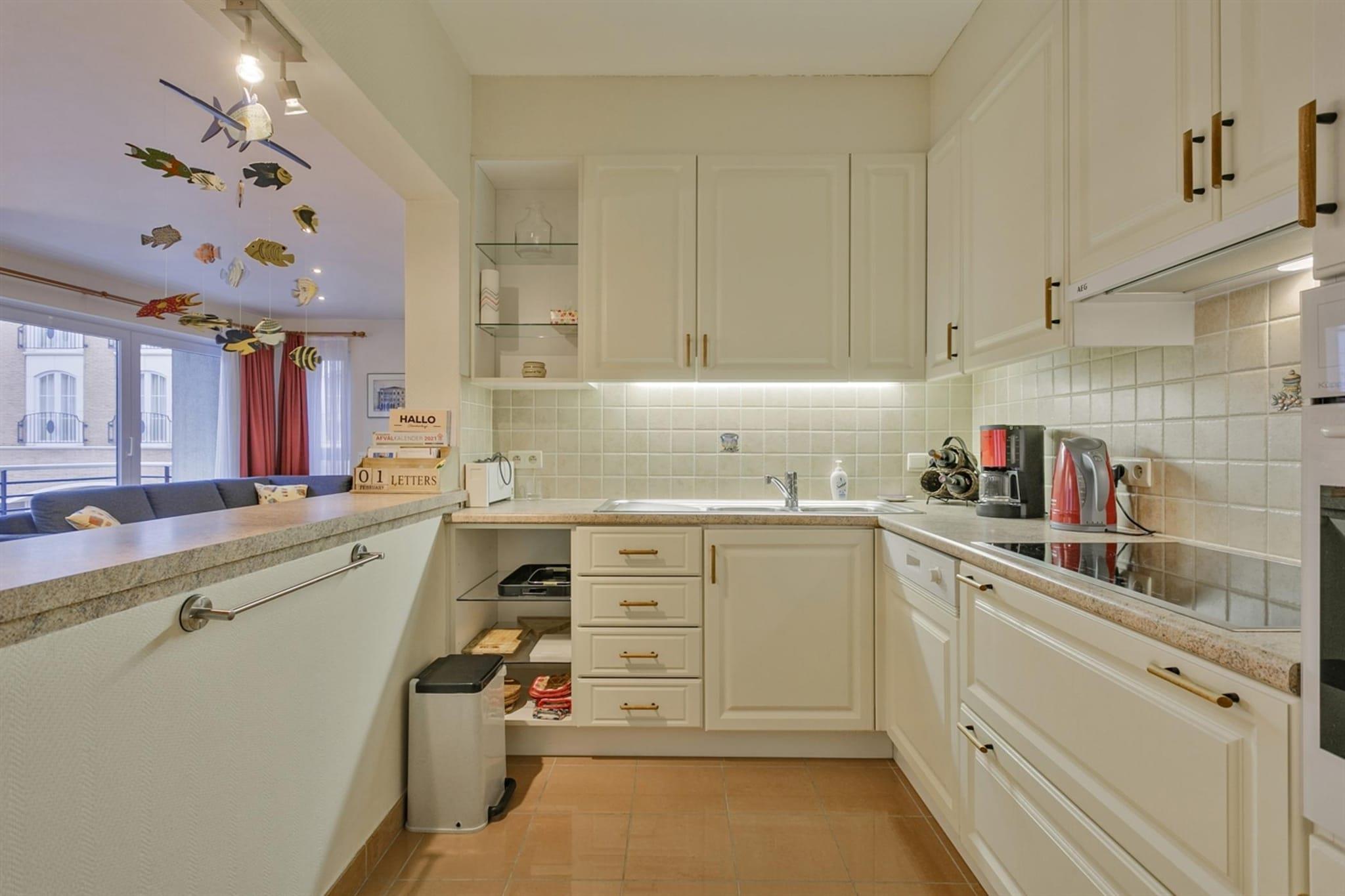 Denne romslige og solrike leiligheten med 2 soverom har en ideell beliggenhet nær sentrum og bare noen skritt fra strandpromenaden. Den lyse stuen har en komfortabel hjørnesofa, et spisebord for seks personer og en flatskjerm-TV med digitale kanaler. Herfra går du ut på den hyggelige terrassen, perfekt for å slappe av med terrassestoler. Det første soverommet har en dobbeltseng, mens det andre soverommet har to enkeltsenger, med en ekstra madrass tilgjengelig for ekstra komfort. Kjæledyr er ikke tillatt, noe som sikrer et rent og allergenfritt miljø. En sykkelbod er tilgjengelig for de som ønsker å utforske omgivelsene på to hjul. Blankenberge tilbyr en perfekt blanding av historie, kultur og rekreasjon. På Belle Epoque Centrum kan du lære om byens fremvekst som en elegant badeby med utstillinger om arkitektur, mote og kunst. Utforsk det historiske House of Majutte, det eldste fiskerhuset på den belgiske kysten, eller besøk SEA LIFE for å se over 2500 sjødyr. Nyt naturskjønn utsikt fra Belgium Pier eller Oosterstaketsel, ideelt for fotografering og fiske. Havnefestivalen og Paravang-festene feirer byens maritime tradisjoner og Belle Époque-arv. For å slappe av kan du slappe av ved Riant d"Eau Wellness eller Bloso Blankenberges badstuekompleks. Vannsportentusiaster kan besøke O"Neil Beachclub, mens sportselskere kan nyte tennis, padel eller petanque på Tennis Club. Ikke glem en morsom kveld med bowling på Bowl Inn! Leiligheten er designet for bekvemmelighet, og har et fullt utstyrt kjøkken med moderne apparater, som sikrer problemfri tilberedning av måltider. Badet har badekar, dobbel servant og toalett for ekstra komfort. En bod med vaskemaskin og tørketrommel tilbyr ekstra bekvemmelighet, noe som gjør denne leiligheten til et velutstyrt hjem borte fra hjemmet.