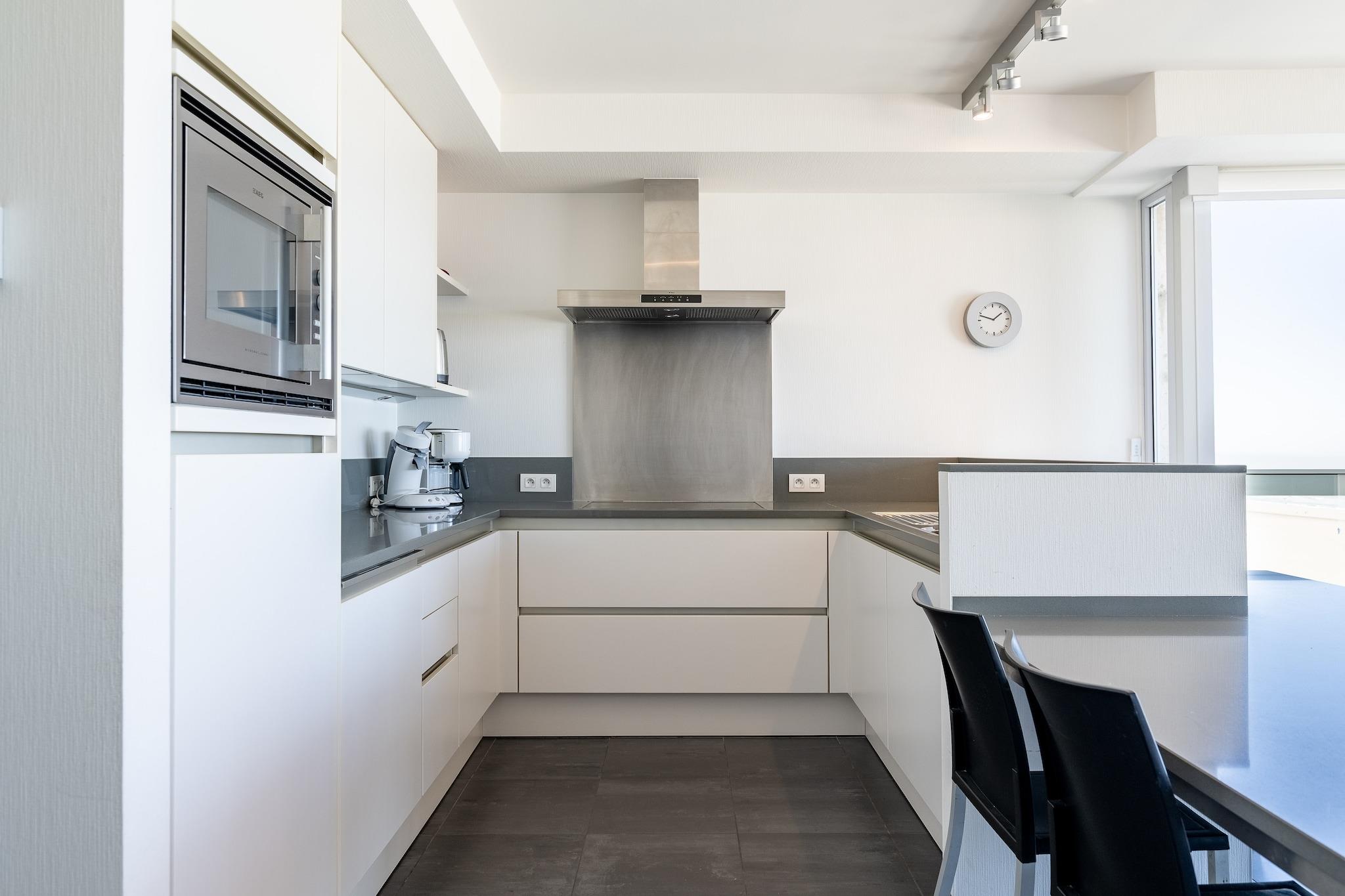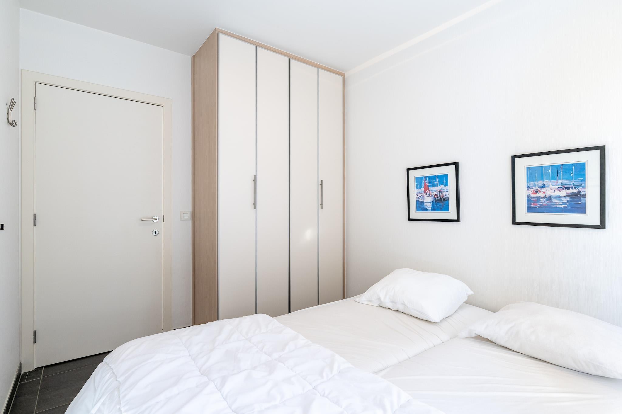 Denne romslige og stilfullt møblerte leiligheten med 3 soverom tilbyr en luksuriøs kystferie med vidstrakt utsikt over havet, den ikoniske moloen og de bølgende sanddynene. Med en perfekt beliggenhet på De Saedeleerhelling 2, bare noen skritt fra stranden og nær den travle promenaden, er den ideell for familier eller grupper på opptil 7 gjester. Den lyse stuen åpner ut mot en møblert terrasse hvor du kan nyte den salte brisen. Innvendig har leiligheten tre velutstyrte soverom: ett med enkeltseng og køyeseng, og to med komfortable dobbeltsenger (1m60). Duntepper, puter og madrassbeskyttere er inkludert. To bad sikrer bekvemmelighet: ett med badekar/dusj-kombinasjon og vask, pluss et separat dusjrom. Et gjestetoalett er også separat for ekstra privatliv. Det moderne kjøkkenet er fullt utstyrt med keramisk koketopp, kombiovn, stort kjøleskap med fryser, oppvaskmaskin, kaffetrakter (filter), vannkoker, brødrister, mikser og alt nødvendig kjøkkenutstyr – perfekt for å tilberede familiemåltider etter en dag på stranden. Du får også tilgang til gratis Wi-Fi, digital-TV med flatskjerm, DVD/CD-spiller, vaskemaskin, tørketrommel, strykebrett og støvsuger. Oppvarmet med sentralvarme på naturgass, og forbruket dekkes via depositum. Leiligheten ligger i 5. etasje og er tilgjengelig med rullestolvennlig heis. Merk: røykfritt, ingen kjæledyr tillatt. En garasjeboks i nærheten kan leies på forespørsel. All sjarmen til den belgiske kysten ligger rett utenfor døren – fra sanddyner og hav til det livlige bryggeområdet og familievennlige attraksjoner.
