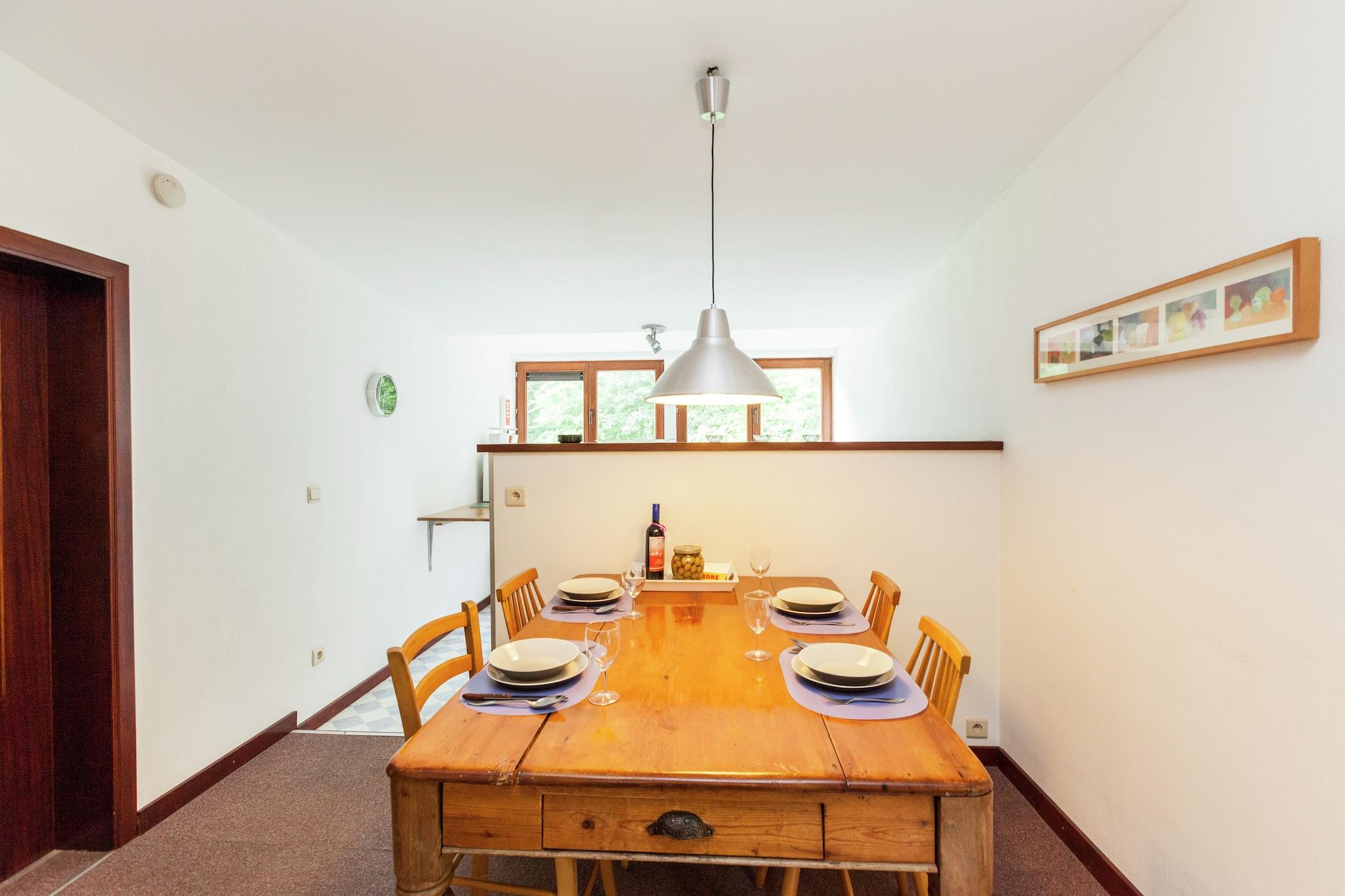 Denne sjarmerende 2-roms leiligheten ligger på en fredelig 20 hektar stor eiendom i Bohon, Ardennes, og er perfekt for en familie eller gruppe på opptil 4 personer. Omgitt av naturlig skjønnhet, tilbyr det den ideelle tilfluktsstedet for naturelskere, med skogen bare 100 m unna, perfekt for rolige turer og utforsking av villmarken. Hjemmet er også kjæledyrvennlig, så dine lodne følgesvenner er også velkomne. Det velutstyrte kjøkkenet lar deg tilberede måltider hjemme, med forsyninger kun 3 km unna. For å endre tempo kan du utforske de nærliggende byene Barvaux (5 km) og Durbuy (7 km), hvor du finner restauranter, butikker og kulturelle attraksjoner. En naturskjønn innsjø ligger bare 1 km fra eiendommen, ideell for en fredelig piknik eller ettermiddagstur. Kanopadling, sykling, fiske og bademuligheter i nærheten sørger for en avrundet ferie. Denne leiligheten er gjennomtenkt innredet med sentralvarme, balkong, grill, badekar og barneseng, og sørger for et komfortabelt opphold for alle aldre. Med offentlig transport tilgjengelig på 4 km, er det både tilbaketrukket og tilgjengelig, og tilbyr en rolig base for å utforske Ardennes-regionen.