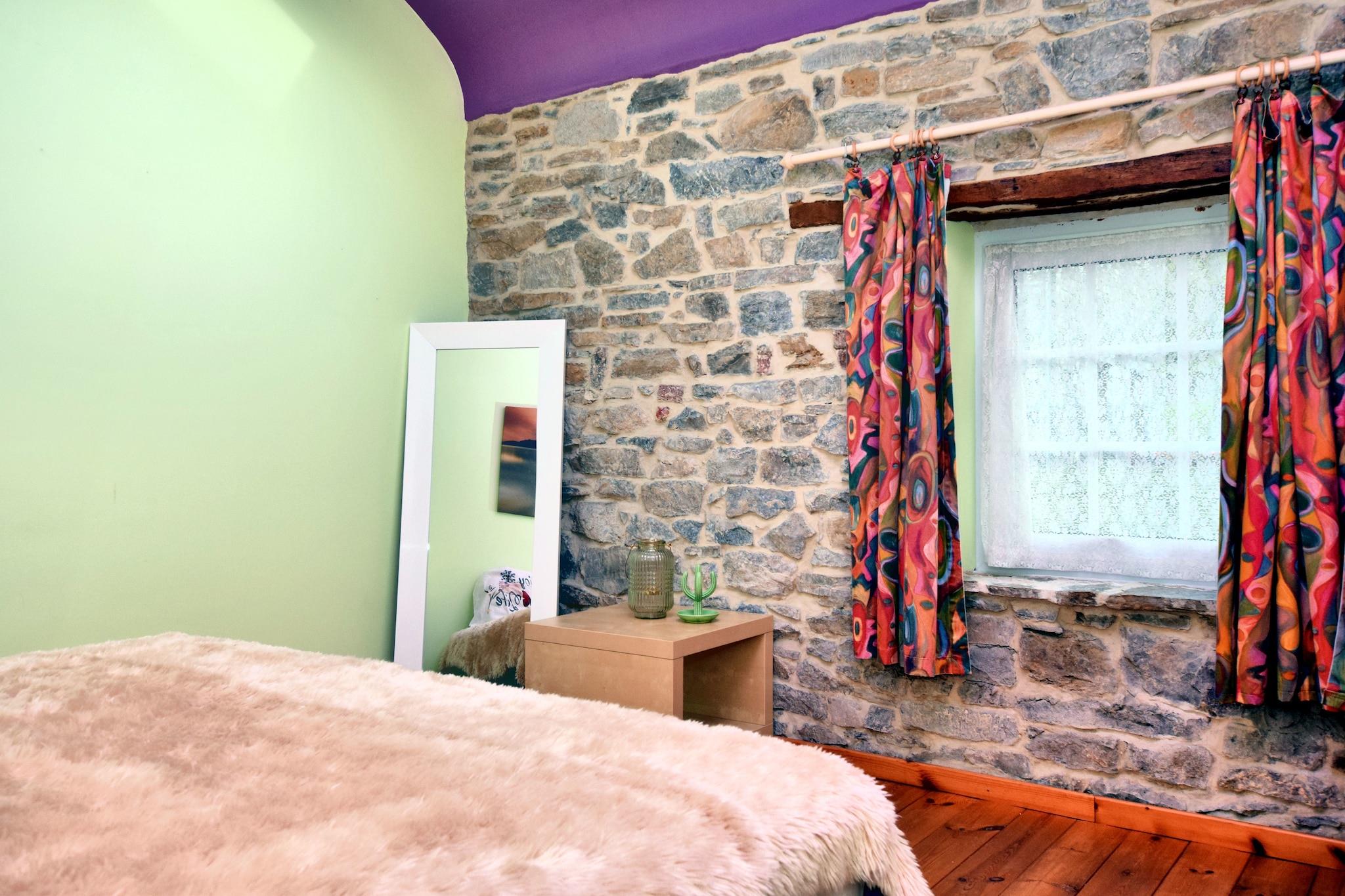 Det er vanskelig å finne et feriehus som er mer koselig og mer autentisk enn dette. Forventninger er satt så snart du ser utsiden, og du vil finne at de blir møtt når du går inn i. Den omfattende bruken av naturstein, trebjelkerne og oljevarmeren i stuen legger alle til atmosfæren. Det faktum at eieren pleide å bruke huset bare for seg selv til nylig, hjelper også. Dette er det perfekte stedet å få den typiske Ardennes-atmosfæren. Og alt dette er ledsaget av moderne fasiliteter for å gi deg god komfort, for eksempel et renovert bad, kabel-TV og Wi-Fi. På fine dager kan du gå ut i den overraskende lange og pent anlagte hagen. Hele veien på slutten av det, kan du nyte den fantastiske utsikten over de rullende feltene med den rike esken her og der for å fullføre bildet.Bourlon er en rolig landsby, men ikke for langt unna finner du den vakre Durbuy, hvor du kan spasere gjennom de små middelalderske gatene og spise lunsj eller middag i en av de mange restaurantene. Og selvfølgelig er de vakre, naturlige omgivelsene perfekt for fotturer eller sykling.