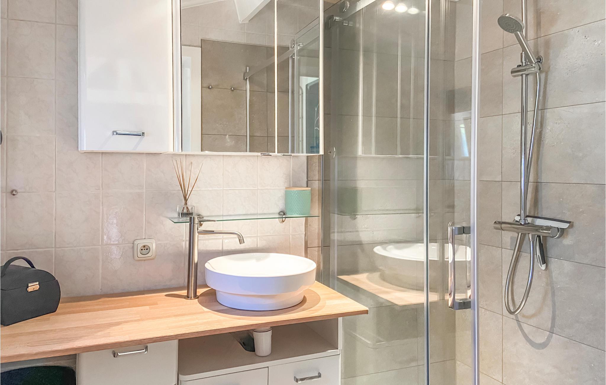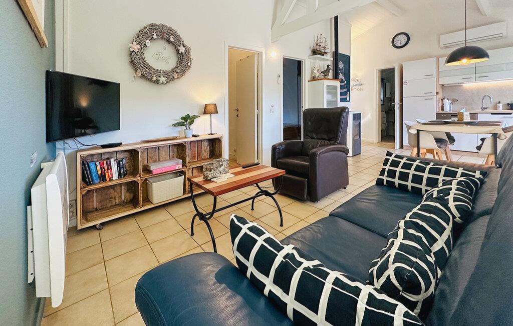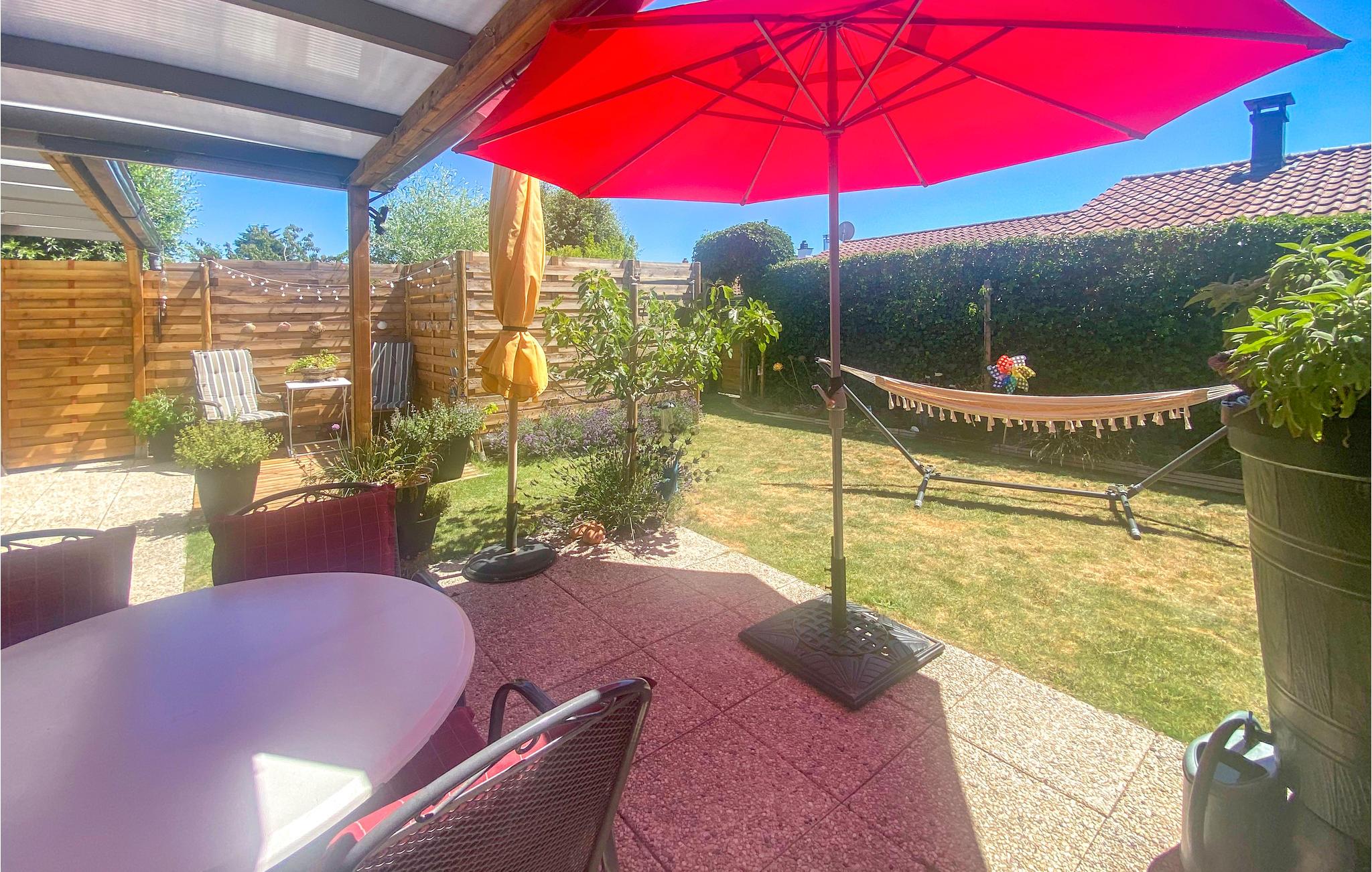 På grunn av de mange fasilitetene som er tilgjengelige, er dette feriehuset egnet for en komfortabel ferie med hele familien hele året. Feriehuset ligger i en velholdt bolig med oppvarmet utendørsbasseng og lekeplass. Stuen er pent innredet med sittegruppe, TV, pelletsovn og klimaanlegg. Kjøkkenet er utstyrt med mange apparater, inkludert oppvaskmaskin, stekeovn, mikrobølgeovn og Senseo-kaffemaskin. Utenfor kan du nyte den vakre hagen med delvis overbygd terrasse, hagemøbler, solsenger, hengekøye og grill. Husdyr er velkomne, hagen er helt inngjerdet.
