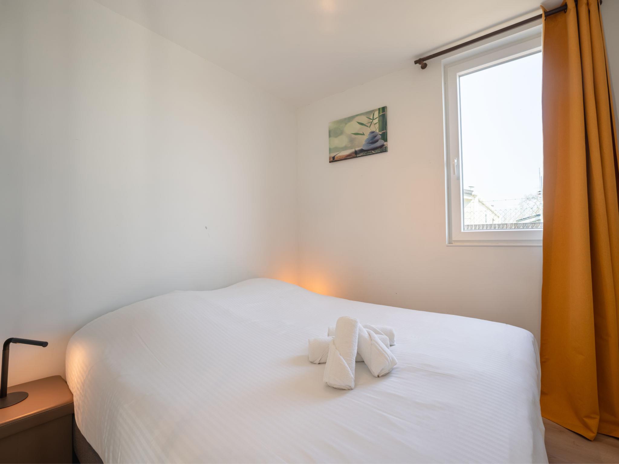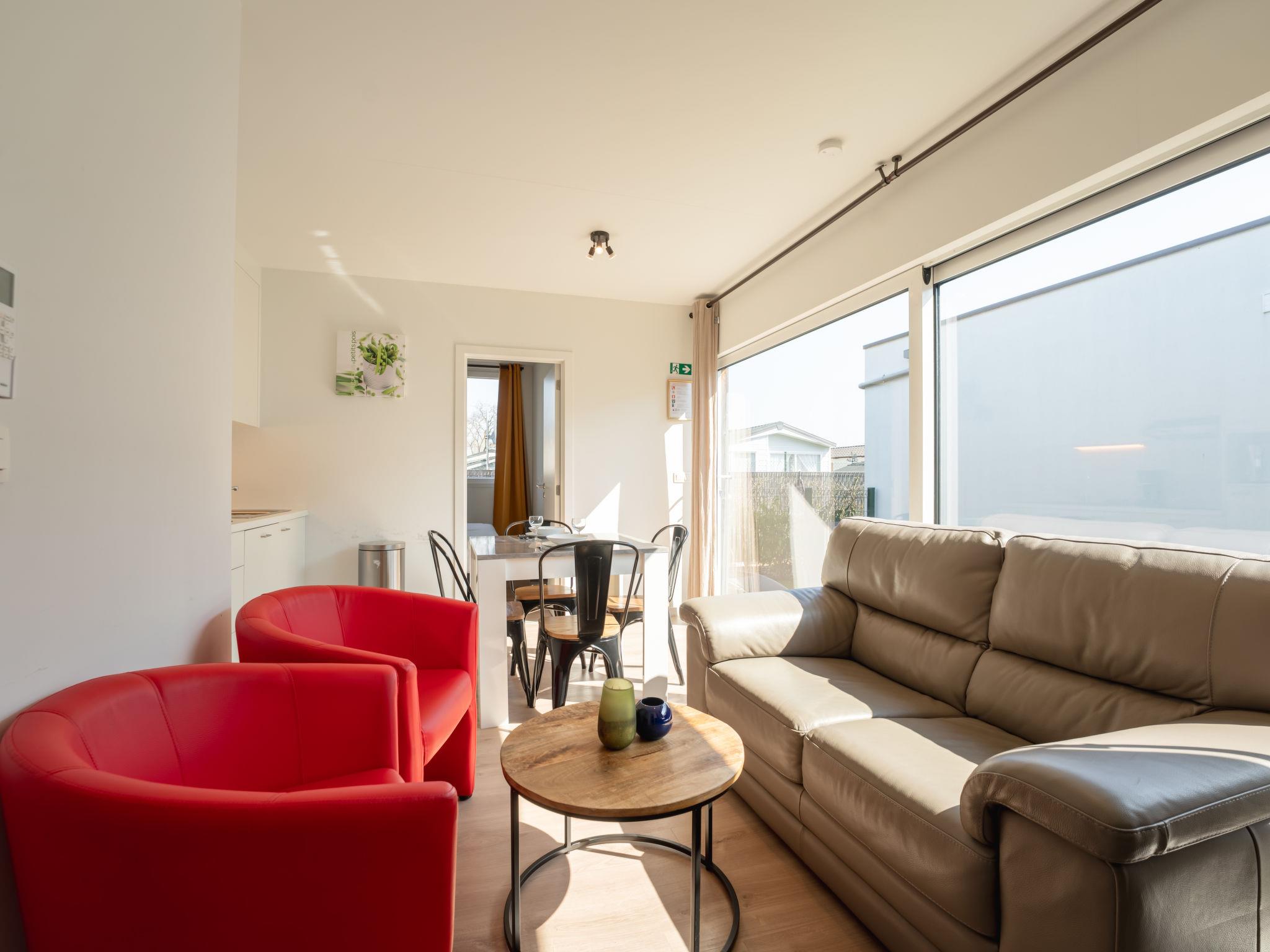 "New Dahlia 13 with parking", 3-room chalet 44 m2. Comfortable and modern furnishings: living/dining room with dining table, separate WC, digital TV and international TV channels. Exit to the terrace. 1 double bedroom with 1 double bed (160 cm, length 200 cm), hand-basin, shower/WC and air conditioning. 1 double bedroom with 2 beds (80 cm, length 200 cm), hand-basin and shower. Open kitchen (dishwasher, 4 induction hot plates, toaster, kettle, freezer, electric coffee machine, combination microwave). Terrace furniture. Facilities: hair dryer. Internet (WiFi, free). Parking (1 car). Please note: non-smoking house. Maximum 1 pet/ dog allowed. TV only NL, FR. Smoke alarm, fire extinguisher. LD394680