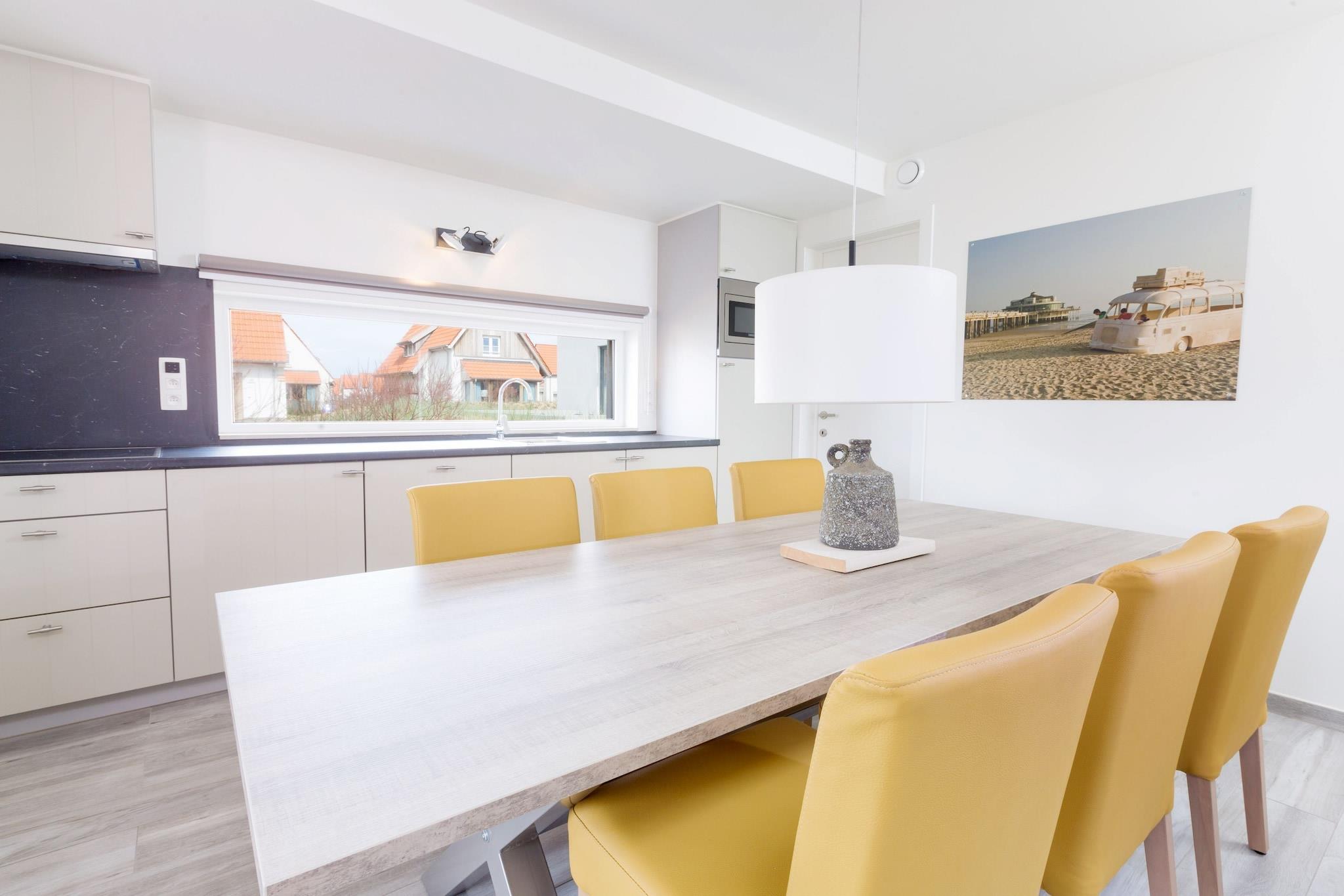 Velkommen til ditt stilige og romslige tilfluktssted i hjertet av Breeduyn Village, kun en kort 10-minutters spasertur fra Bredenes brede sandstrand i Nordsjøen. Denne tomannsvillaen blander moderne bekvemmelighet med kystsjarm, og har en lys stue med Smart-TV og et elegant åpent kjøkken utstyrt med oppvaskmaskin, kombimikrobølgeovn og kaffemaskin. Med et soverom og bad i første etasje, pluss ytterligere to soverom og et andre bad med badekar eller dusj ovenpå, sover dette hjemmet komfortabelt opptil seks gjester - ideelt for familier eller venner som reiser sammen. Gå ut til din private hage med en møblert terrasse – perfekt for trege morgener med kaffe eller fredelige kvelder under stjernene. Du er mindre enn 10 km fra den livlige kystbyen Oostende, med sin promenade, butikker og restauranter. Utforsk lokal belgisk mat på familievennlige steder som Brasserie Duinenhoeve eller sjømathavnen Bleu Chaud. Parkering er beleilig plassert i nærheten av villaen din, noe som gjør dagsturer til Brugge eller De Haan til en lek. Ta med deg lodne følgesvenner - kjæledyr er hjertelig velkommen her! Bredene Beach tilbyr soner uten bånd fra midten av oktober til midten av mars, og nærliggende sanddynestier er perfekte for naturskjønne hundeturer. Besøk lokale kafeer med kjæledyrvennlige terrasser eller slapp av i villaens hage hvor kjæledyrene dine også kan nyte utendørs. Kystflukten din er ikke bare for deg – den er også for din firbeinte familie.