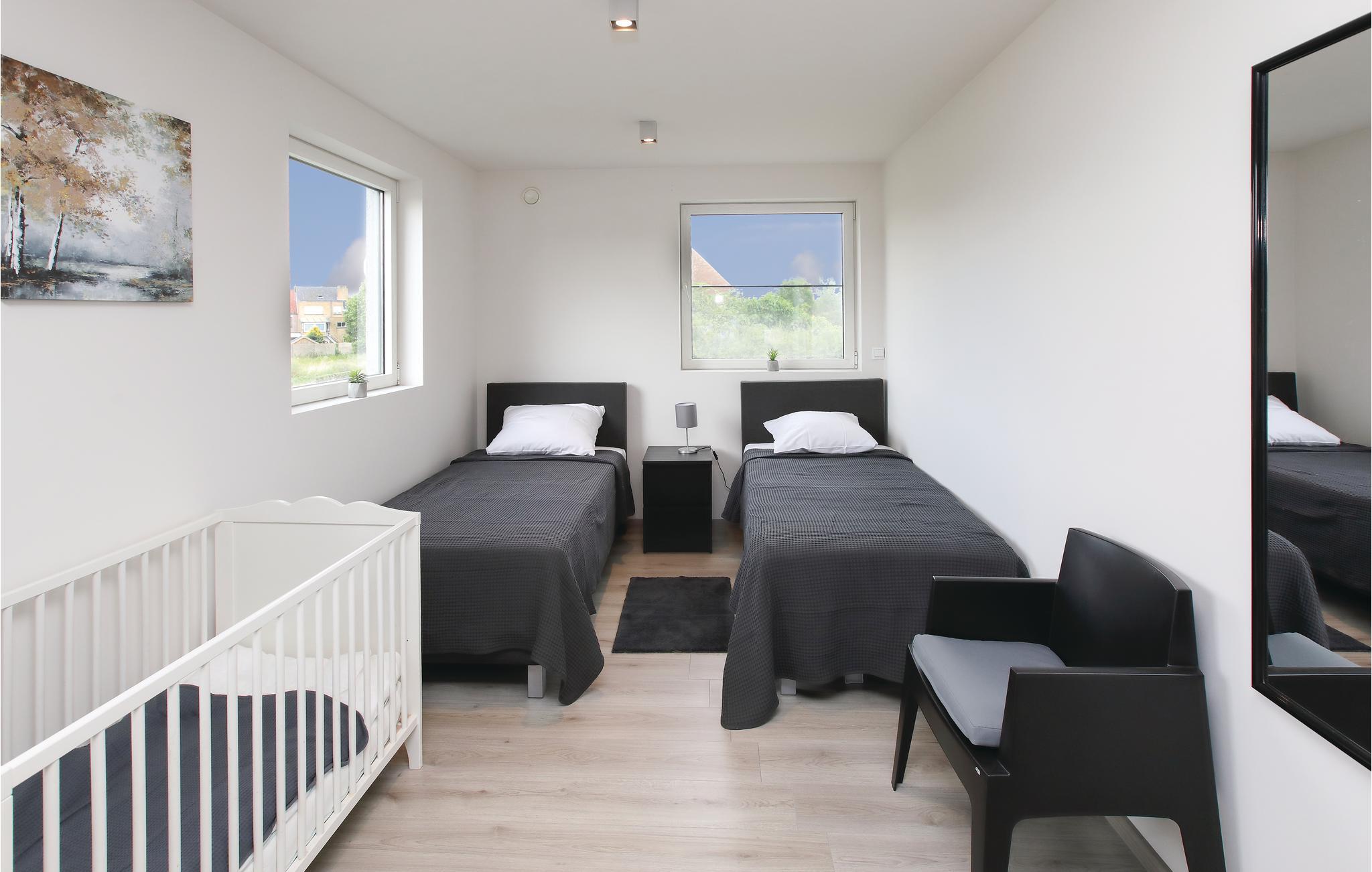 Dette vakre feriehuset, egnet for 10 personer og totalrenovert i 2019, ligger i nærheten av Brugge. Fullt utstyrt med stor åpen terrasse (86 m²) med salongsett og grill, kontor, åpen stue, 5 TV-er og et fantastisk kjøkken. Matlagingsentusiasten vil føle seg spesielt hjemme her, det åpne kjøkkenet med kokeøy gir mange muligheter for å tilberede deilige måltider. 4 parkeringsplasser og en fullt inngjerdet hage gir en spesielt luksuriøs følelse. Det er også en barneseng tilgjengelig. 2 bad og 2 separate toaletter fullfører tilbudet. Det er 4 soverom, ett med 1 dobbeltseng og eget bad, ett med 2 enkeltsenger, ett med 1 dobbeltseng og 1 enkeltseng og ett med 3 enkeltsenger.