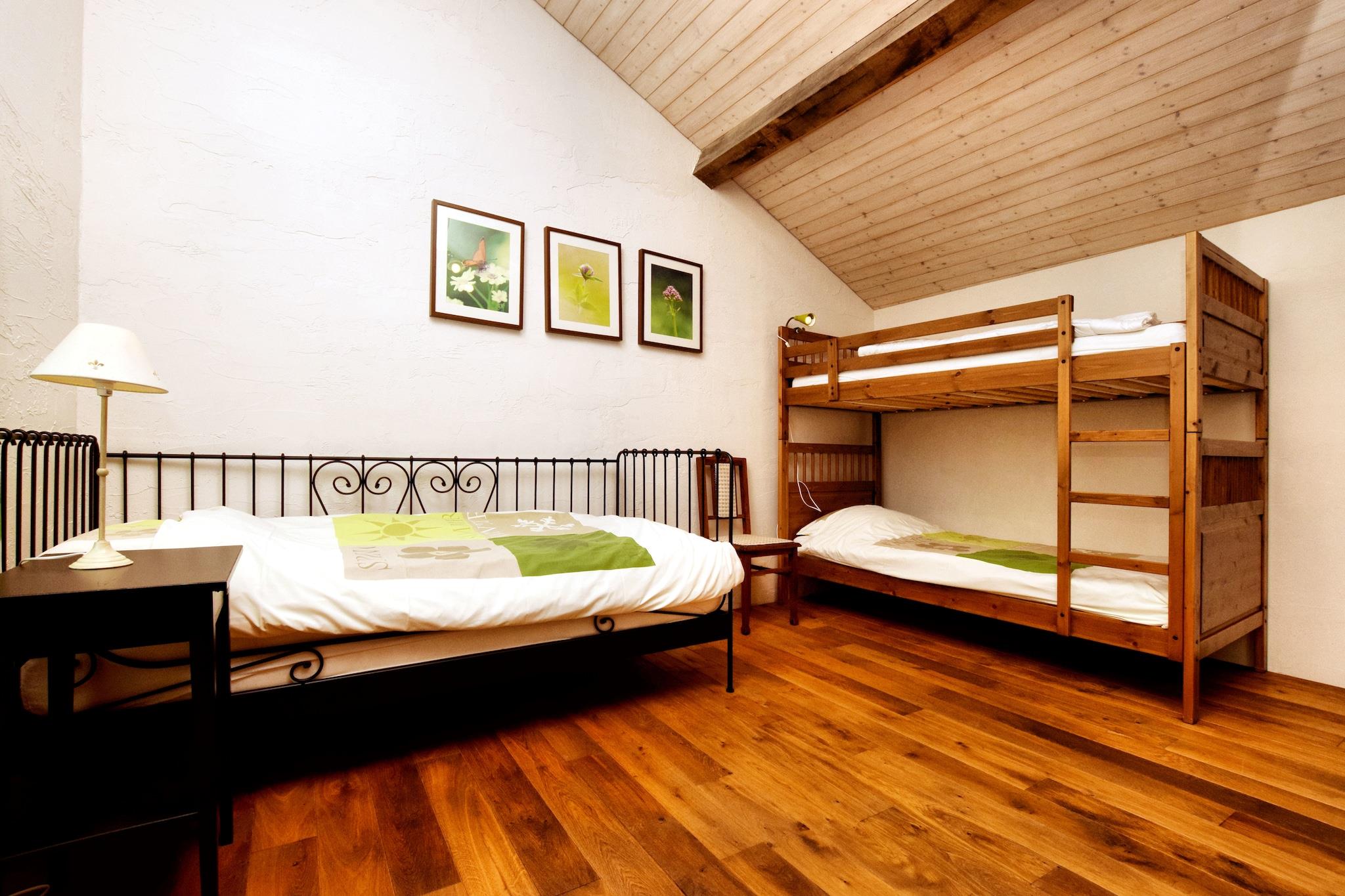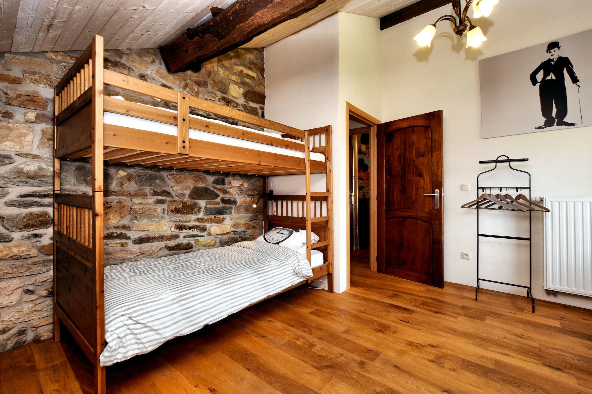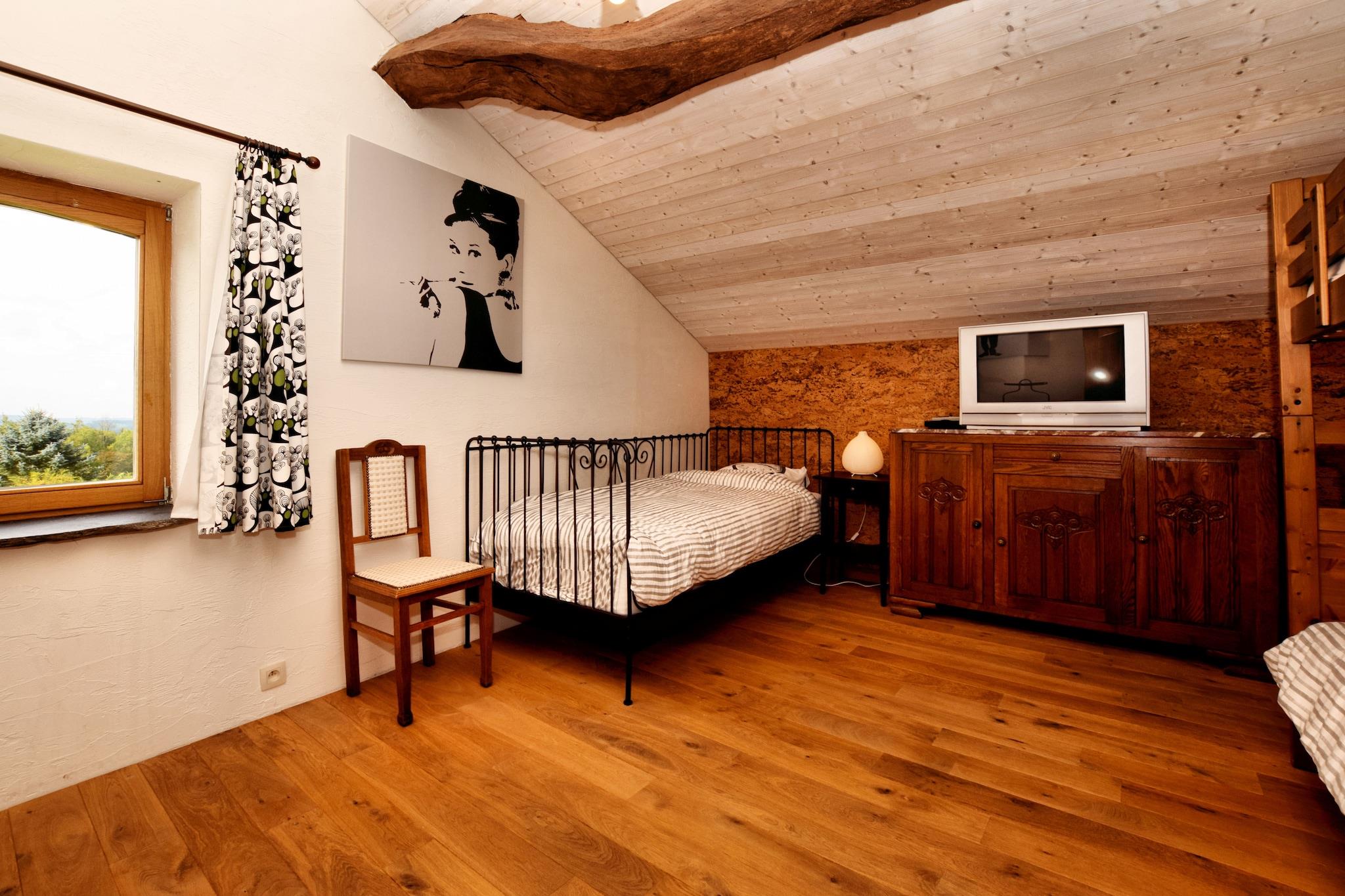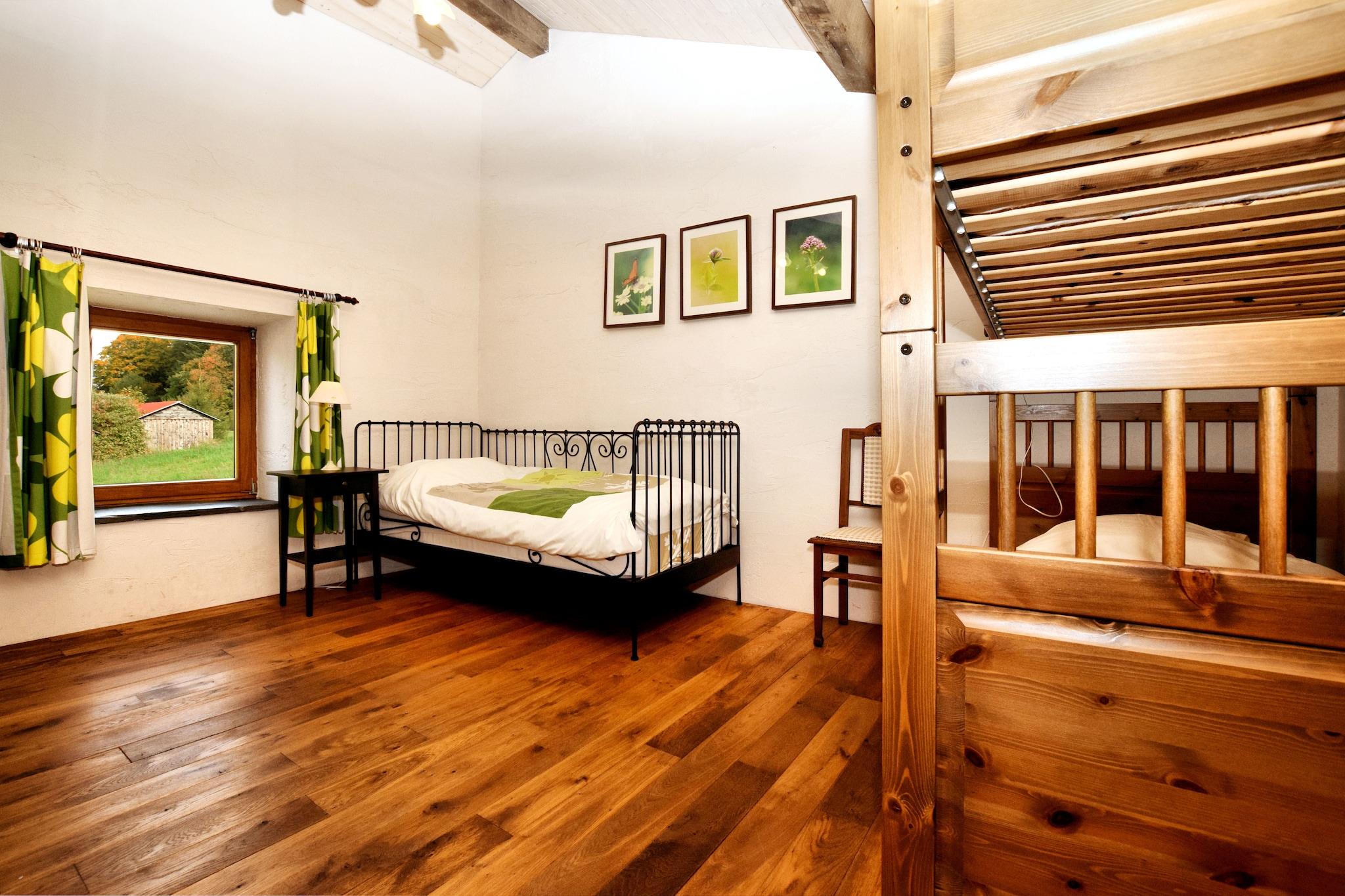 Dette sjarmerende feriehuset med 4 soverom ligger i utkanten av en fredelig skog i Burtonville, og tilbyr et rolig opphold for opptil 9 gjester. Den er ideell for familier eller en gruppe venner, og har sentralvarme, en solrik terrasse og en romslig hage, perfekt for å gjenopprette kontakten med naturen. Utforsk naturskjønne tur- og sykkelruter, eller ta en dagstur til Spa, Coo, Plopsa fornøyelsespark eller Battle of the Bulge-museene i Malmédy og Nord-Luxemburg, kun 30 minutter unna. Restauranter, supermarkeder og sentrum ligger praktisk til 4 km fra boligen. Dette vakkert renoverte huset blander rustikk sjarm med moderne komfort, med tykke steinvegger, tredetaljer og en koselig vedovn i både stue og spisestue. Soverommene inkluderer en blanding av enkeltsenger, dobbeltsenger og køyesenger, med barneseng og barnestol tilgjengelig. Sykkelboden sørger for sikker oppbevaring, og ladestasjonen på stedet for elbiler legger til komfort. Ingen kjæledyr tillatt. Depositum:, betales på stedet. Forhåndsvarsel og gjesteinformasjon kreves for gruppebestillinger.