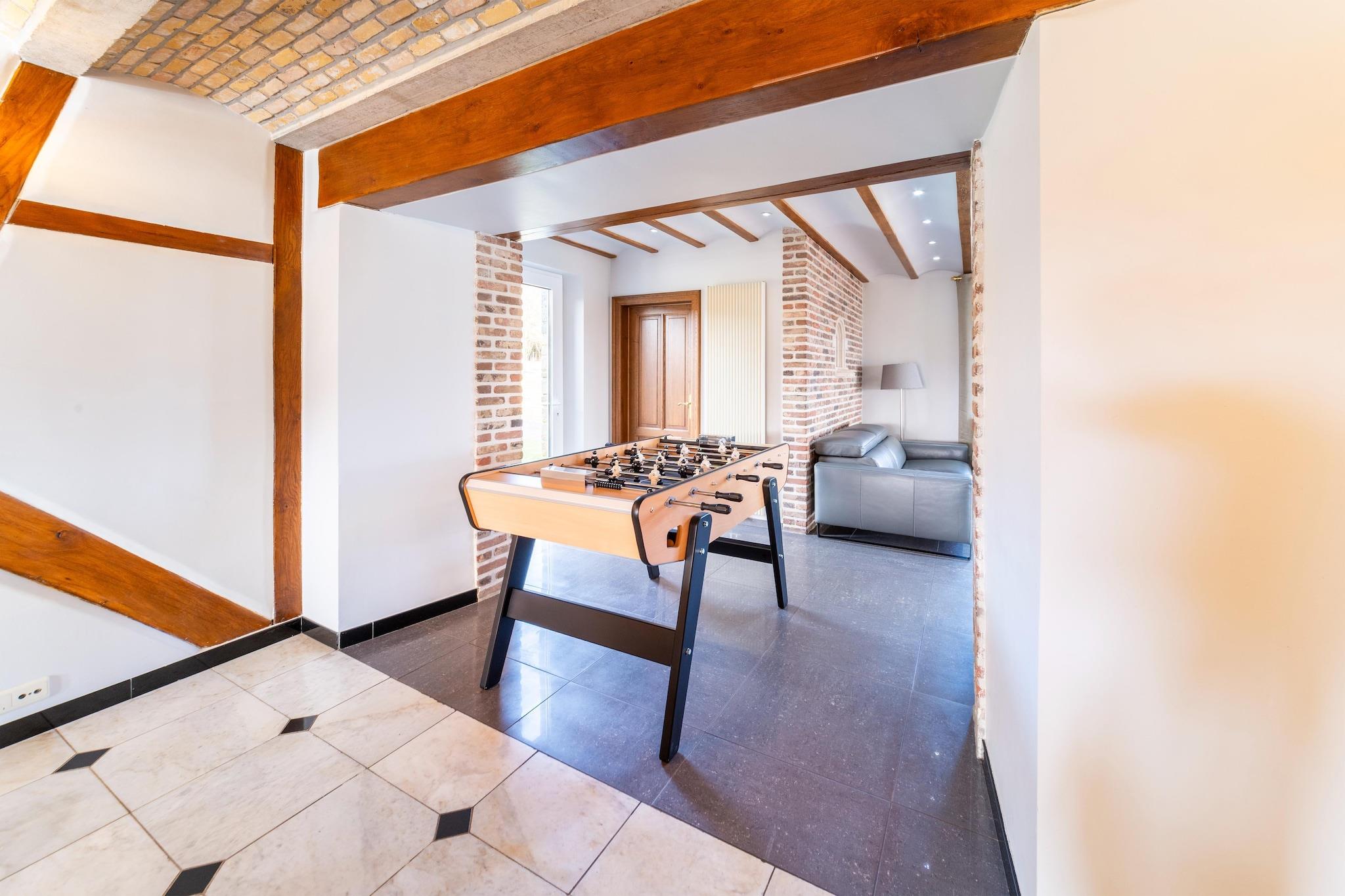 Dette romslige feriehuset med 7 soverom i Chevron er perfekt for store grupper eller familier på opptil 20 gjester. Nyt et privat svømmebasseng, badstue og solarium, samt en møblert hage og grillplass for avslappende ettermiddager. Huset har også gratis Wi-Fi, sentralvarme og vedovn for komfort året rundt. Det ligger bare 100 meter fra skogen, og er ideelt for fotturer og sykling, med en innsjø 10 km unna for dagsturer. Sentrum (5 km) tilbyr butikker og lokal sjarm, mens offentlig transport er 12 km unna. Innendørs kan gjestene nyte biljard, bordtennis, Kicker fotballbord, en boulebane og lekeapparater for barn. Huset har to fullt utstyrte kjøkken i separate etasjer, en vaskemaskin og en tørketrommel for ekstra bekvemmelighet. Enten du soler deg ved bassenget eller samles for et fellesmåltid, tilbyr dette huset et komfortabelt og aktivitetsfylt opphold i de belgiske Ardennene. Merk: Svømmebassenget er kun tilgjengelig fra 15. mai til den siste helgen i september.