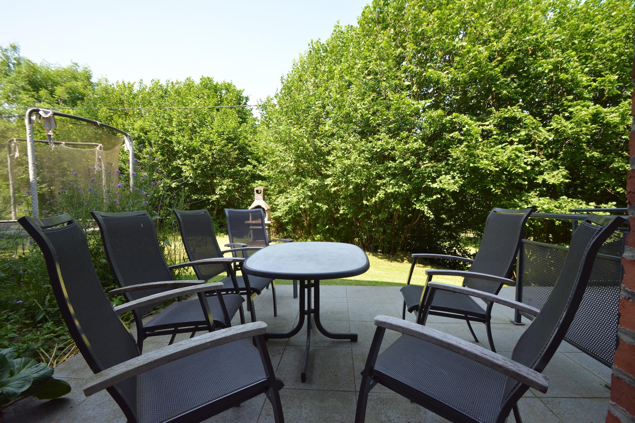 Første etasje: (entré, spisestue, åpent kjøkken(komfyr med kokeplater, vannkoker, brødrister, kaffetrakter(kaffetrakter), stekovn, mikrobølgeovn, oppvaskmaskin, kjøleskap med fryser), soveværelse(enkeltseng(80 x 200 cm), enkeltseng(80 x 200 cm)), bad(badekar, håndvask, toalett)) i 2. etasje: (Stue(TV), soveværelse(enkeltseng(90 x 200 cm), dobbeltseng(140 x 200 cm))) sprinkelseng, terrasse, hage, hagemøbler, grill, parkering, trampoline