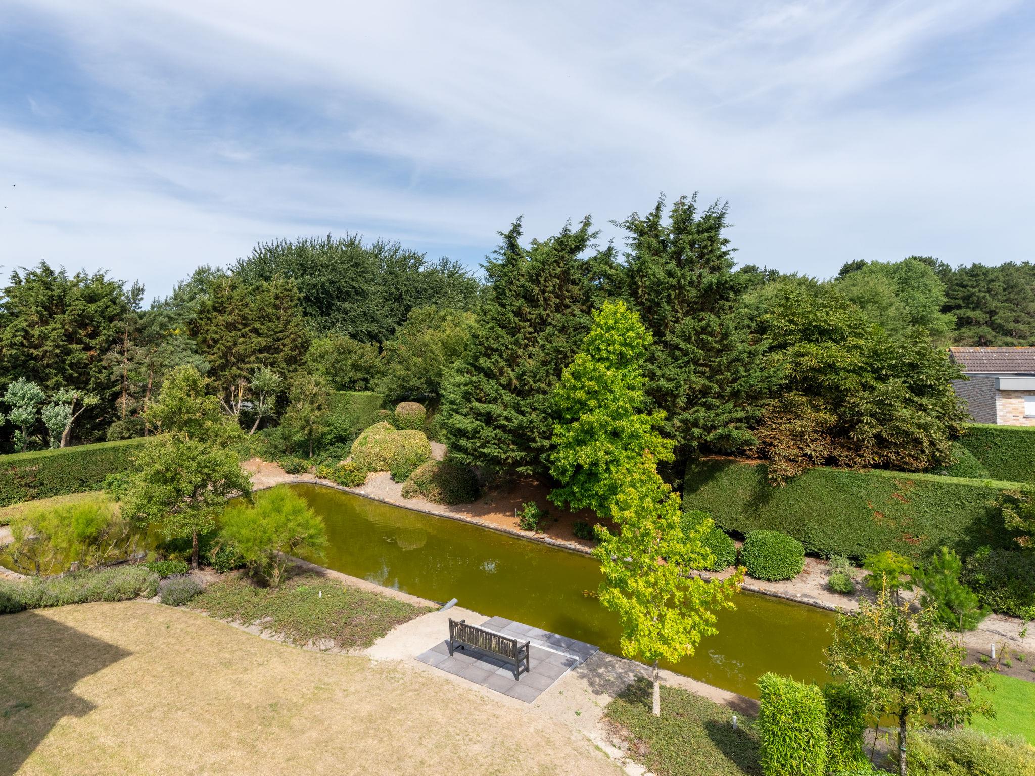De Haan: Child friendly, modern holiday development "Green Garden", 2 storeys. 750 m from the centre of De Haan, 1.3 km from the sea, 1.3 km from the beach. For shared use: beautiful garden to relax, pond, swimming pool (20 x 10 m, seasonal availability: 16.Jun. - 15.Sep. pool opening hours: 09:00-22:00). Boccia. In the house: lift. Linen change (suppl. charge extra). Towel change (suppl. charge extra). Public parking on the road. Supermarket 700 m, restaurant 500 m, bakery 700 m, bicycle rental 1.5 km, tram "De Haan aan Zee" 700 m, bus stop "De Haan aan Zee" 700 m, railway station "Oostende" 12 km, sandy beach "De Haan" 1 km, park "La Potinière" 1 km. Golf course (18 hole) 1.4 km, surf school 2 km, sailing school 2 km, tennis 1 km, indoor tennis centre 2 km, minigolf 1 km, riding stable 3 km, sports centre 2 km. Nearby attractions: Oostende 10 km, Sea Life 12 km, Brugge 20 km, Plopsaland De Panne 52 km. Please note: suitable for families. The owner does not accept any youth groups. Loading and unloading of baggage is possible at the holiday house. The apartment is located in a zone with limited traffic. Neighbourhood highly sensitive to noise. Quietness and good behaviour expected.