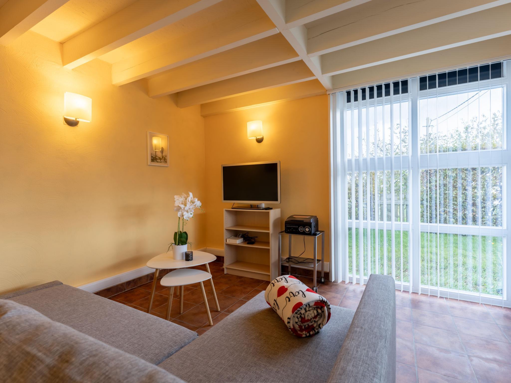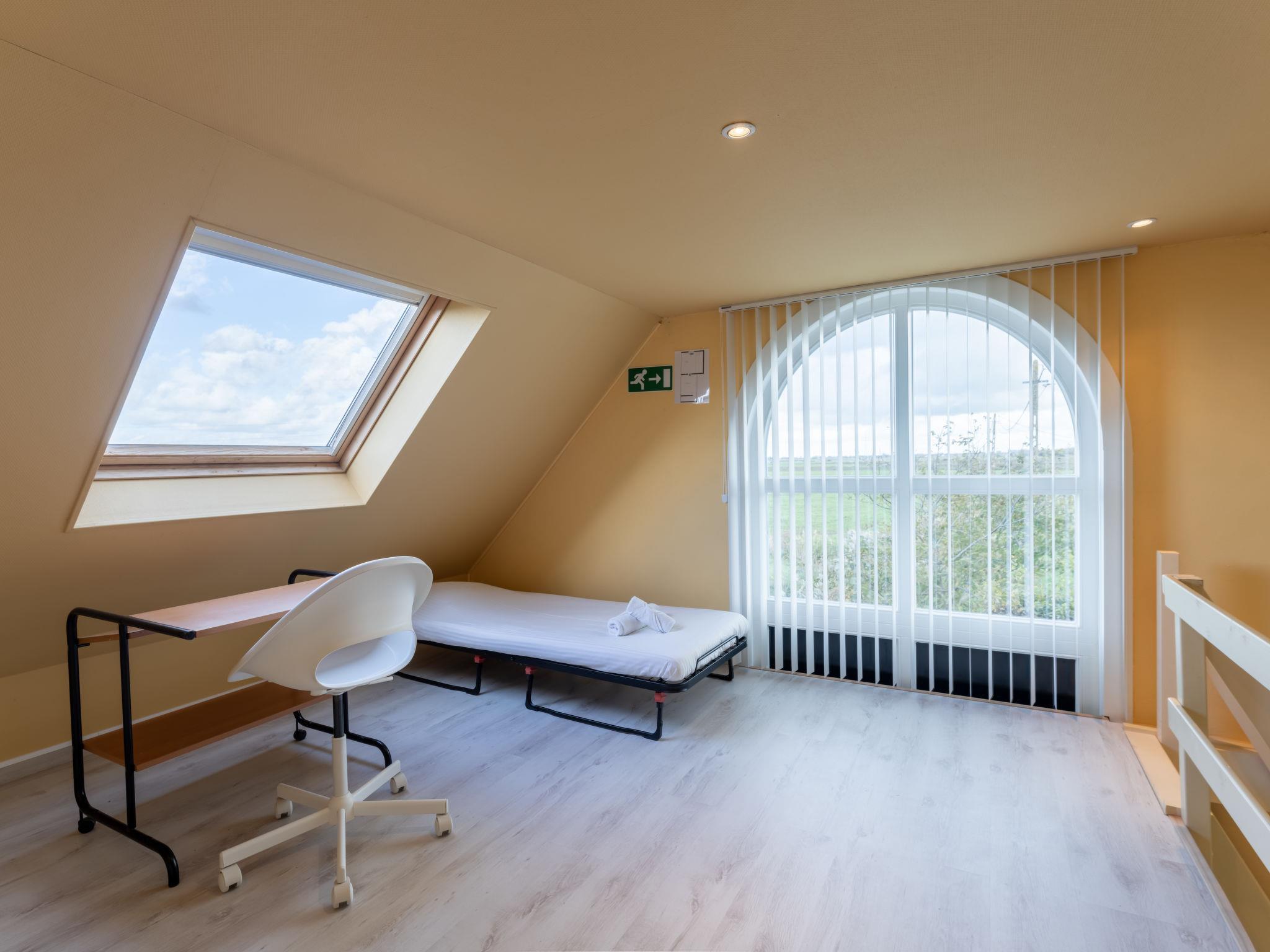 "Polderzicht with parking", 2-room house. Bright, comfortable and cosy furnishings: open living/dining room with 1 sofabed (140 cm, length 200 cm), dining table, digital TV and international TV channels. Exit to the garden, to the terrace. Kitchen (oven, 4 ceramic glass hob hotplates, toaster, kettle, microwave, electric coffee machine). Shower, sep. WC. Heating. Upper floor: (steep stair) mezzanine with 1 folding bed (90 cm, length 200 cm). 1 double bedroom with sloping ceilings with 1 double bed (140 cm, length 200 cm). Terrace furniture. View of the countryside. Facilities: children's high chair, baby cot, hair dryer. Internet (WiFi, free). Parking. Please note: non-smoking house. Smoke alarm, fire extinguisher. LD411795