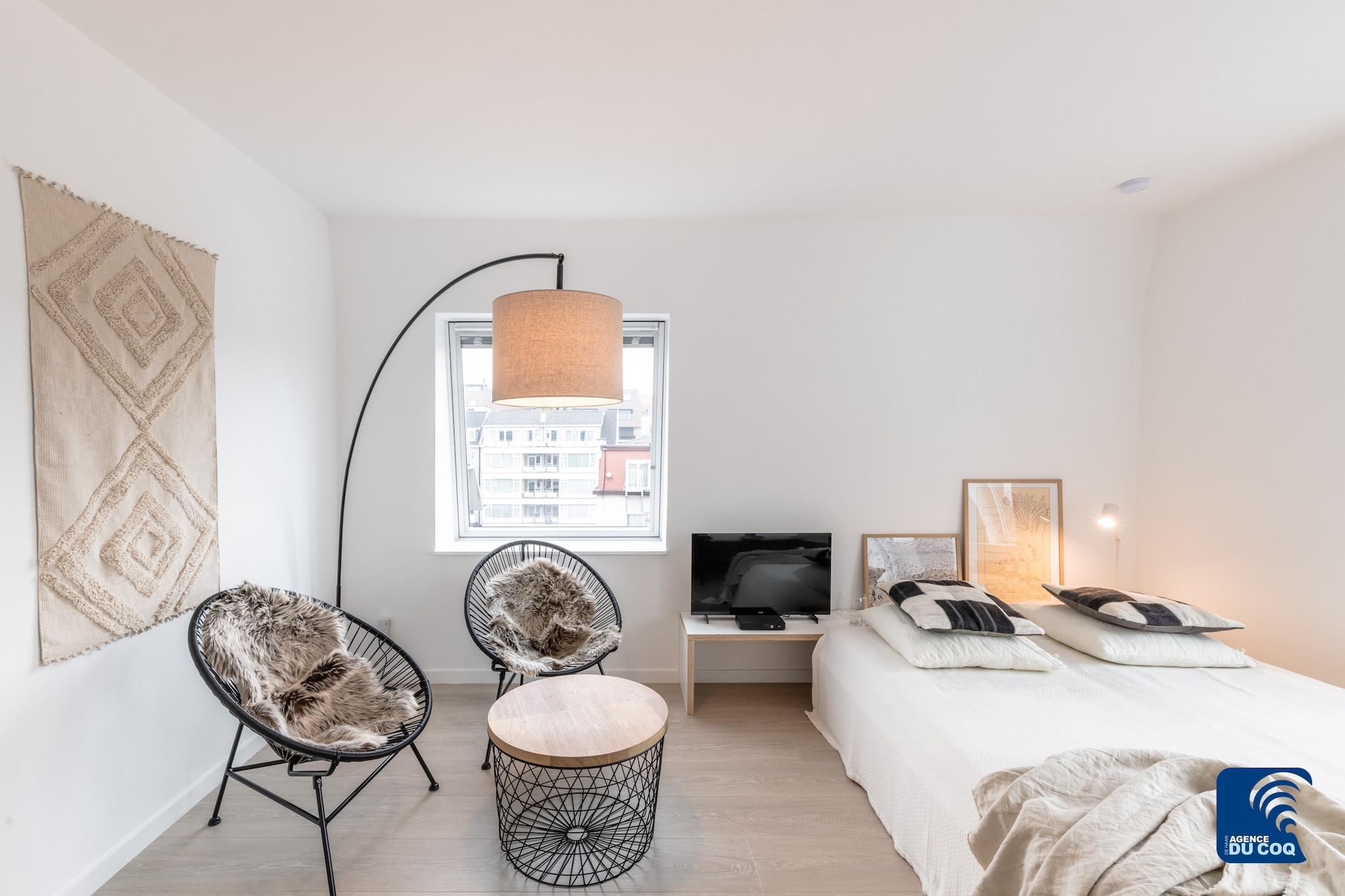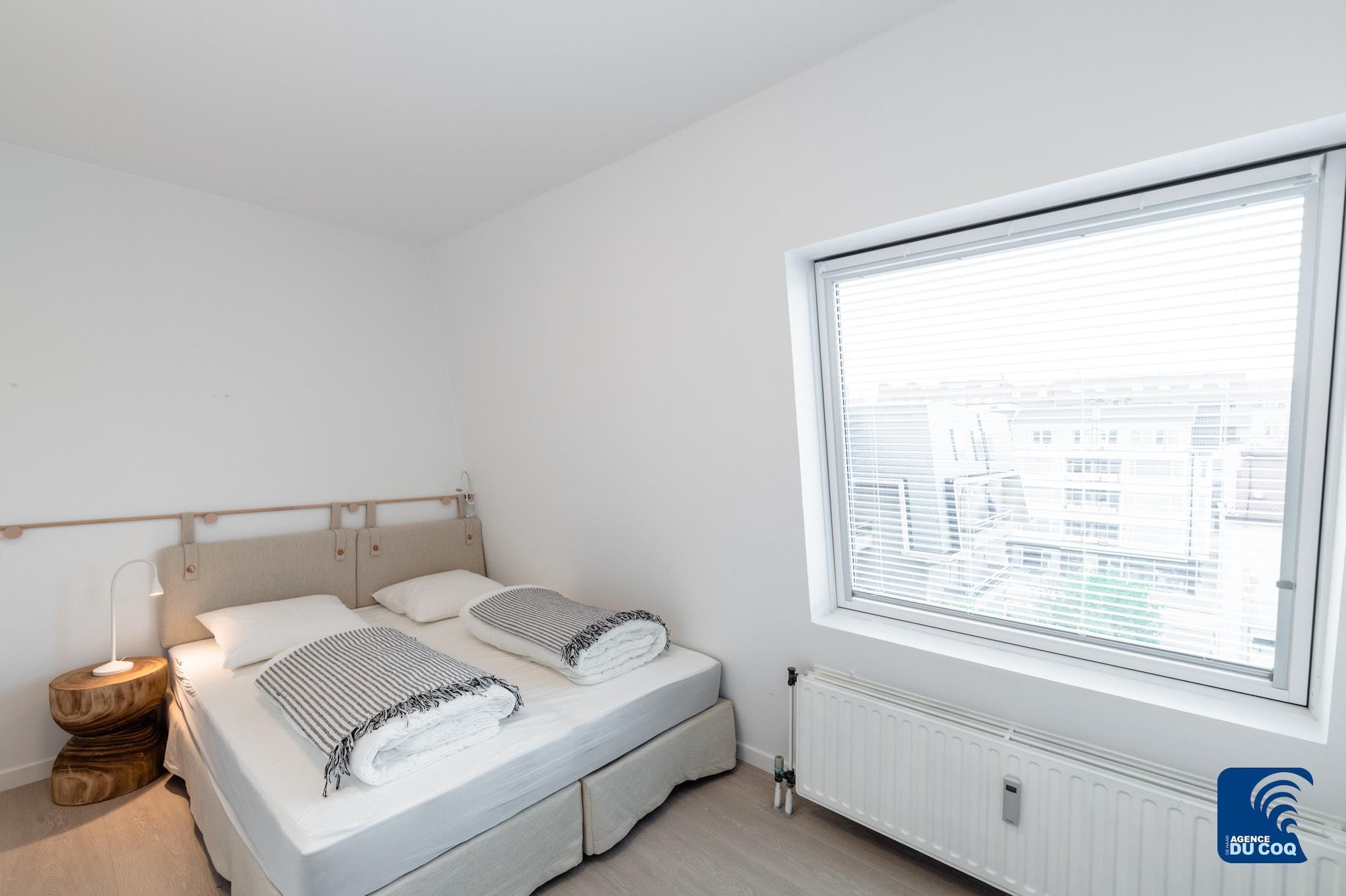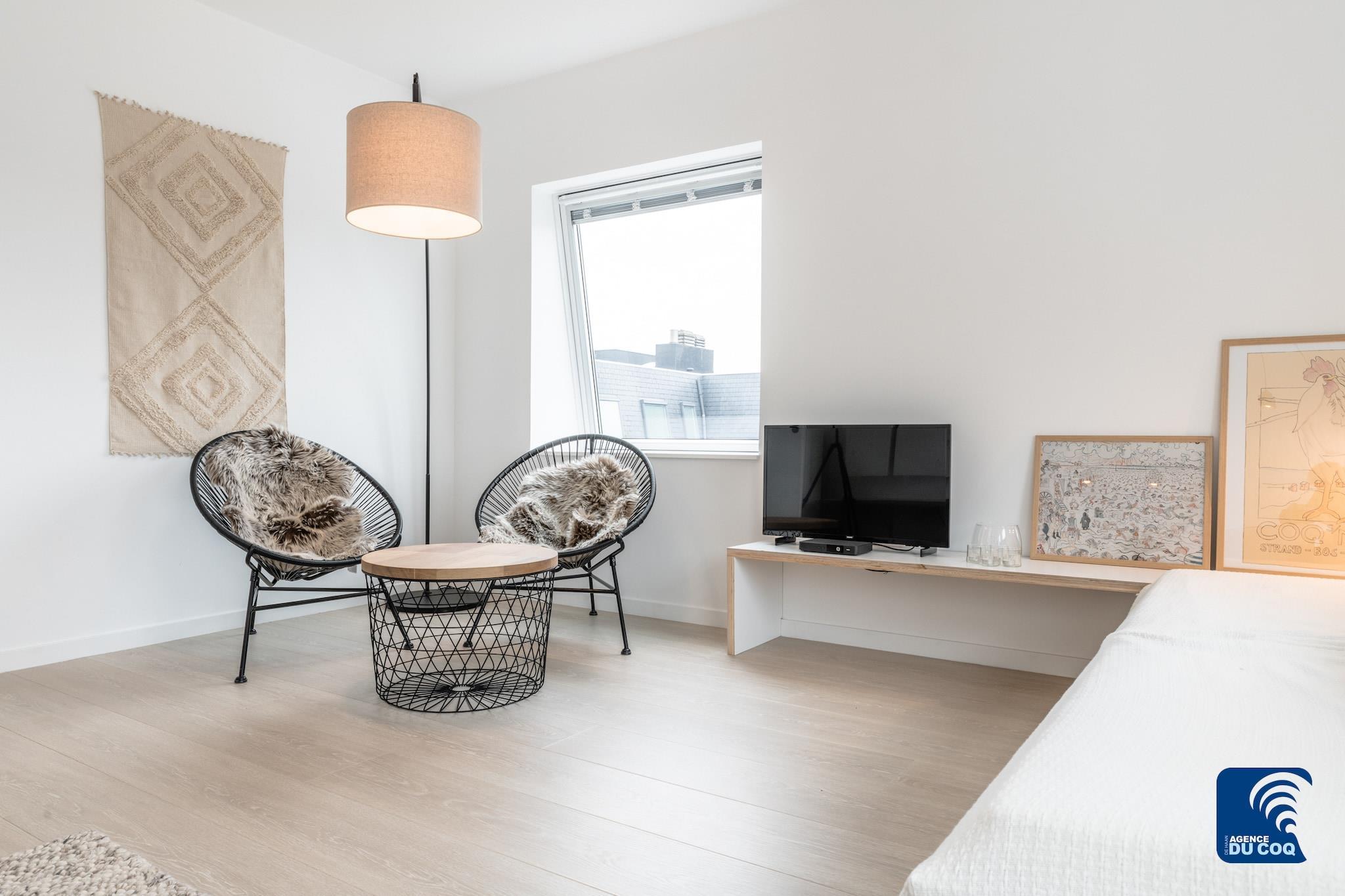 Moderne komfort ved kysten Gå inn i denne nymøblerte leiligheten kun 150 meter fra sandkysten av De Haan. Gjennomtenkt designet med rene linjer og koselige innslag, er det perfekt for par eller små familier som leter etter en ferie ved havet. Leiligheten har en komfortabel stue med dobbel sovesofa, et kompakt, men stilig kjøkken utstyrt med alt nødvendig utstyr, inkludert oppvaskmaskin og kjøkkenmaskin, og en lys spisestue for å nyte måltider etter en stranddag. Praktisk beliggenhet med enkel tilgang til stranden Ligger i 3. etasje i en velholdt bygning med heistilgang, er du kun en kort spasertur fra Nordsjøstranden og strandpromenaden. Soverommet har en køyeseng og en enkeltseng, ideelt for barn eller venner, og badet er utstyrt med en moderne dusj og alt nødvendig utstyr. Nyt høyhastighets WiFi og digital-TV for innendørs underholdning. Privat underjordisk parkering sikrer stressfrie ankomster og trygghet under oppholdet. Nyt De Haans sjarm og lokale smaker Fra strandkaféer til belgiske bistroer, du finner mange spisesteder i nærheten. Gå til det pittoreske sentrum for ferske bakverk, sjømat eller et glass lokalt øl. De Haans bilfrie promenade og vakre sanddynelandskap inviterer deg til å utforske til fots eller på sykkel.
