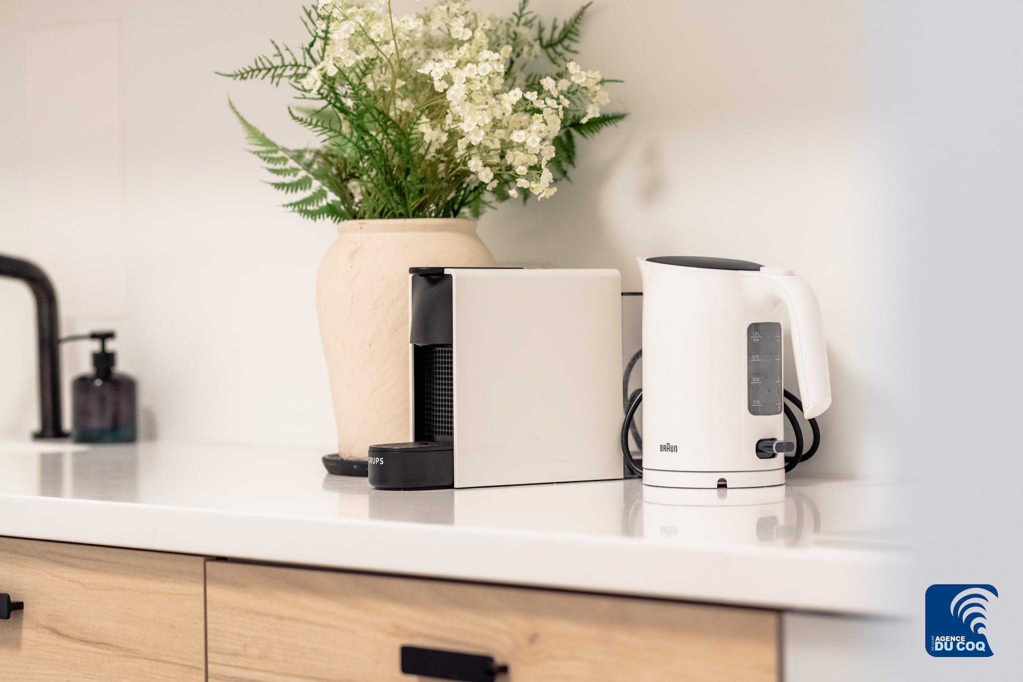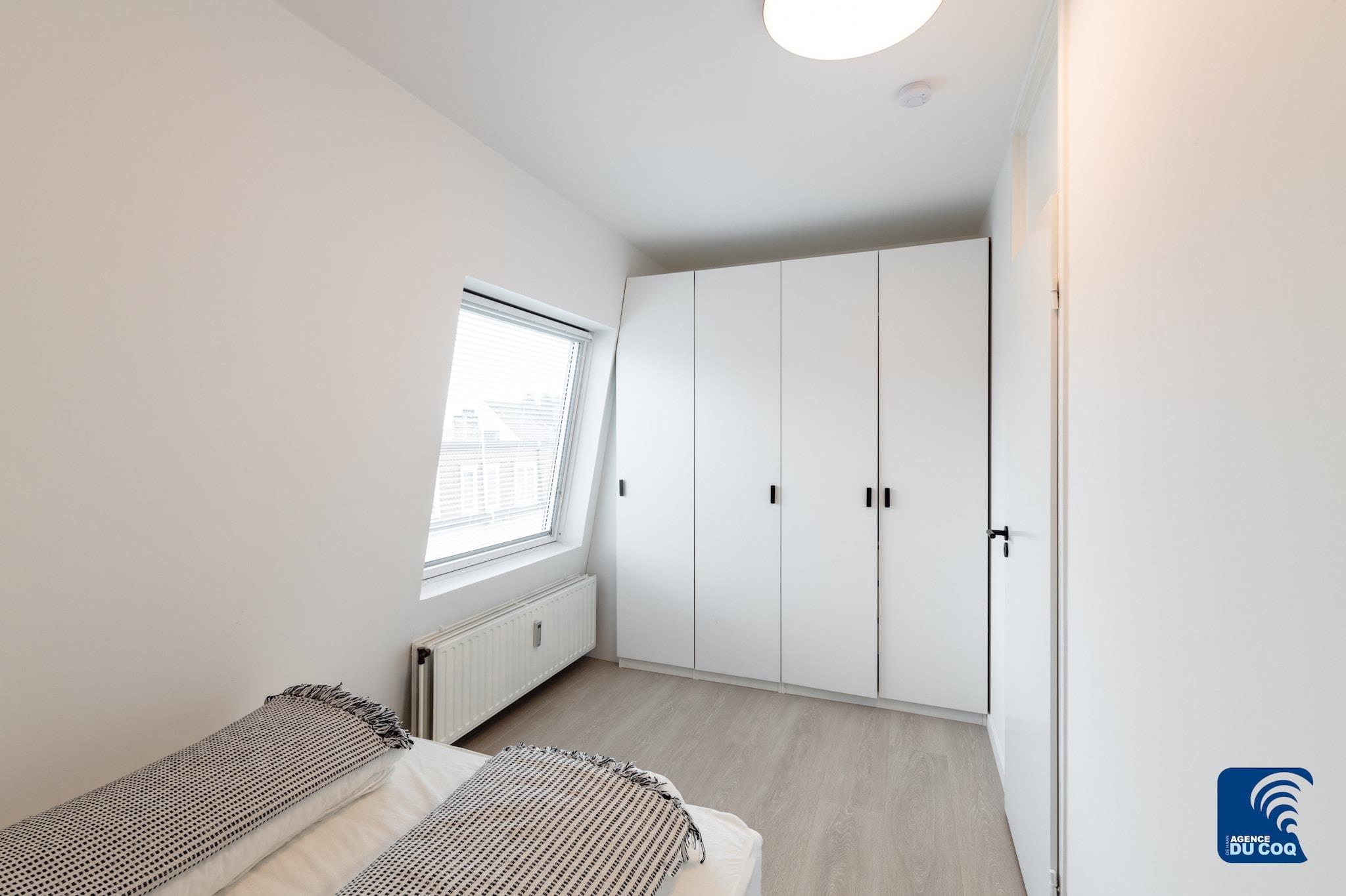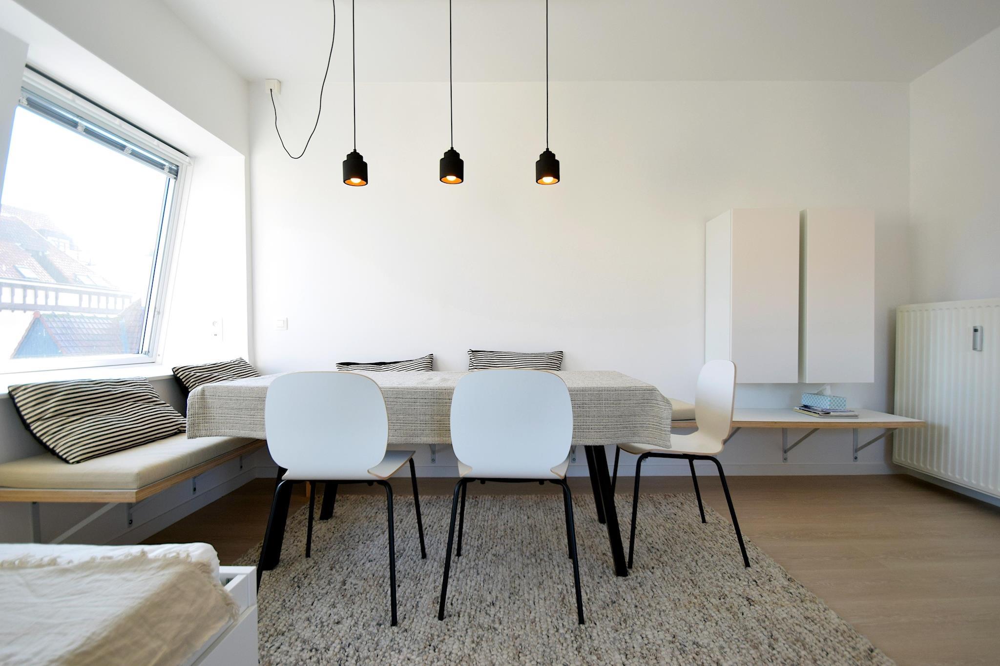 Moderne komfort ved kysten Gå inn i denne nymøblerte leiligheten kun 150 meter fra sandkysten av De Haan. Gjennomtenkt designet med rene linjer og koselige innslag, er det perfekt for par eller små familier som leter etter en ferie ved havet. Leiligheten har en komfortabel stue med dobbel sovesofa, et kompakt, men stilig kjøkken utstyrt med alt nødvendig utstyr, inkludert oppvaskmaskin og kjøkkenmaskin, og en lys spisestue for å nyte måltider etter en stranddag. Praktisk beliggenhet med enkel tilgang til stranden Ligger i 3. etasje i en velholdt bygning med heistilgang, er du kun en kort spasertur fra Nordsjøstranden og strandpromenaden. Soverommet har en køyeseng og en enkeltseng, ideelt for barn eller venner, og badet er utstyrt med en moderne dusj og alt nødvendig utstyr. Nyt høyhastighets WiFi og digital-TV for innendørs underholdning. Privat underjordisk parkering sikrer stressfrie ankomster og trygghet under oppholdet. Nyt De Haans sjarm og lokale smaker Fra strandkaféer til belgiske bistroer, du finner mange spisesteder i nærheten. Gå til det pittoreske sentrum for ferske bakverk, sjømat eller et glass lokalt øl. De Haans bilfrie promenade og vakre sanddynelandskap inviterer deg til å utforske til fots eller på sykkel.